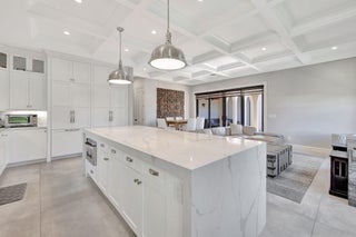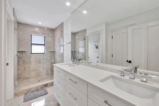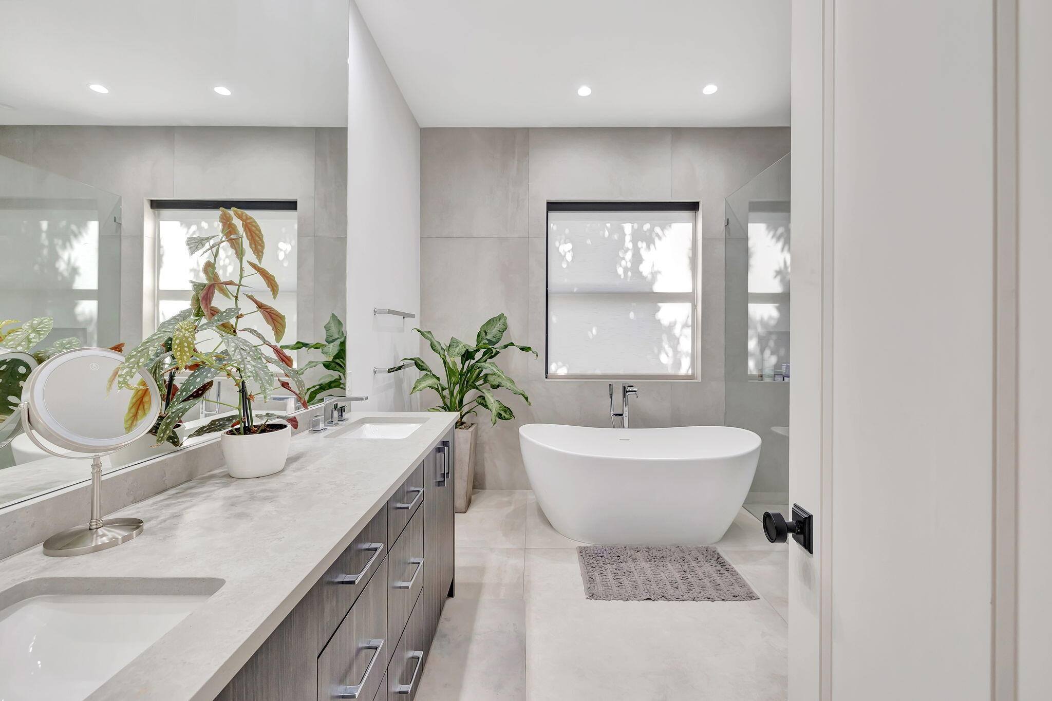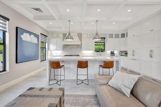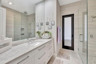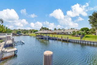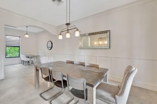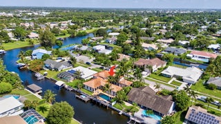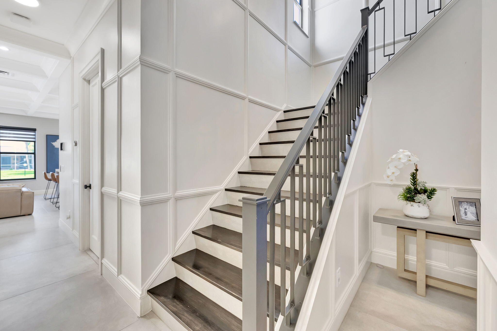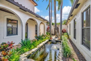 Welcome home to this magnificent, recently renovated, expansive estate located directly on Lake Eden on a private cul-de-sac. This stunning waterfront property sits on a 1/3-acre lot with a private dock and boasts six bedrooms and four and a half bathrooms, offering plenty of room for your family and guests to enjoy. Expansive double doors sweep open for your entry from the circular driveway where the sounds of a tranquil courtyard Koi Pond greet you. From here, you may explore the private entrances to the principal residence and the guesthouse, which features a bedroom, full bath, and media theatre. The serenity and functionality of this open floor plan are felt in every thoughtful detail. The kitchen boasts sparkling white countertops, top-of-the-line stainless Thermadorappliances, and a six-burner gas stove. A large formal dining room and a living room with pool and water views are just steps away, so everyone feels in touch and engaged. The master bedroom, conveniently located downstairs, offers spacious closets, double vanities, a soaking tub, a large shower, and courtyard or water views, providing a luxurious spa retreat. Four additional bedrooms, including a loft that is perfect as a study or extra guest room, and two full bathrooms are atop the winding staircase. The outdoor area is equally impressive, featuring a large deck and covered patio with impressive architectural arches, plentiful seating, a grilling area, and a freestanding hot tub. The heated saltwater pool and adjoined tub, with lighting and waterfall, provide a picturesque backdrop for relaxation day or night. The private boat dock, designed to accommodate all your water toys, invites easy access to the highly desired Lake Eden. For added peace of mind, the natural gas-powered property has an oversized two-car garage with extra storage, EVA charging, a whole-house generator, and complete impact windows and doors, ensuring your utmost safety, security, and peace of mind. Don't miss the opportunity to make this property conveniently located to downtown Delray Beach, shopping, dining, entertainment, the beach and all major highways and airports, your own. Call now to schedule your private tour.