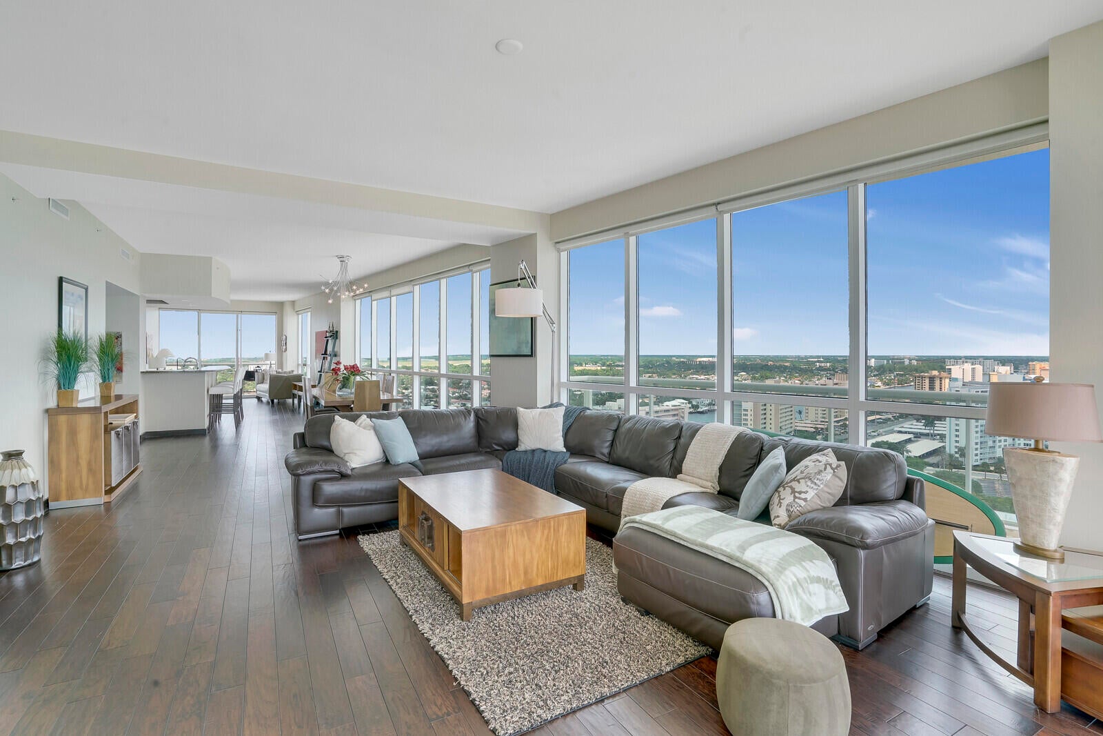 Experience the ultimate in luxury living in this beautifully appointed 17th floor residence at the extraordinary Plaza at Oceanside. Unit 1707 is a spectacular wraparound residence with two terraces offering both Intracoastal and ocean sunrise-to-sunset panoramic views. This luxurious sky residence features three bedrooms and three and a half baths. This design offers an impressive architectural plan with your private elevator entry leading to the foyer and into the grand salon with living and dining areas overlooked by the island kitchen with a dining bar. With over 2,726 living space, floor-to-ceiling windows, ocean, Intracoastal, and unobstructed northern views.