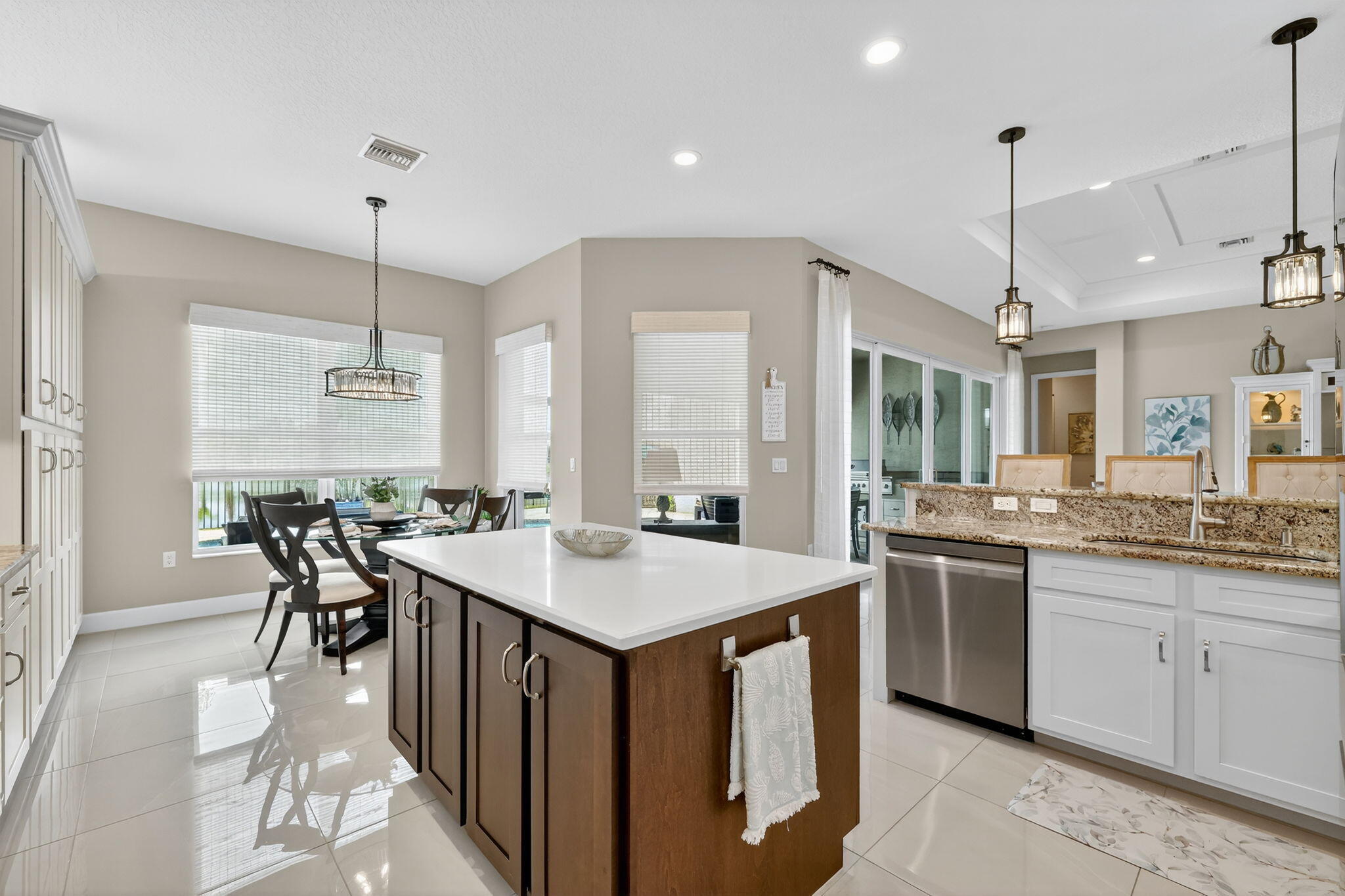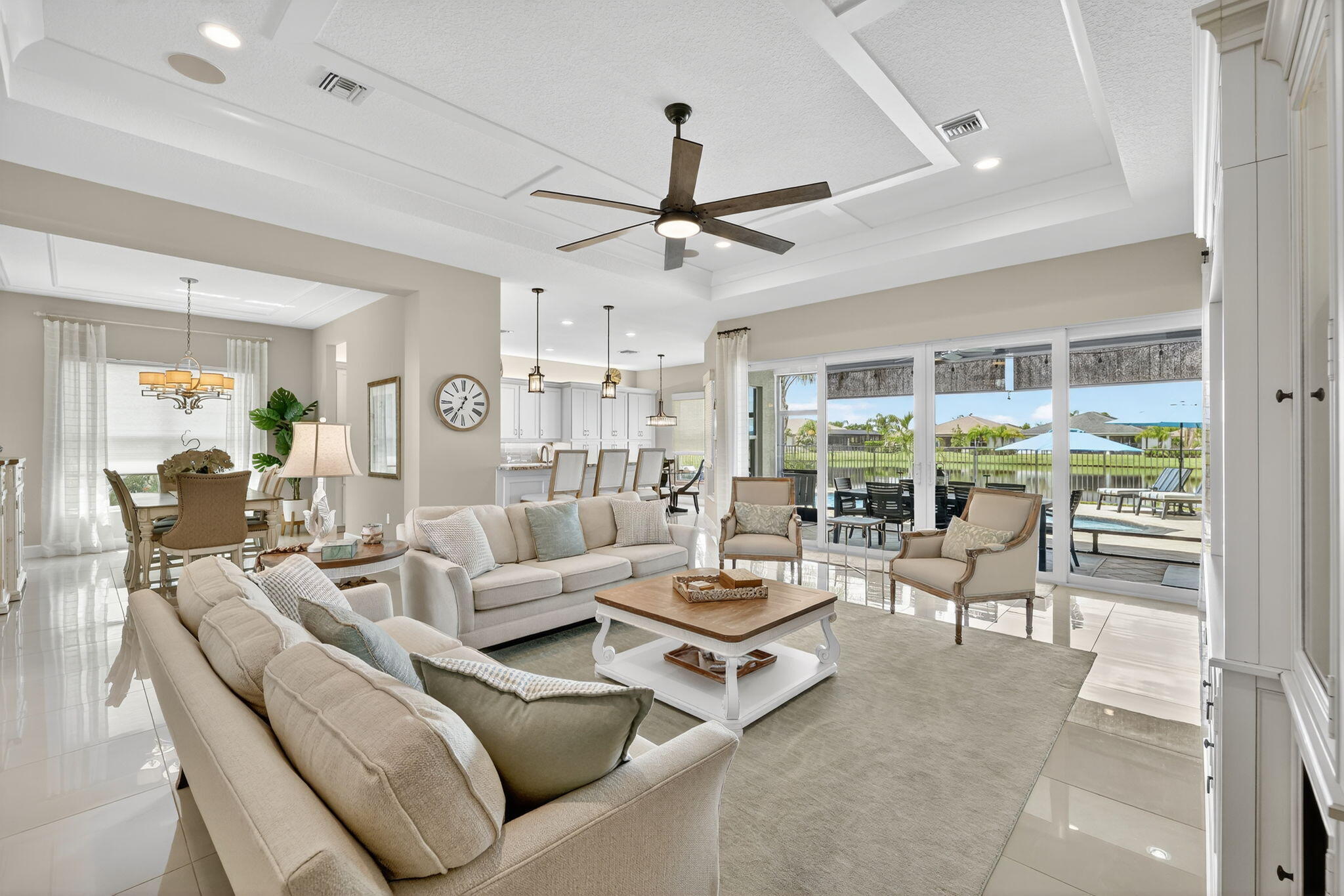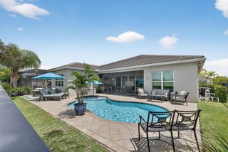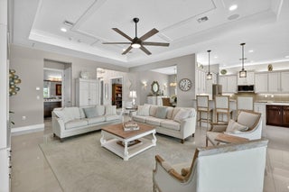 Experience Luxury Living at its finest, in a lakefront Julia Model at Valencia Cay in Riverland. A spectacular grand entrance features a custom glass double door entrance into a large foyer with a coffered ceiling and designer lighting. This home features 3 Bedrooms, Plus Den, 3.5 baths, with a 3-car garage. Elegant and thoughtfully designed, you will not be disappointed. This stunning residence combines modern comfort, sophisticated style and resort-style living, making it the perfect retreat for those seeking an active and luxurious lifestyle here in Florida. The Julia Model boasts spacious interiors, open concept living and high-end finishes throughout. An expansive great room with custom millwork and a coffered ceiling is ideal for formal and relaxed entertainment.A gourmet kitchen with premium cabinetry, including a cabinet pantry with pullout shelves, upgraded LG Studio appliances and a separate casual dining area. The large formal dining room is perfect for intimate dinner parties, wall sconce lighting, a custom chandelier and ceiling millwork. The luxurious primary suite has 2 custom walk-in closets and a spa-inspired bathroom with a large shower and separate vanities. The two additional bedrooms feature en suite bathrooms, one with a walk-in shower and the other bedroom en suite bath with a tub. A large laundry room with upper and lower cabinetry, granite counter tops, a large sink and upgraded washer and a gas clothes dryer. The custom heated pool features deck jets and a sun shelf with room for seating. There is a screened in patio with a summer kitchen and dining area for the ultimate Florida lifestyle. There is also a large open patio area with room for a seating area that can include a firepit to enjoy a beautiful sunset in the evening. This home has designer features throughout which include high end chandeliers, wall sconces, pendant lighting, high end window treatments and custom woodwork throughout. You will not be disappointed with this spectacular lakefront Julia Model. Living in Valencia Cay means having access to world class amenities designed for relaxation, recreation and social connection. Grand Clubhouse with social spaces, event rooms and lounges. Resort-style pools and fitness center for staying active in Valencia Cay and Riverland. On-site dining at the Cay Café as well as the River Fresh Café for delicious meals without leaving the community. Dozens of social clubseverything from travel and art to fitness and dance. Riverland features, Arts & Culture Center offering creative workshops, art studios and classes in painting, sculpture, music and more. Sports courts including pickleball courts (50+), one of the largest pickleball facilities in the U.S. and tennis. Indoor basketball, a wellness and spa center and miles of scenic walking trails through beautifully landscaped grounds. The Riverland Town Center with a PUBLIX supermarket. The Riverland Town Center will offer a mix of commercial and retail space conveniently located and accessible from your neighborhood through the network of private community greenways and the Paseo Greenway. Access to the Riverland Town Center is by golf cart, automobile, walking and bicycle.