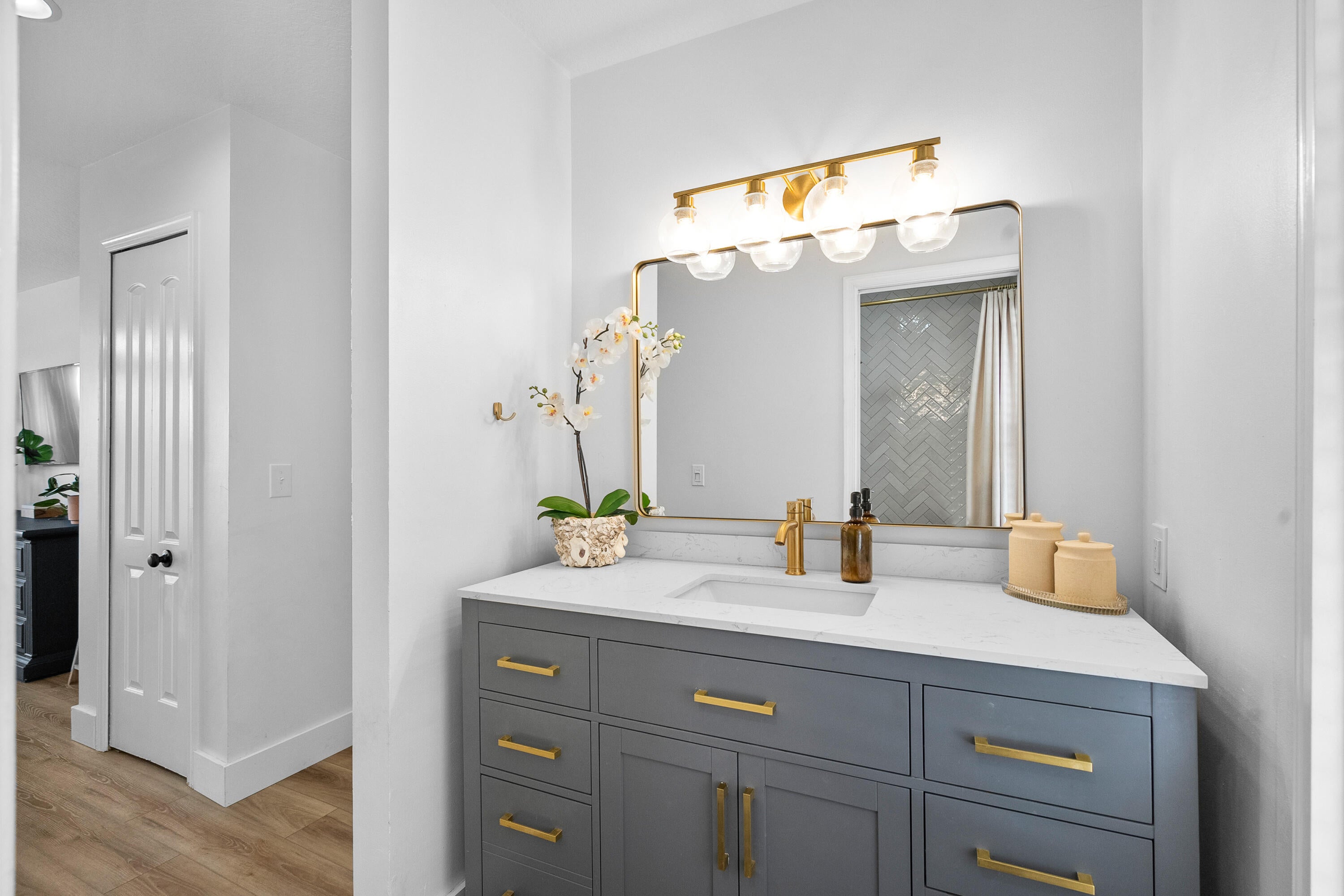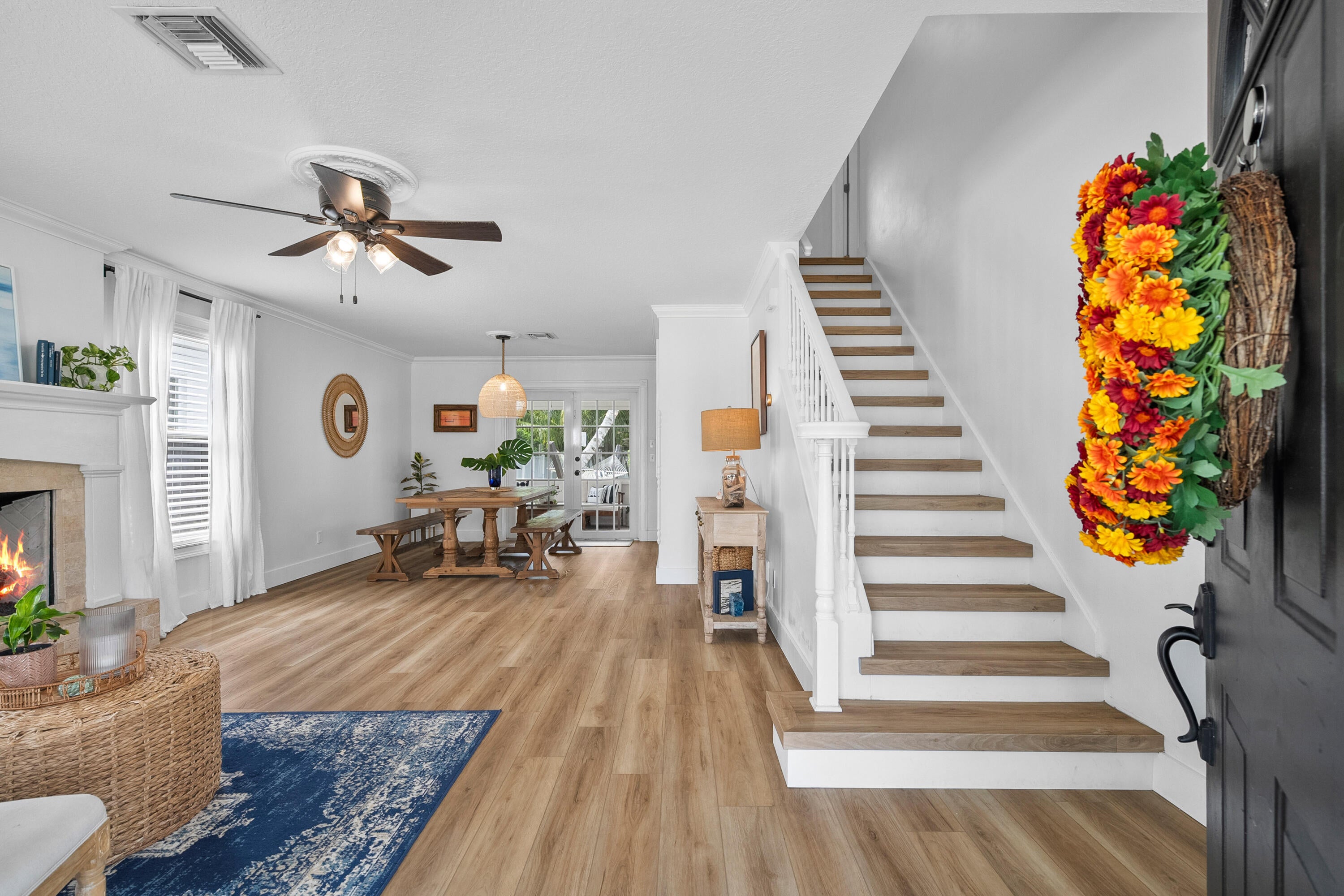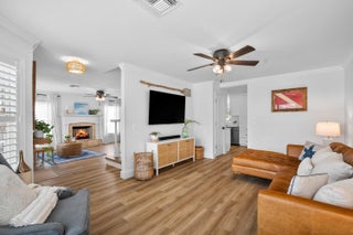 This stunning MOVE-IN - READY home featuring a BEAUTIFUL NEW chef's kitchen, 4 SPACIOUS bedrooms, 2.5 bathrooms, along with a separate dining area, family room, and enclosed sunroom. It was once a featured project on HGTV's ''HOME'' series.The cozy ambiance includes a Propane fireplace and a stunning lagoon-style pool in large backyard, just moments away from the vibrant downtown core, offering the convenience of small-town living with the peacefullness of your own private oasis. Recent upgrades, All-new (LVP) flooring, new owner's bathroom, new pool safety fence, new A/C 2023, New kitchen appliances 2023, new washer/dryer (2024), California Shutters throughout. Move in ready.