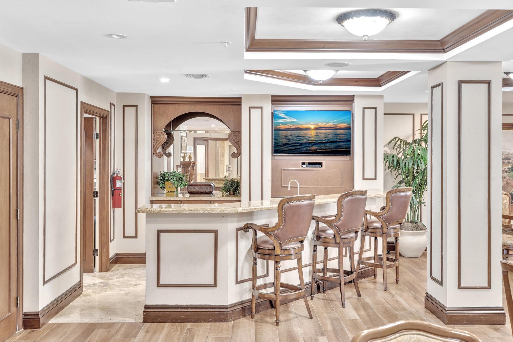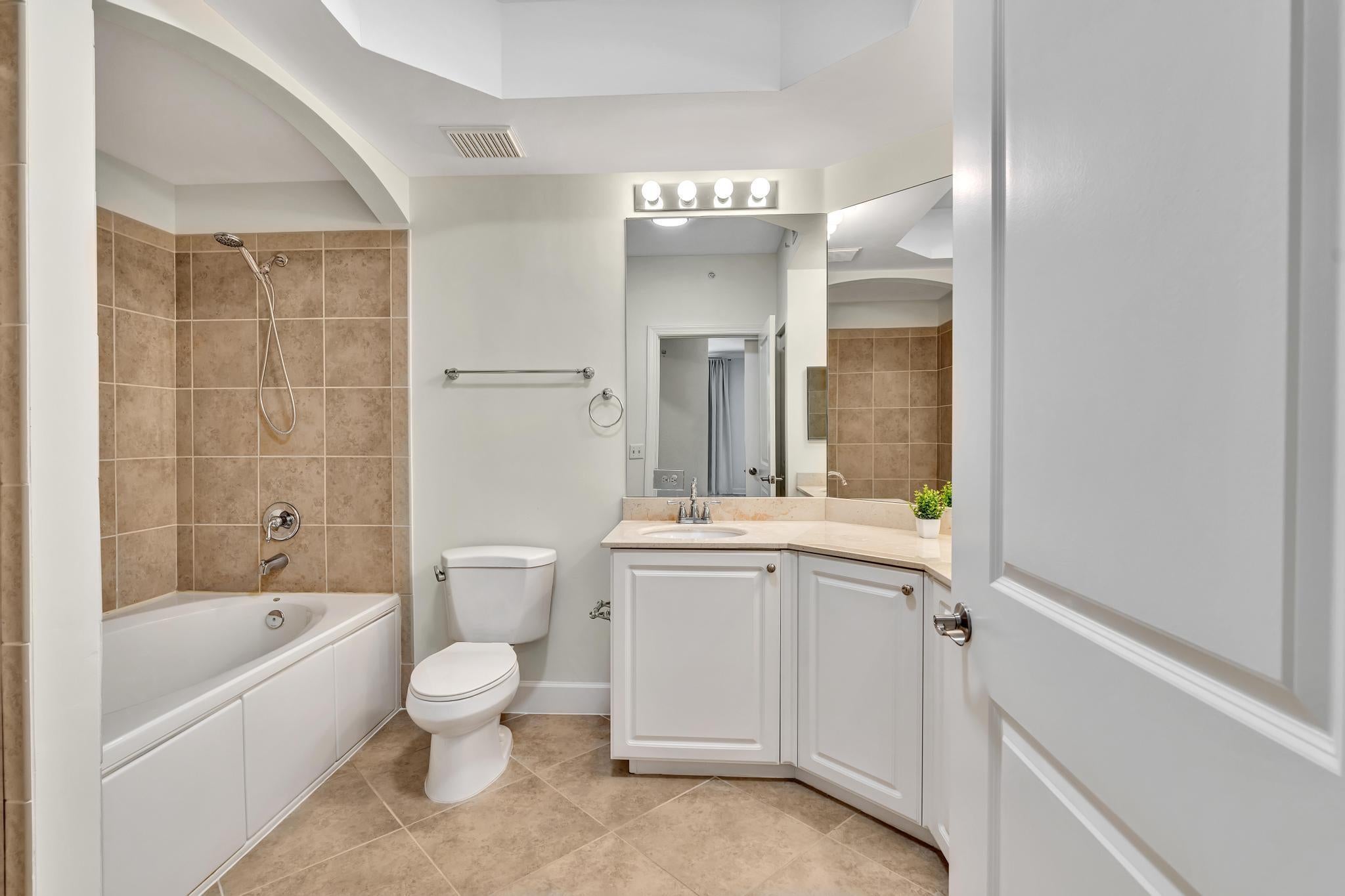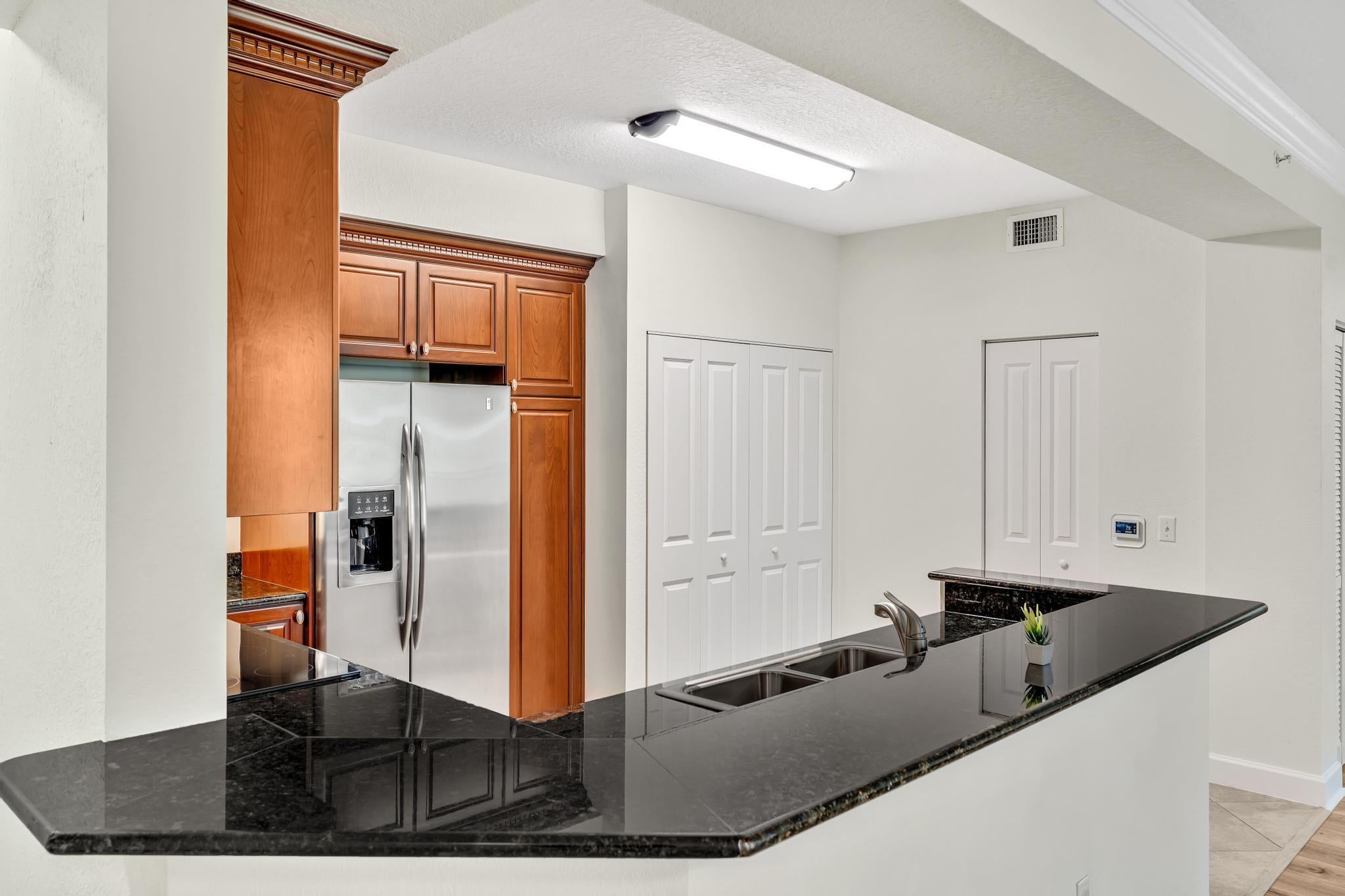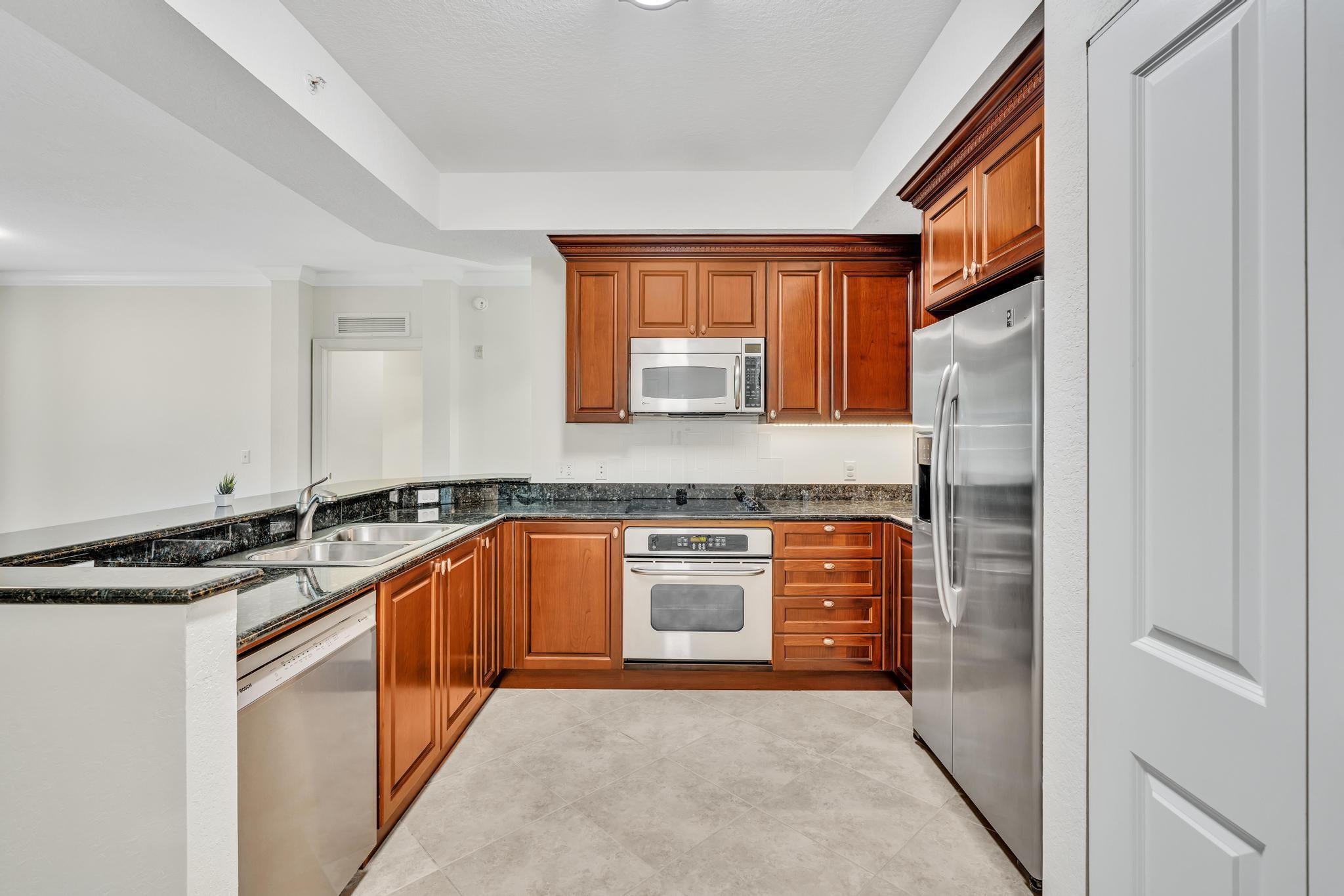 Hurry--rarely available corner penthouse!Spacious 3-bedroom, 2-bath unit with an oversized balcony and beautiful views. Thoughtful split layout features a master suite with dual sinks, separate tub & shower, and two additional bedrooms on the opposite side for privacy. The open-concept living and dining area flows into a modern kitchen--perfect for entertaining and gourmet cooking. Recent upgrades include new AC, dishwasher, new fridge, new washer & dryer. Hurricane impact windows throughout! This gated community offers resort-style amenities: clubhouse, pool, fitness center, club room, and more. Unit comes with two parking spaces, plus cable, water and internet included in the monthly fee.Unbeatable location--walk to restaurants, movie theaters, and shopping at the nearby mall.
