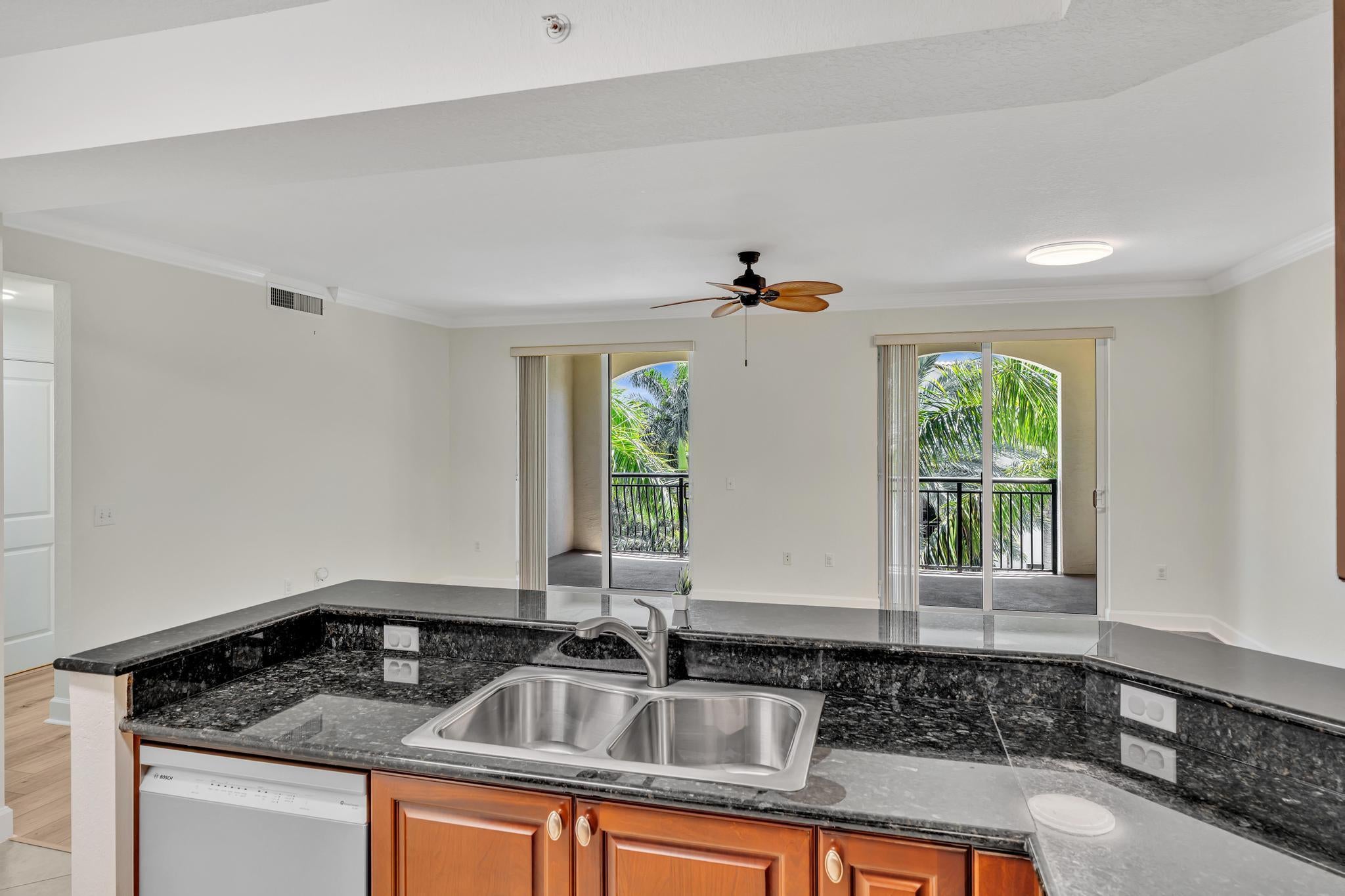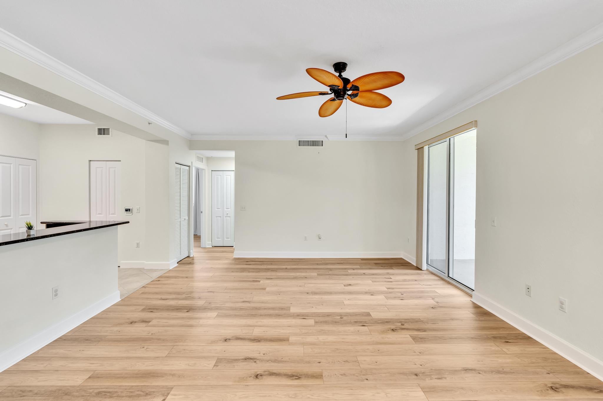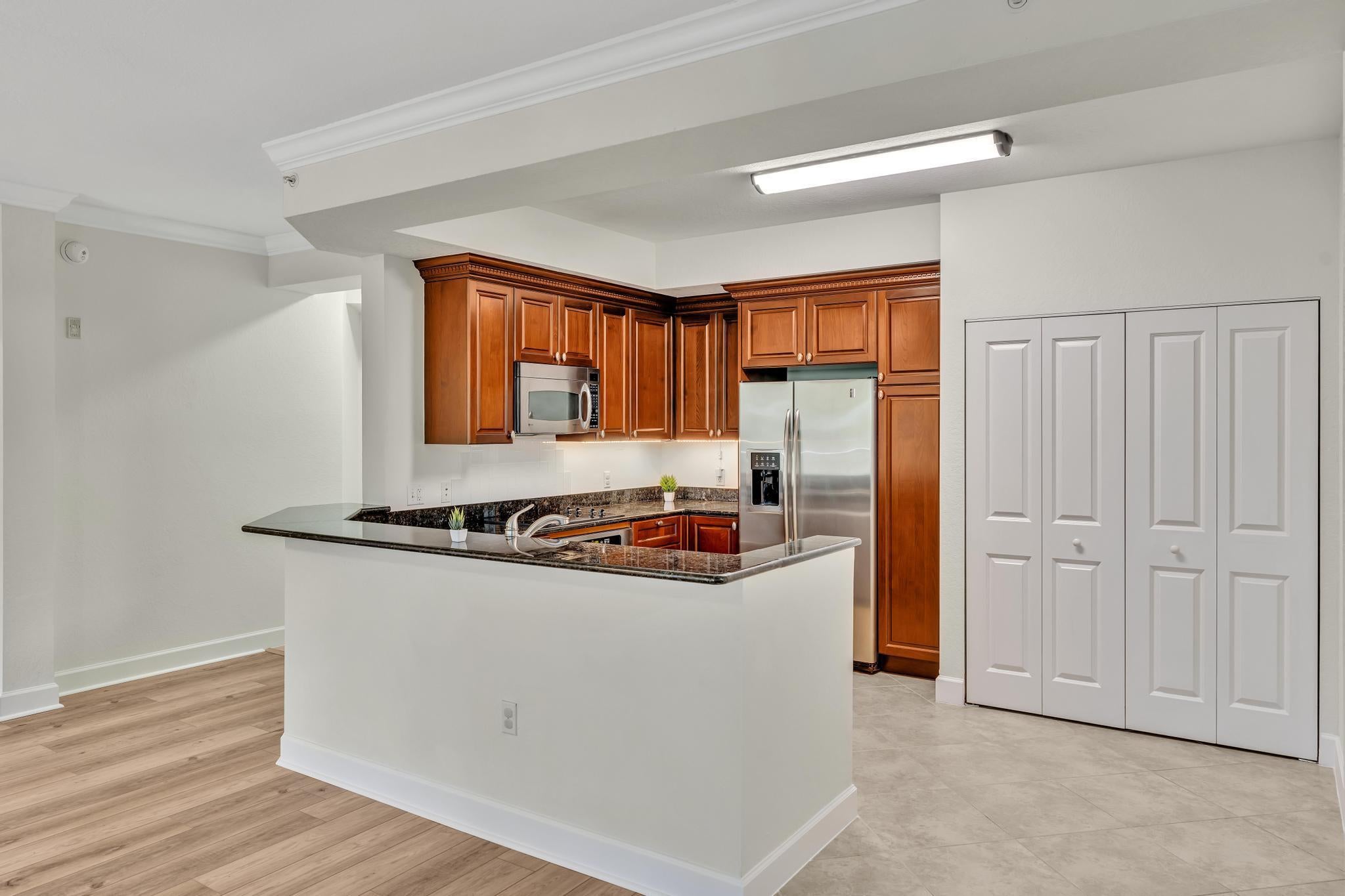 Hurry--rarely available corner penthouse!Spacious 3-bedroom, 2-bath unit with an oversized balcony and beautiful views. Thoughtful split layout features a master suite with dual sinks, separate tub & shower, and two additional bedrooms on the opposite side for privacy. The open-concept living and dining area flows into a modern kitchen--perfect for entertaining and gourmet cooking. Recent upgrades include new AC, dishwasher, new fridge, new washer & dryer. Hurricane impact windows throughout! This gated community offers resort-style amenities: clubhouse, pool, fitness center, club room, and more. Unit comes with two parking spaces, plus cable, water and internet included in the monthly fee.Unbeatable location--walk to restaurants, movie theaters, and shopping at the nearby mall.
