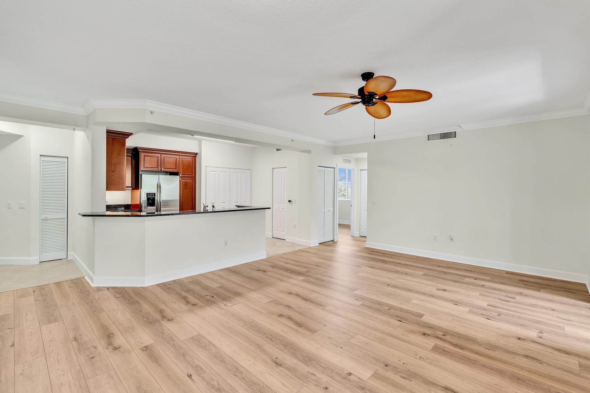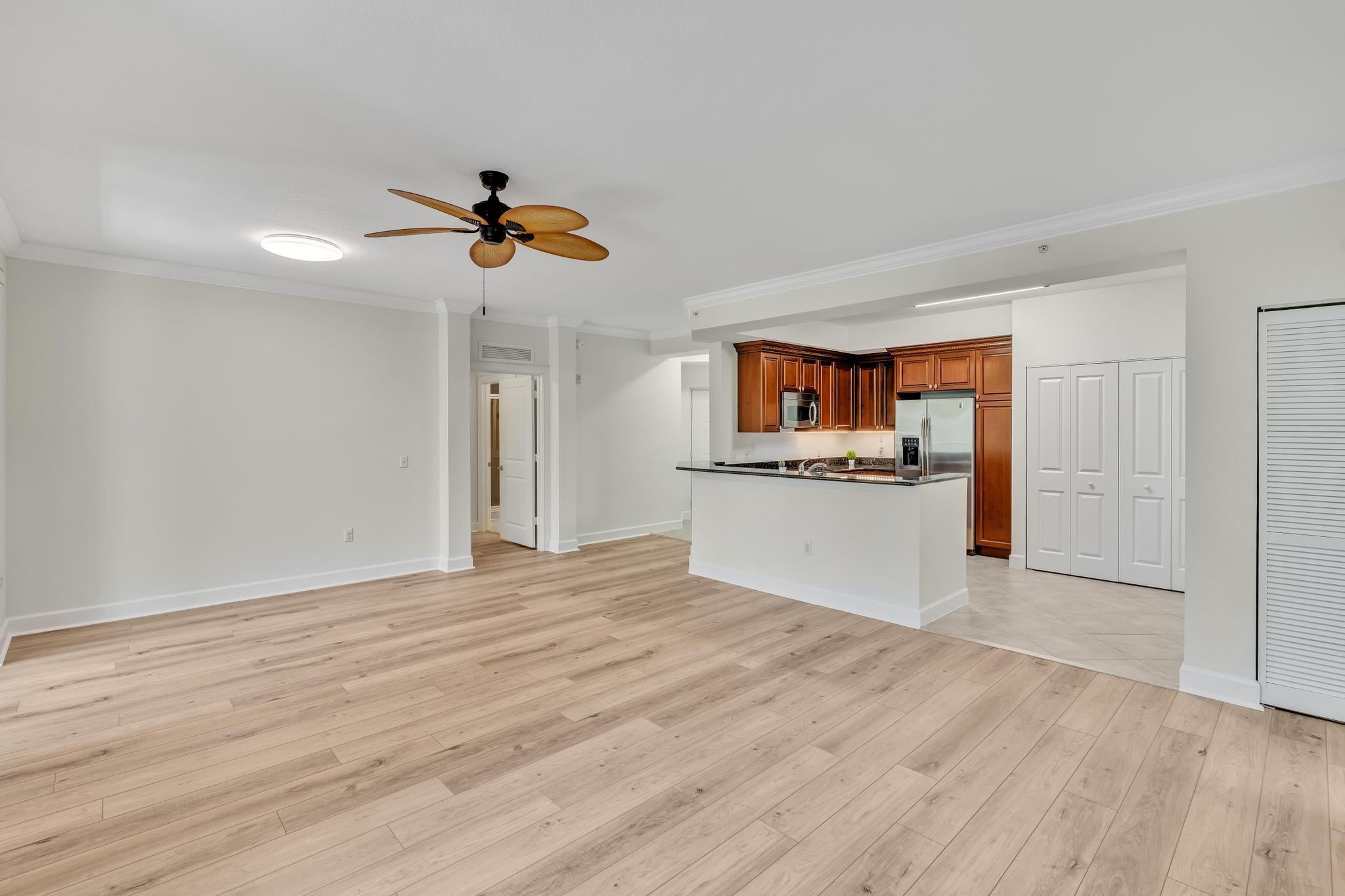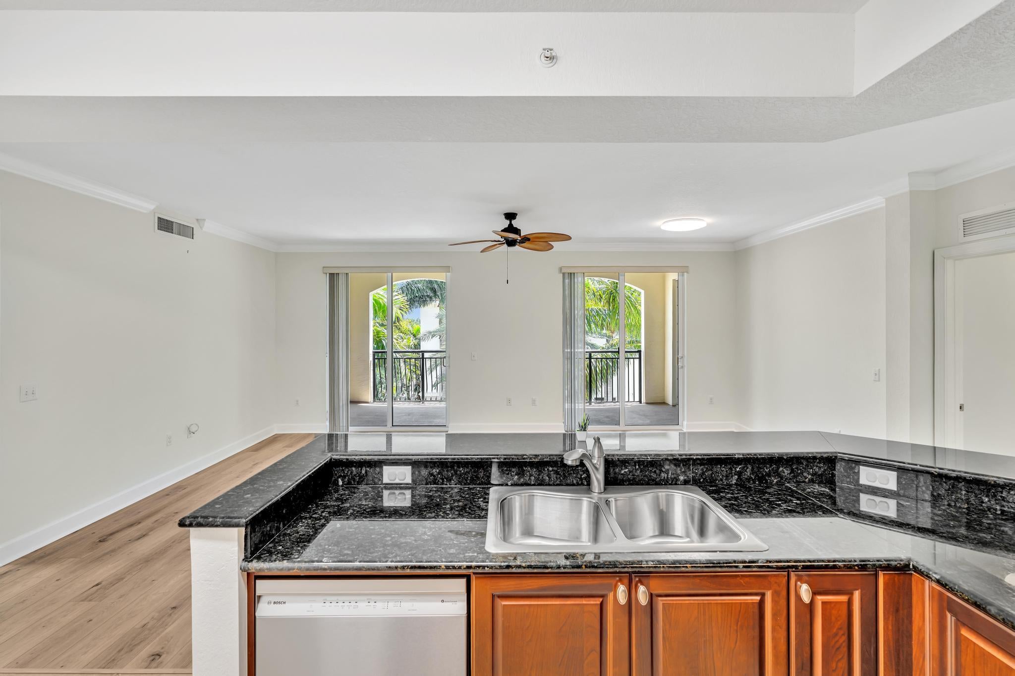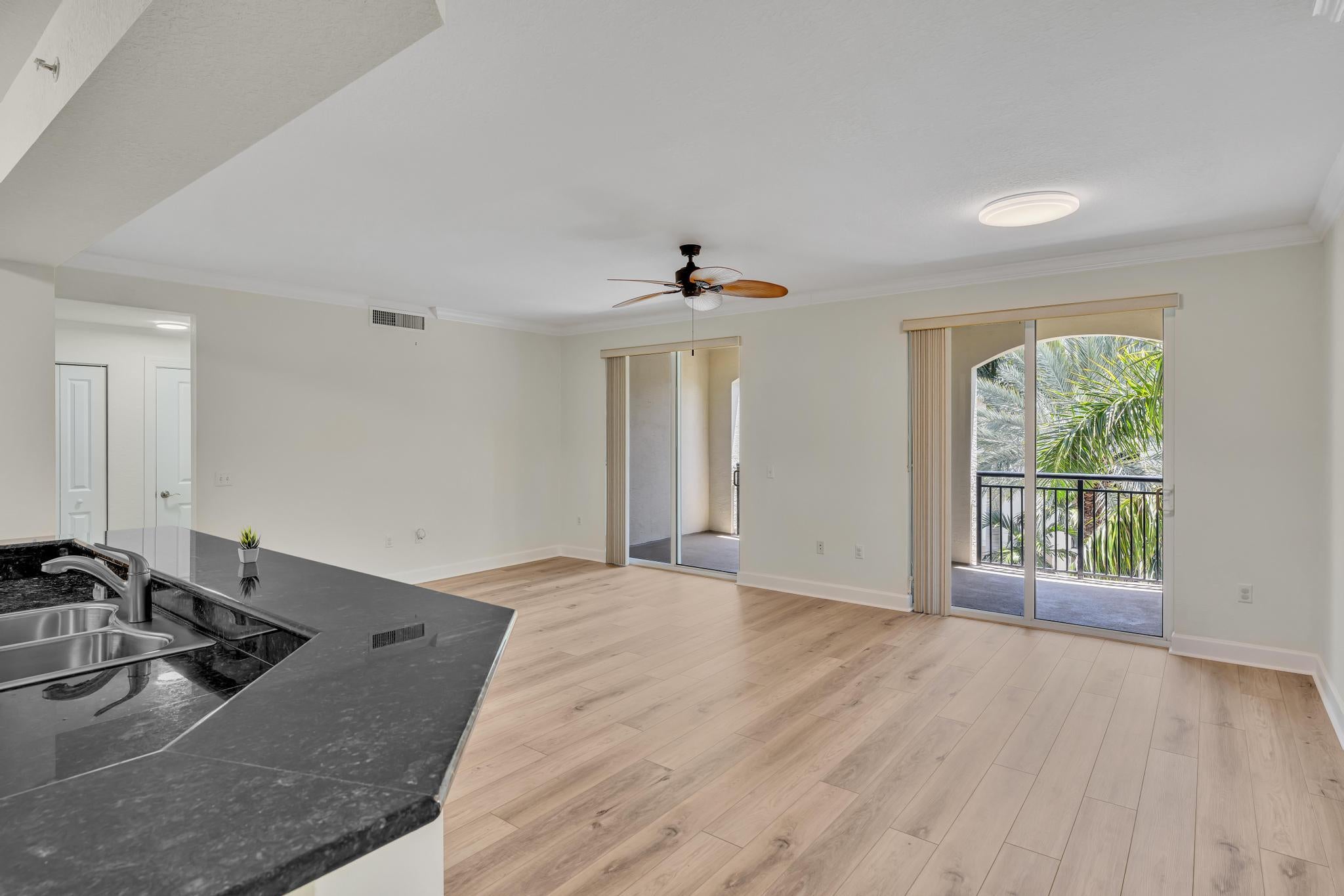 Hurry--rarely available corner penthouse!Spacious 3-bedroom, 2-bath unit with an oversized balcony and beautiful views. Thoughtful split layout features a master suite with dual sinks, separate tub & shower, and two additional bedrooms on the opposite side for privacy. The open-concept living and dining area flows into a modern kitchen--perfect for entertaining and gourmet cooking. Recent upgrades include new AC, dishwasher, new fridge, new washer & dryer. Hurricane impact windows throughout! This gated community offers resort-style amenities: clubhouse, pool, fitness center, club room, and more. Unit comes with two parking spaces, plus cable, water and internet included in the monthly fee.Unbeatable location--walk to restaurants, movie theaters, and shopping at the nearby mall.