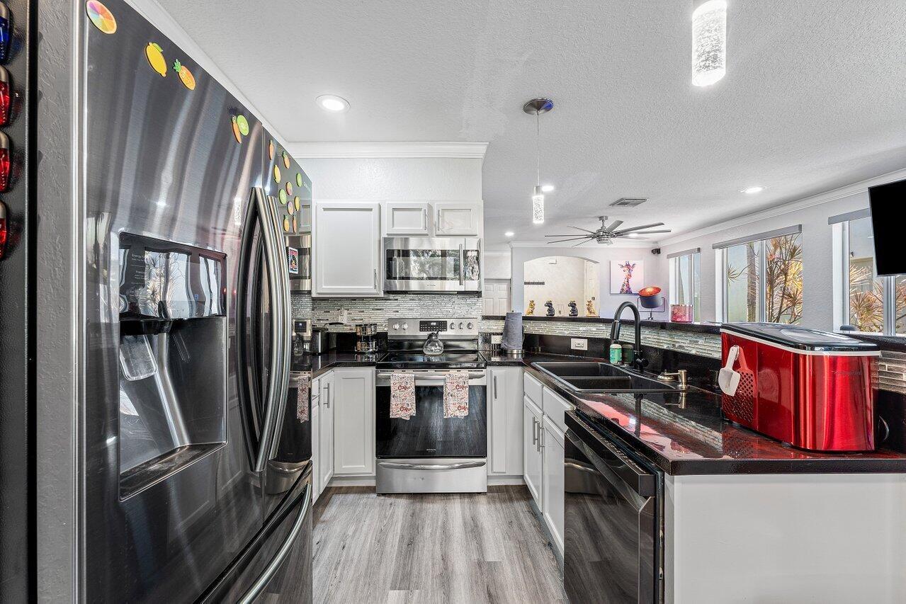 Completely repainted and refreshed, this immaculate 3-bedroom, 2.5-bathroom corner townhome in the desirable Thousand Oaks community is ready to impress! The home features smart-home technology, luxury hardwood floors, custom lighting, crown molding, and hurricane impact windows. The kitchen and living areas flow seamlessly, with thoughtful details like custom blinds, smart ceiling fans, and a Nest thermostat. Additional highlights include a tankless water heater, Ring camera system, WiFi garage door, 1 car garage with a 2 car driveway, and a private outdoor patio with a fire pit, perfect for relaxing or entertaining. The AC was replaced in 2019 for peace of mind. Residents of Thousand OaksResidents of Thousand Oaks enjoy resort-style amenities, including a pool, clubhouse, fitness center, and moreall with the convenience of a low-maintenance lifestyle.