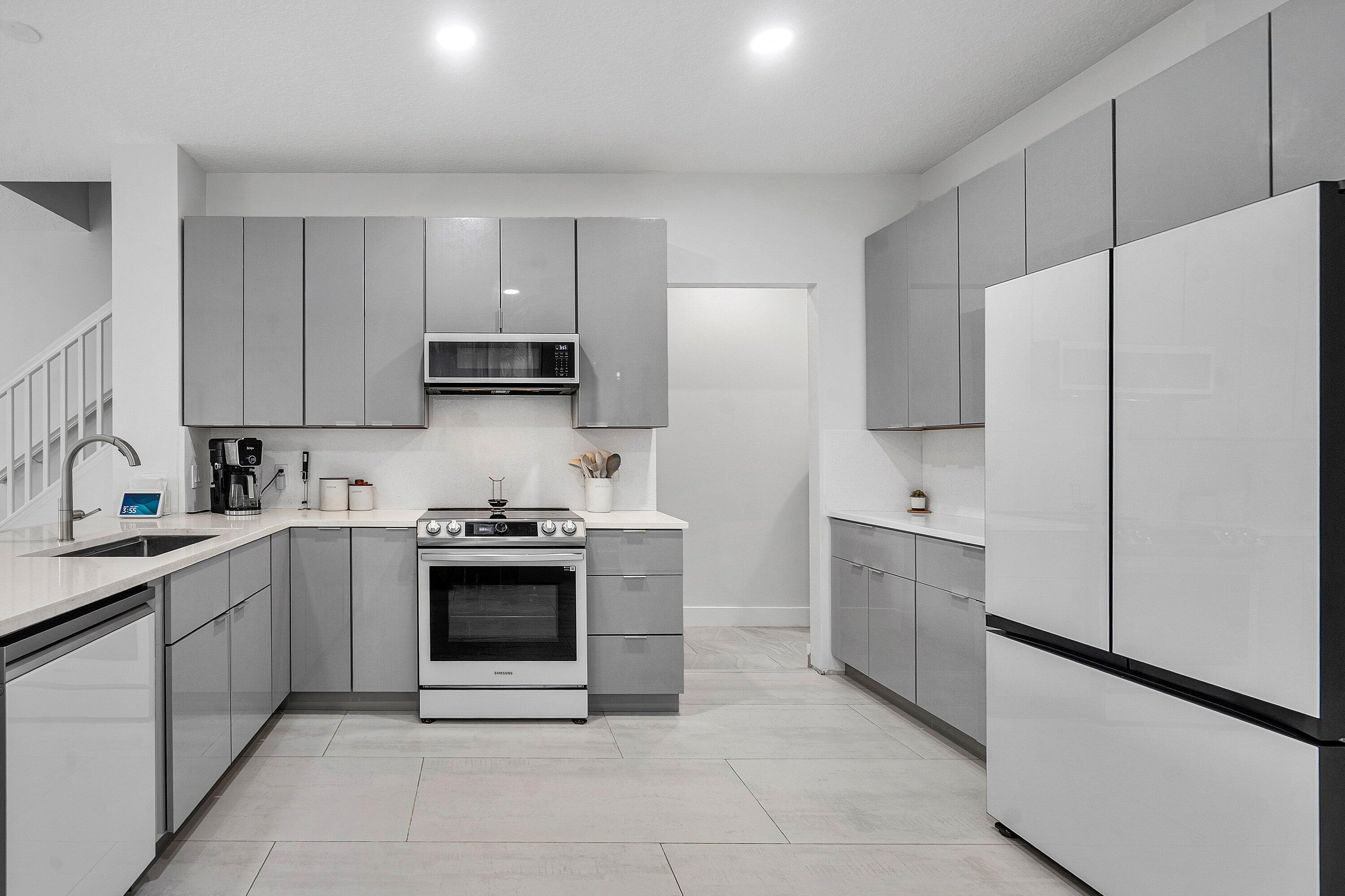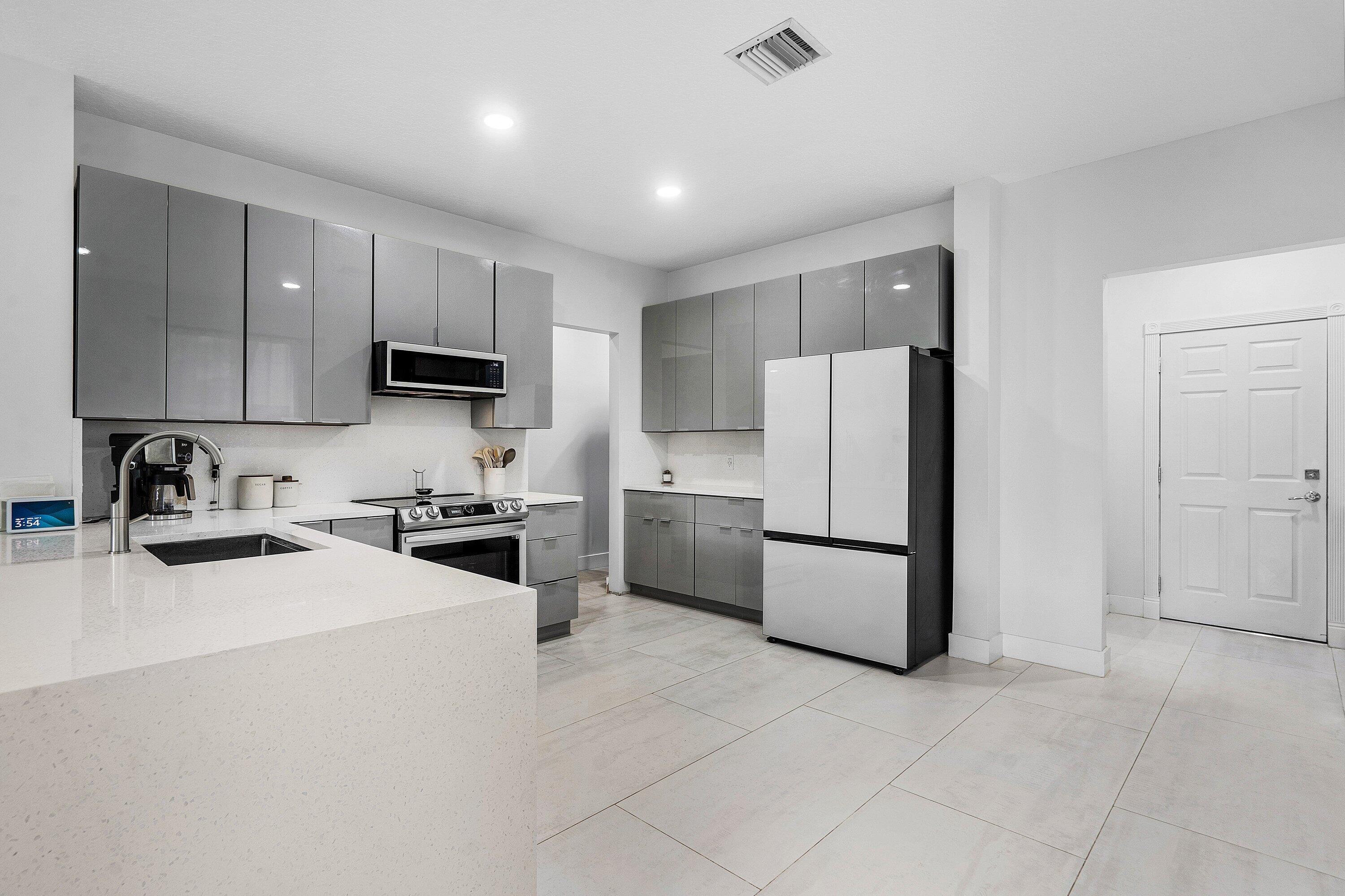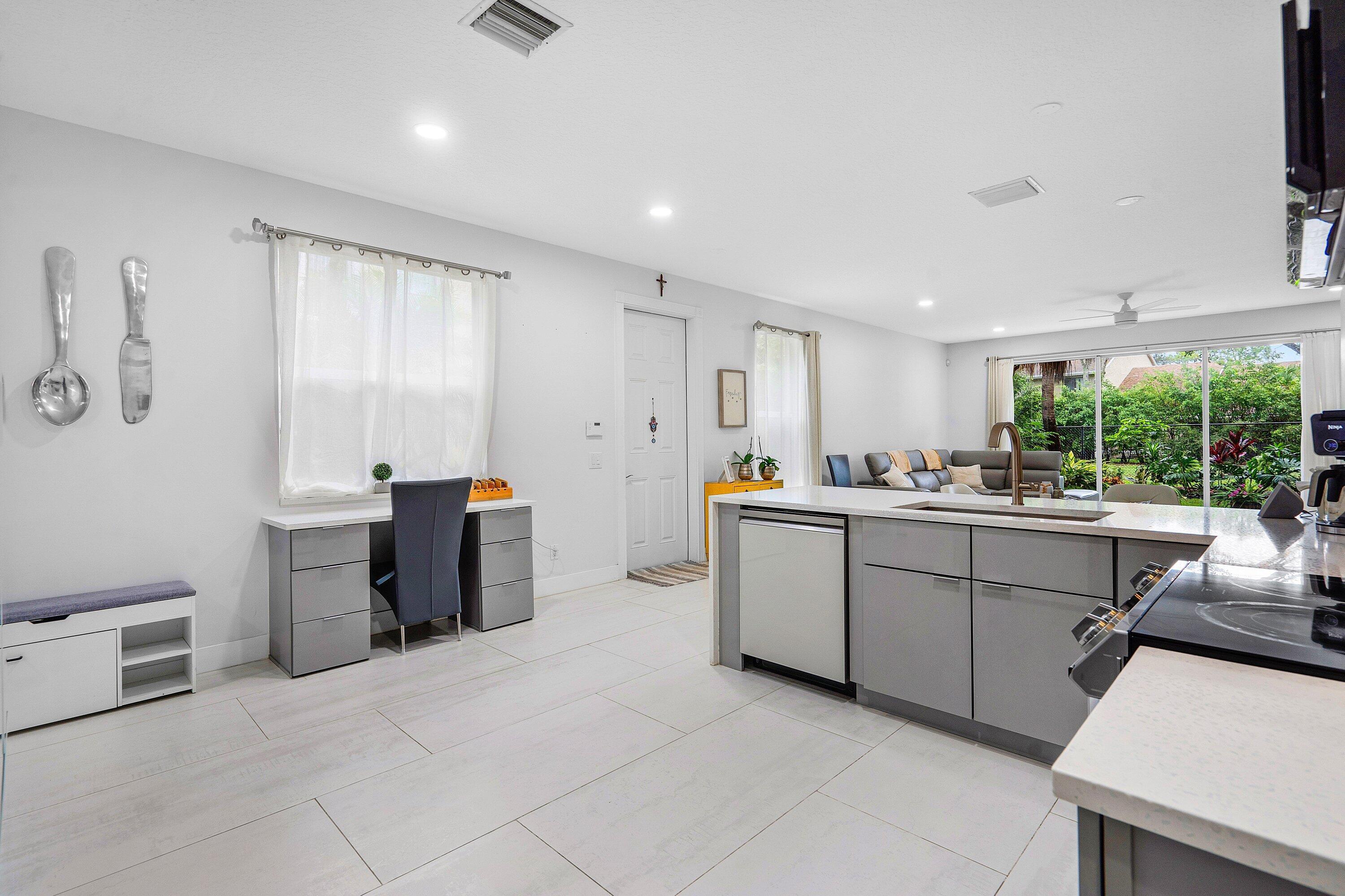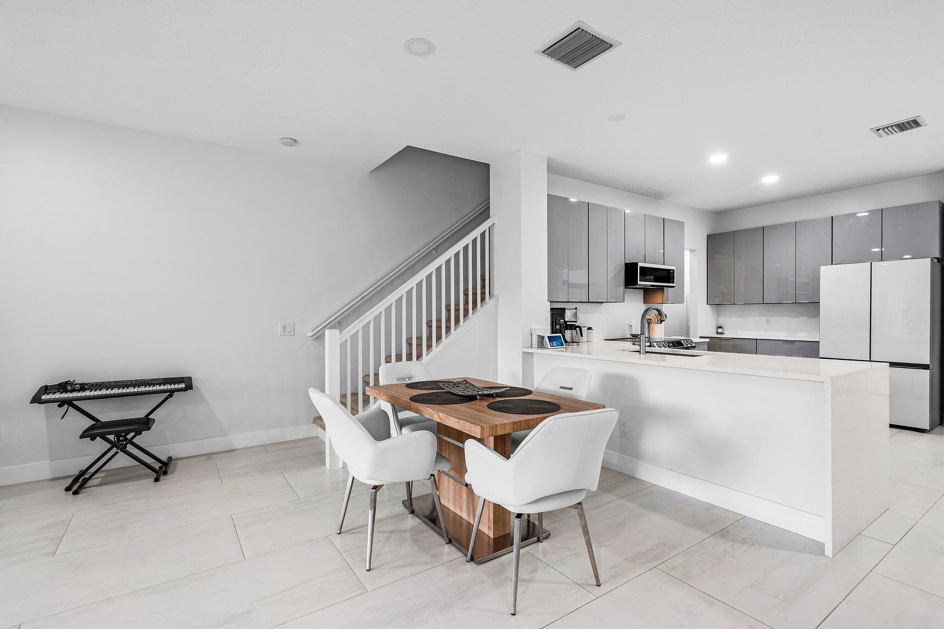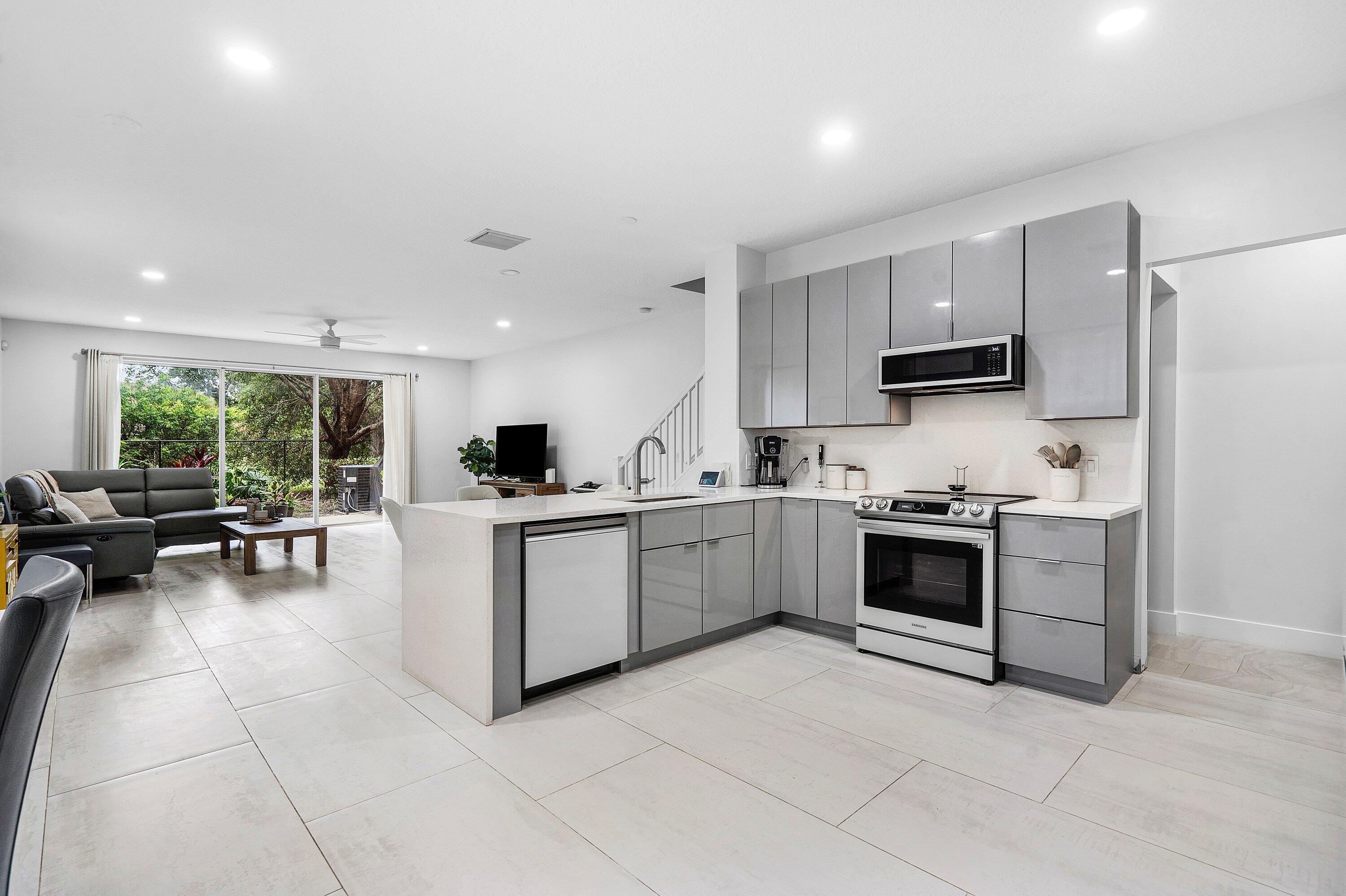 Amazing corner unit with 3 Bedrooms UPSTAIRS, 2 & half bathroom, 2 car garage in a desirable gated community. Spacious townhouse with an open floor plan, garden view and within walking distance to community pool. The remodeled kitchen features tall cabinets, quartz countertop, new appliances and custom-built desk. The 1st floor with tile flooring, half bath remodeled. The master suite includes walk-in closet, master bathroom with shower & dual vanities. The air conditioner 2018 replaced, new tankless water heater. Great location close to schools, parks, library, Publix shopping center. Easy access to Turnpike & I-95. LOW association fee includes basic cable, building exterior maintenance and exterior insurance. All ages welcome and 2 pets. Special assessment due for the roof replacement.