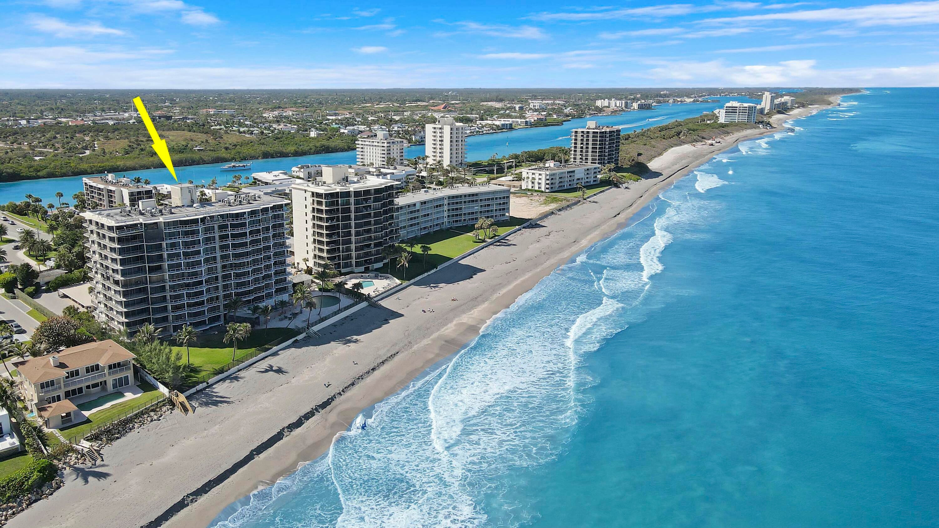 This rarely available corner residence on the 8th floor of Ocean Towers South is located in one of Jupiter Island's most highly sought-after buildings. This large split floorpan offers nearly 2,000 sq ft and breathtaking panoramic ocean views . Featuring an expansive wraparound balcony, this condo is filled with natural sunlight and Atlantic Ocean views. Right next to the iconic Jupiter Lighthouse, this residence is part of an exclusive enclave known for its privacy, beauty, and world-class coastal living. With all major assessments fully paid, the building is undergoing a stunning transformation, including brand-new sleek glass balconies that will elevate its modern appeal. This stack has been completed! Now is the perfect opportunity to design this condo to your exact vision.A dream oasis by the sea where you can embrace the ocean breeze and relax in your private beach retreat. Ocean Towers South offers private beach access, a heated oceanfront pool, a fitness center with a sauna, covered parking, and on-site management. Enjoy the ocean breeze while being just minutes from Tequesta and Jupiter's finest dining, shopping, and golf courses. This is a rare opportunity to customize a prime oceanfront retreat in one of South Florida's most coveted locations.