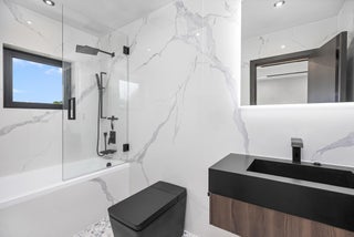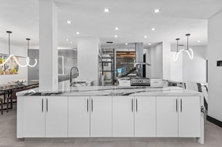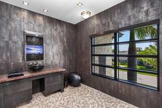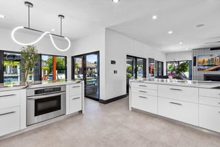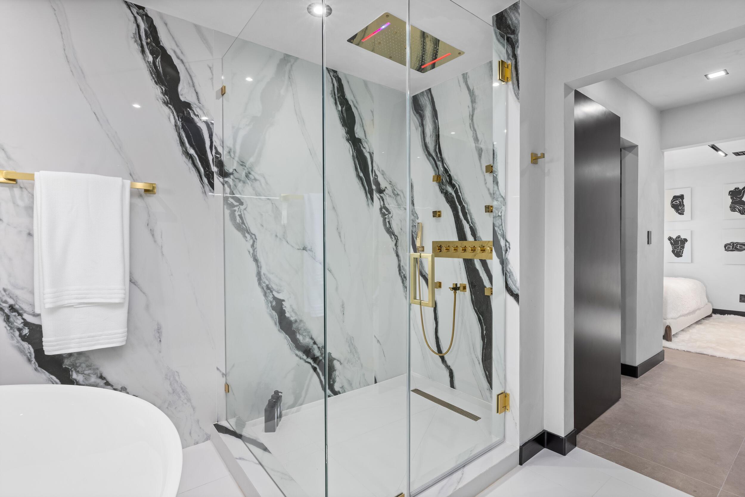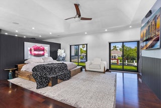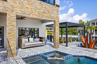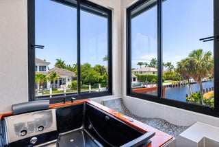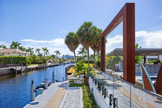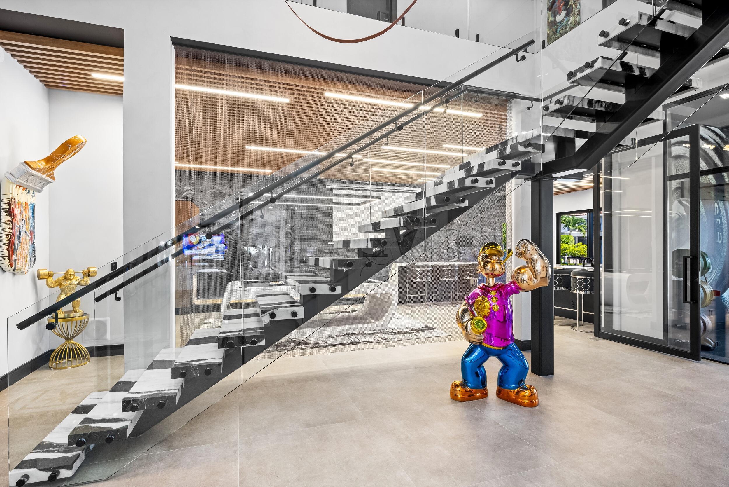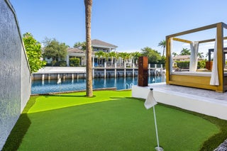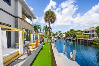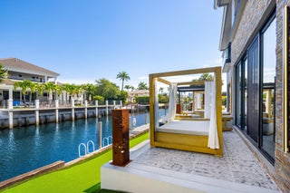 Discover 839 NE Bay Isle Drive, a newly built contemporary masterpiece in Boca Bay Colony. Spanning over 9,000 square feet on an oversized lot with 135 feet of deepwater frontage, this estate offers direct ocean access in minutes. Offered Fully furnished with bespoke custom furniture, this 6-bedroom, 8-bathroom residence redefines luxury waterfront living. Powered by natural gas with a tankless water heater, it blends cutting-edge technology and curated finishes for unparalleled sophistication. Enter through a glass pivot door into the Great Room, where soaring ceilings, 42'' x 42'' porcelain floors, and pool deck views captivate. The chef's kitchen boasts a Viking gas cooktop, Thermador oven, GE double oven, JennAir dishwasher, Kenmore refrigerator, and a walk-in pantry with a SamsungSmart refrigerator, all accented by sintered stone surfaces. The adjacent dining room, with a custom Walnut and Epoxy table for 12, flows into a family area enhanced by Denon sound systems throughout. A private office with custom millwork offers serene productivity. The Lounge Room, an entertainer's dream, features a $20,000 designer pool table, duckpin bowling, 120" retractable projector screen, and a wet bar with a sink, icemaker, refrigerator, and 80-bottle wine cooler. The Fitness Center, framed by a glass pivot door and metal mesh divider, includes a Concept 2 Ski Erg, Rower, Assault Bike, heavy bag, speed bag, and poolside access with water views. A 4-car garage with Nitro tile flooring and tinted glass doors completes the main level. Ascend the Panda marble staircase or custom hydraulic elevator to the Owner's Suite, featuring dual walk-in closets and two spa-inspired bathrooms with a steam room, Jacuzzi, Smart Shower, granite pedestal sink, and smart toilets with remote controls, heated seats, and bidets. The guest master bathroom showcases ceiling-to-floor Panda sintered stone, while other upstairs bathrooms feature Calcutta sintered stone, smart mirrors, and pebble tile floors. A media room with a 100" TV, Denon surround system, and multicolored star ceiling delivers cinematic luxury. The outdoor oasis features a saltwater pool, spa, wrap-around putting green, and a stainless steel summer kitchen with a new 6-burner gas grill, double side burner, refrigerator, and Italian wood-burning pizza oven, all under a heated overhang with projector screen mount. Unwind by the 15+ foot water feature, accented by Corten steel agave plants and a water sculpture, or relax under the 15x15 louvered pergola. The Trex-decked dock, with new power towers and a floating jet ski dock, perfects waterfront living. 839 NE Bay Isle Drive epitomizes modern luxury in East Boca Raton's premier enclave waterfront neighborhood.