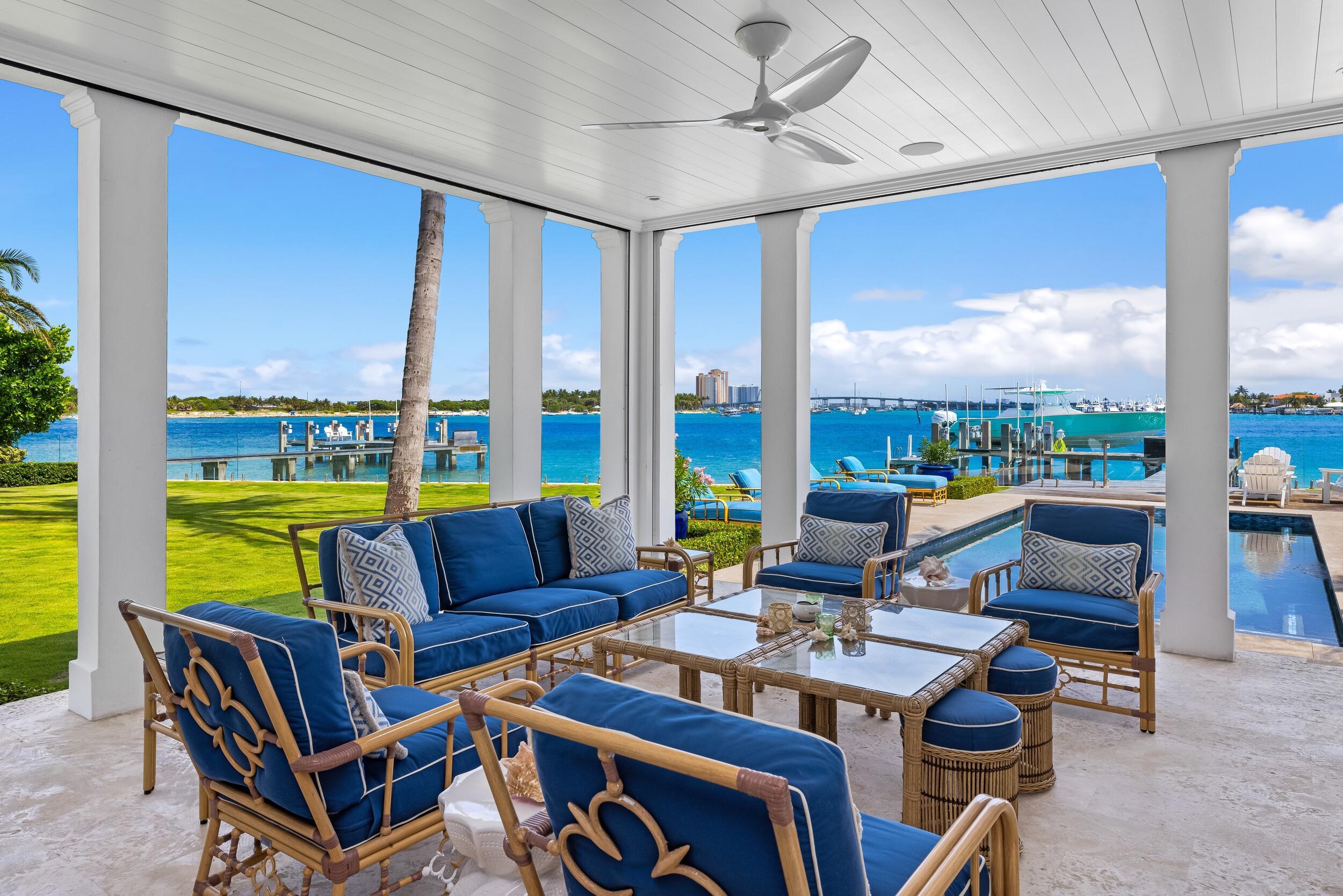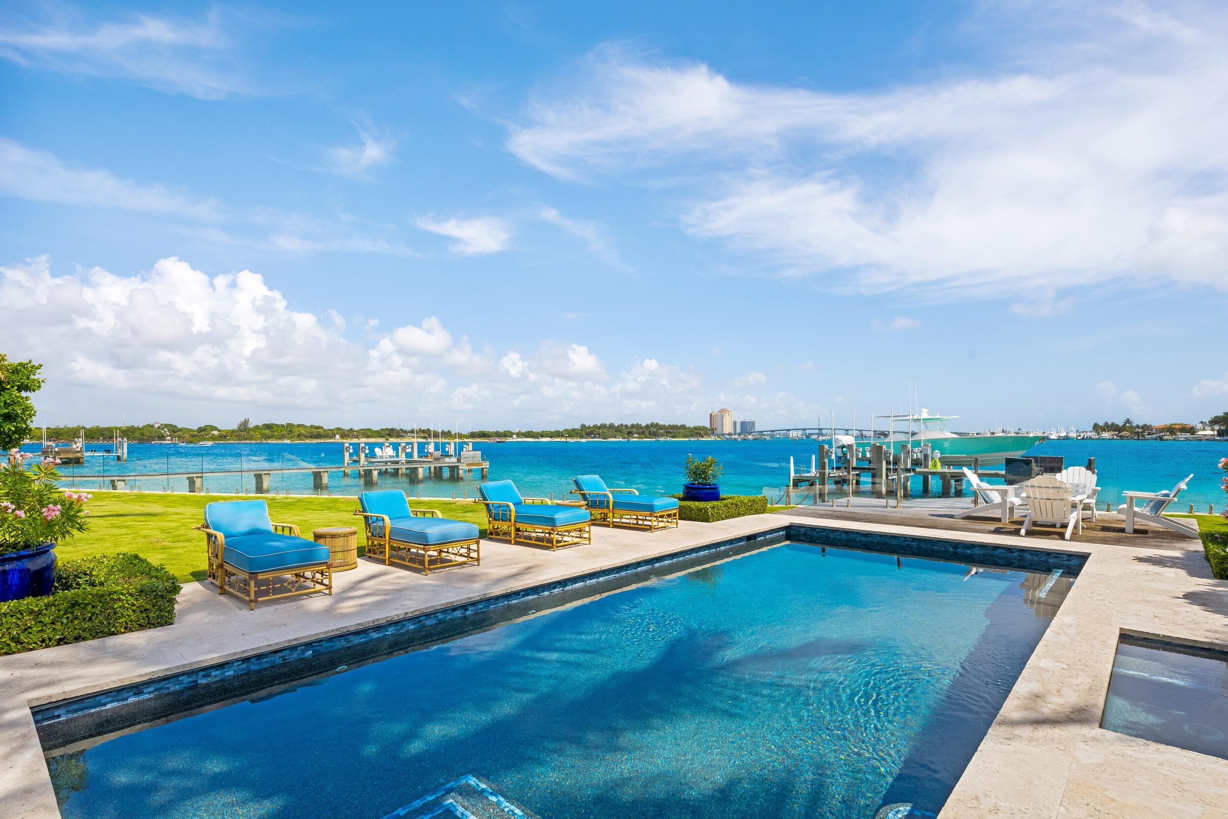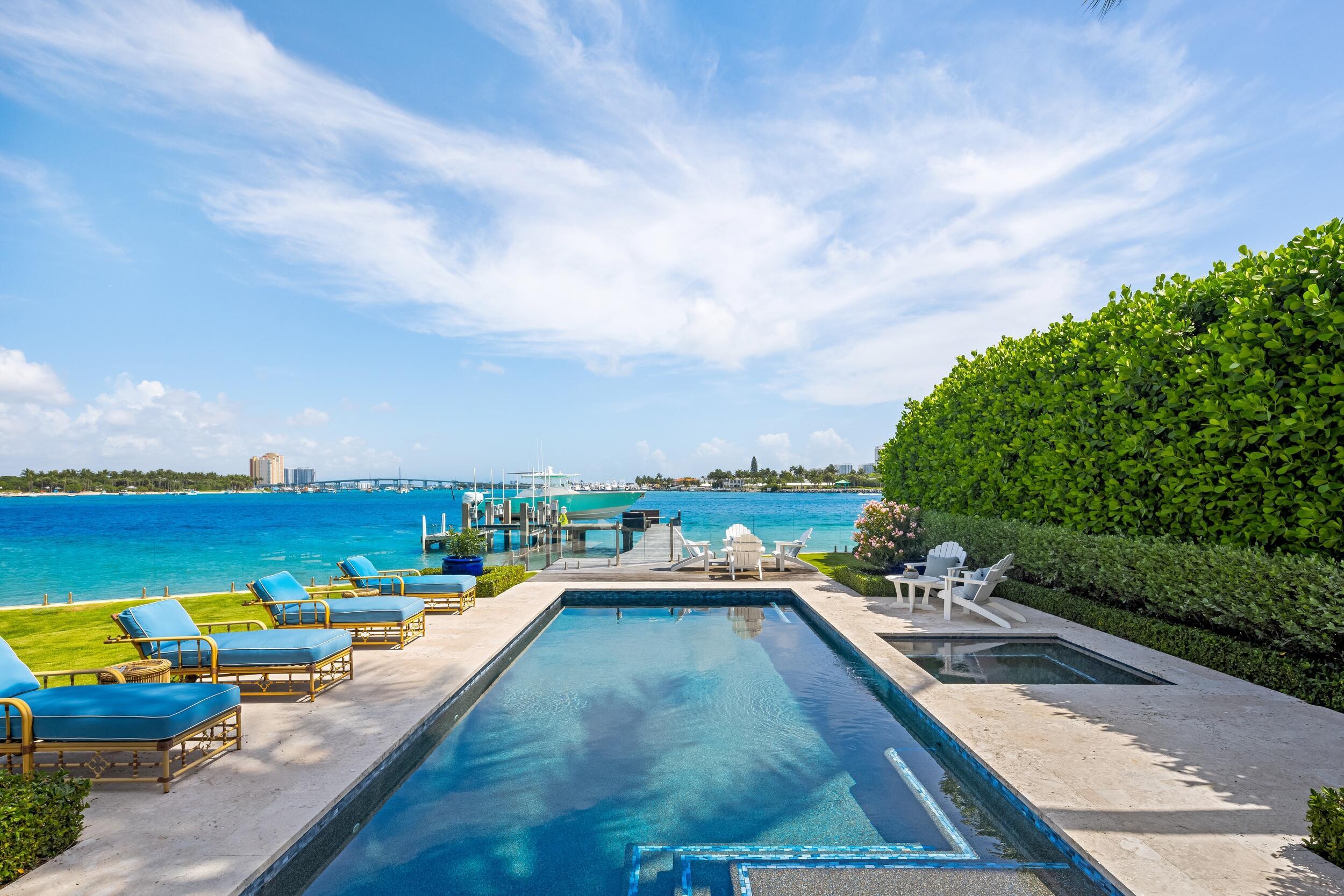 Welcome to 1610 N Ocean Blvd, a rare opportunity to own a spectacular 6-bedroom, 7.2-bathroom waterfront residence, masterfully built in 2018. With breathtaking views from all principal rooms, this elegant estate offers the perfect blend of British West indies elegance and contemporary refinement.A long private, gated driveway leads to a grand, beautifully landscaped courtyard entrance - providing the feeling of entering a lush tropical compound. The iconic entryway leads into an expansive formal living room with a stately fireplace, with Bahamian blue water colors conveniently positioned as the perfect backdrop. The gourmet chef's kitchen is a culinary dream, featuring a large center island and seamlessly flowing into the spacious family room, ideal for relaxed entertaining.Thoughtfully designed for both comfort and convenience, this trophy estate includes a richly appointed library, a private elevator, a fully equipped staff kitchen, and two separate garages fitting up to 4 vehicles. Above each two car garage, sits ideally separated guest suites, one connected to the home and one unattached - allowing residents to generously host their guests and family with the added perk of privacy and space. The owner's suite is a private retreat with sweeping Intracoastal views, an elegant sitting room, morning bar, dual spa-inspired baths, generous walk-in closets, and a serene balcony complete with a fireplace. A luxurious VIP suite on the first floor offers a walk-in closet, opulent bath, and private patio access, perfect for guests and family. Resort-style outdoor enjoyment is defined by elevated island landscaping, a sparkling pool and spa, a breath-taking covered waterfront loggia with fireplace and TV, and a private dock with boat lift and seating area, all overlooking the tranquil water views. This generational, legacy residence pairs the privacy of the North End and the beauty of island life with convenient access to both the idyllic town of Palm Beach and the bustling commercial hub of West Palm Beach. DISCLAIMER: Information published or otherwise provided by the listing company and its representatives including but not limited to prices, measurements, square footages, lot sizes, calculations, statistics, and videos are deemed reliable but are not guaranteed and are subject to errors, omissions or changes without notice. All such information should be independently verified by any prospective purchaser or seller. Parties should perform their own due diligence to verify such information prior to a sale or listing. Listing company expressly disclaims any warranty or representation regarding such information. Prices published are either list price, sold price, and/or last asking price. The listing company participates in the Multiple Listing Service and IDX. The properties published as listed and sold are not necessarily exclusive to listing company and may be listed or have sold with other members of the Multiple Listing Service. Transactions where listing company represented both buyers and sellers are calculated as two sales. "No payments made until title passes" Some affiliations may not be applicable to certain geographic areas. If your property is currently listed with another broker, please disregard any solicitation for services. Information published or otherwise provided by seller, listing company or its representatives is deemed reliable but are not guaranteed and subject to errors, omissions, or changes without notice. Copyright 2025 by the listing company. All Rights Reserved.