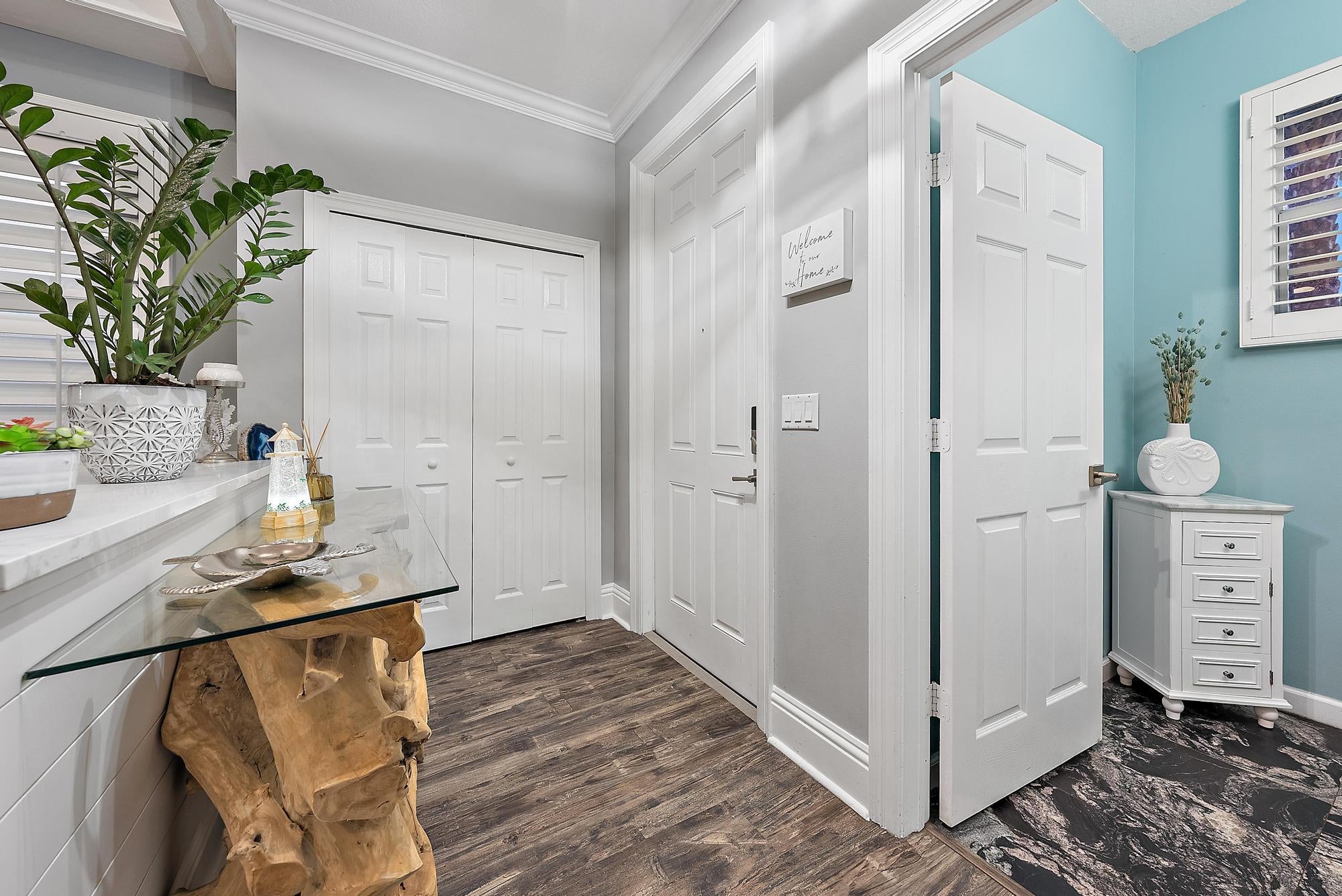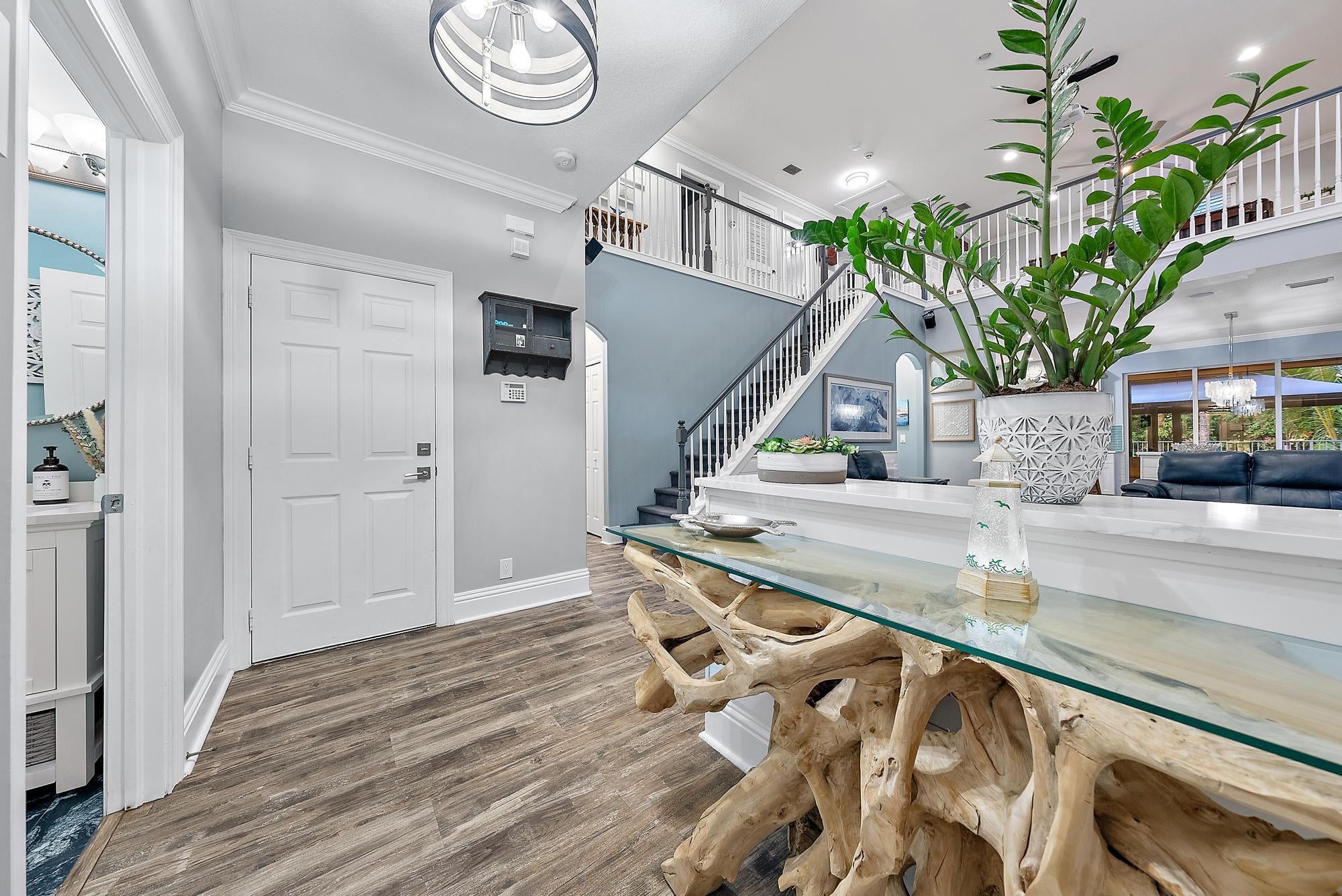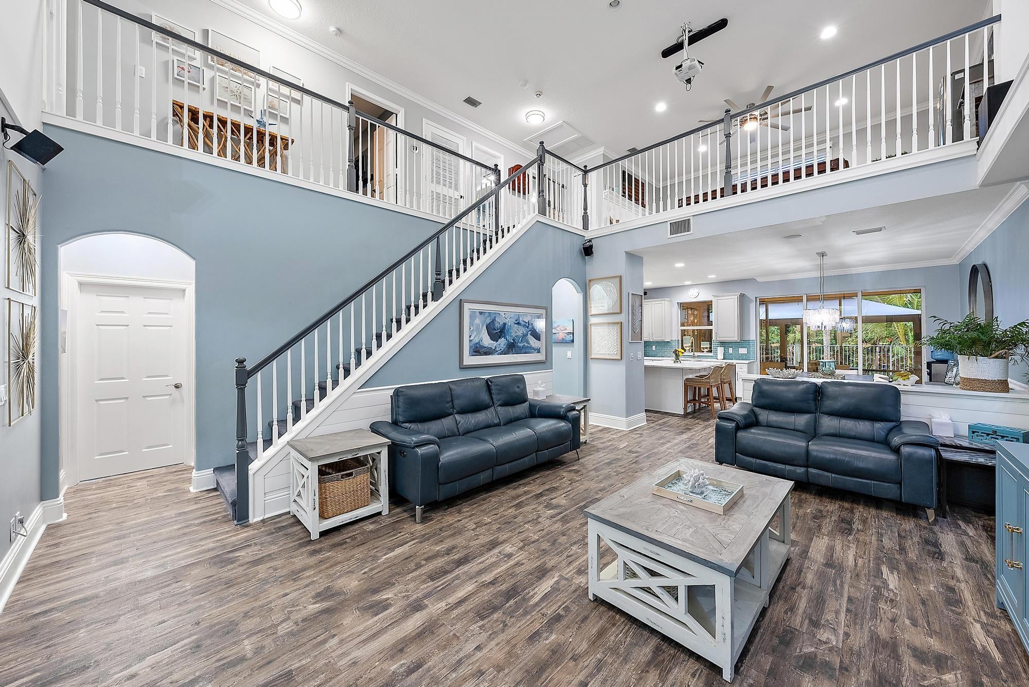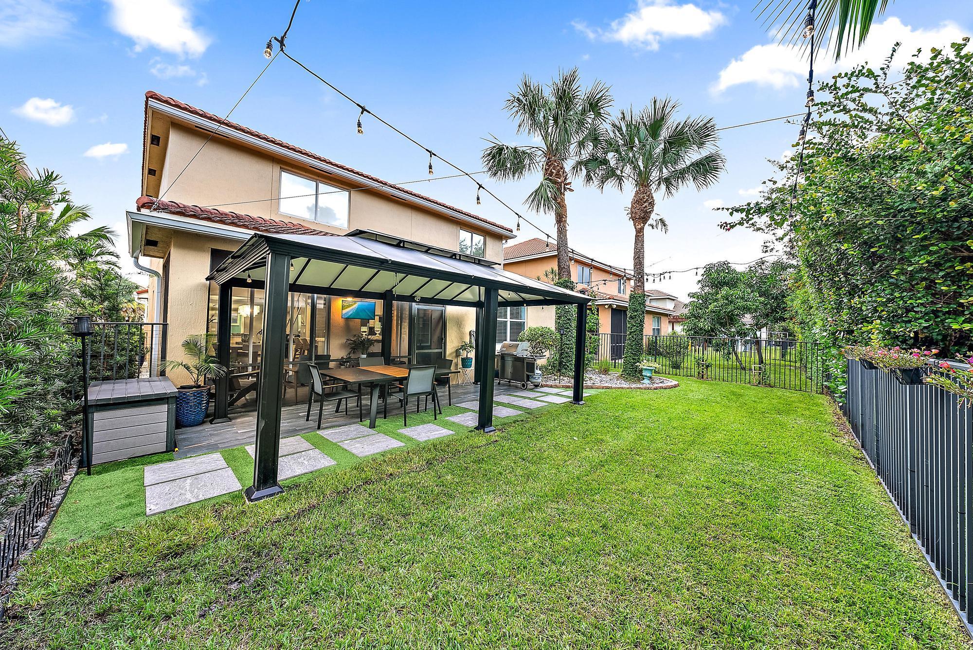 Stunning 4-bedroom, 3.5-bath Catalina model in the sought-after Oaks of Hobe Sound. This home combines elegance with everyday functionality. Step inside to soaring ceilings and abundant natural light, creating a bright, open, and inviting atmosphere. The spacious family room flows effortlessly into the newly remodeled gourmet kitchen, featuring 42'' wood cabinetry, quartz countertops, tile backsplash, a large island, and newer Samsung appliances. Pocket sliding doors extend the living space to the screened lanai, offering the perfect indoor-outdoor lifestyle. The first-floor primary suite is a private retreat with sliding doors to the patio, dual walk-in closets, and a beautifully updated ensuite complete with dual vanities, a Jacuzzi tub, and a separate shower.The ground floor features a powder room and a spacious laundry room equipped with a Samsung front-loading washer and dryer on stands, a deep stainless steel Kraus sink, granite countertops, and a spray faucet. Upstairs, a large loft/media room offers versatile living space, accompanied by two bedrooms with walk-in closets, a remodeled bathroom with a concave tub, and a second master suite with its own ensuite. All bathrooms have been beautifully updated with Moen hardware and high-end finishes. This home is filled with modern upgrades and custom touches throughout. Highlights include custom-built closets and pantry, barn doors, shiplap accents, and smooth-finished walls for a clean, contemporary look. The main living areas feature wood-plank luxury vinyl flooring, new custom baseboards, and crown molding in key spaces, including the primary bedroom, loft, front entry, and dining room. Outdoor living is just as impressive, featuring a fenced backyard with a 12x20 gazebo, a screened lanai with slate tile, and meticulously maintained landscaping highlighted by a striking Sylvester Palm. Recently added LED smart bistro lights and solar pathway lighting create the perfect ambiance, while seamless gutters were installed in 2022. Additional upgrades include a new A/C (2023), newer water heater (2023), tinted windows for energy efficiency, custom garage cabinetry, and grey marble window sills throughout the ground floor. Both the interior and exterior have been freshly painted with Sherwin-Williams Super Paint, and all light fixtures upgraded to LED. Blending elegance, convenience, and thoughtful customization, this home is truly move-in ready and designed to impress. The Oaks HOA includes lawn care, a basic cable and high-speed internet bundle, gated entrances, a resort-style pool, a hot tub, and a playground. Hobe Sound is a hidden gem tucked away between Jupiter and Stuart. The Oaks is minutes away from some of the best beaches on the Treasure Coast, including Hobe Sound Beach on Jupiter Island, Jimmy Graham Park, where you can launch your boat, kayak, or paddleboard, and Gomez Preserve, which offers some of the best biking & hiking trails in South Florida. Downtown Hobe Sound has boutique shops & restaurants. This home is perfect for families or anyone seeking a peaceful lifestyle surrounded by nature. Don't miss your chance to make it yours!