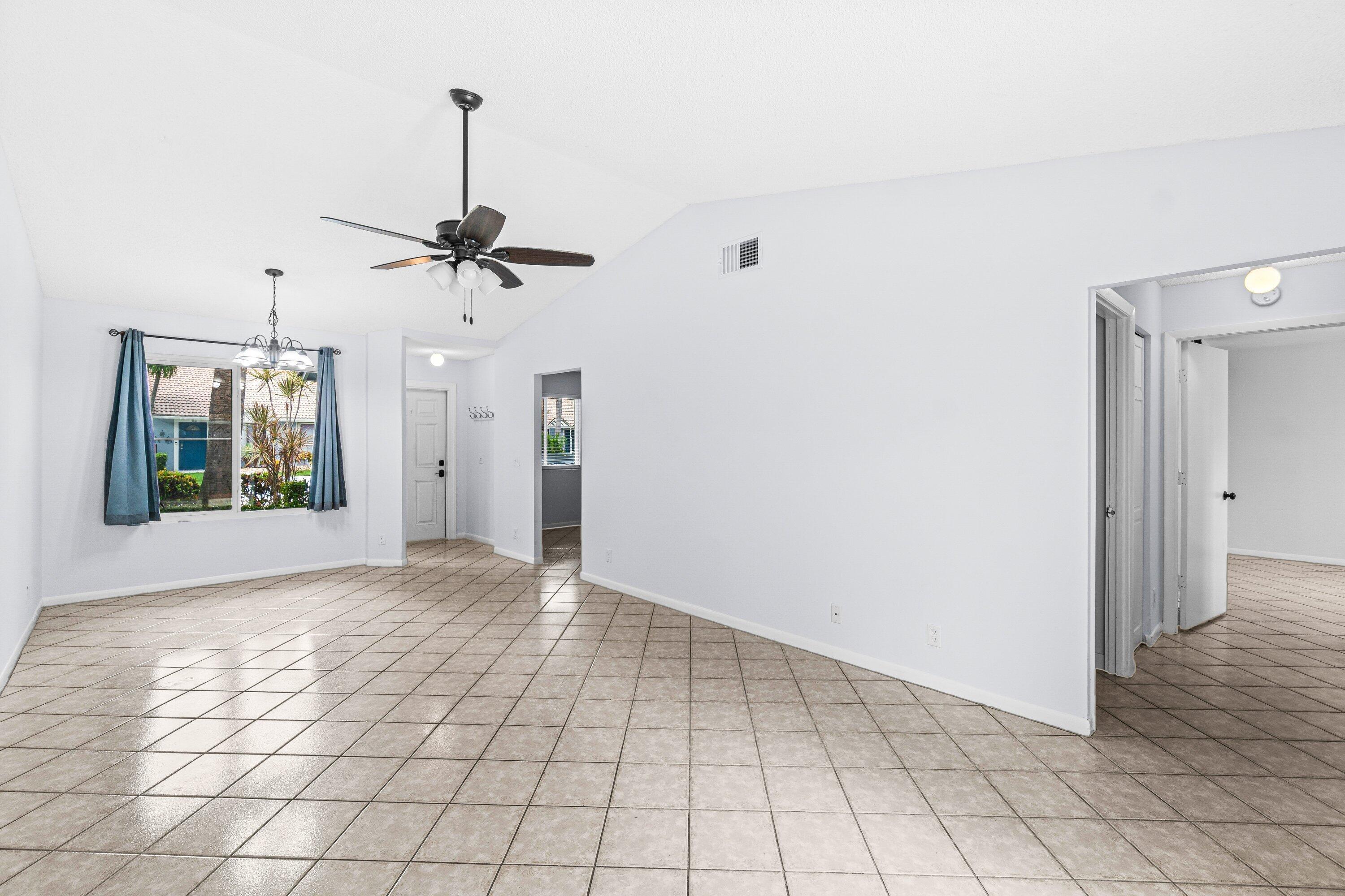 Welcome to 9913 Watermill Circle C, a spacious and well-maintained 2-bedroom, 2-bathroom villa with a 1-car garage, located in the highly sought-after community of Country Fair. This all-ages residence combines comfort, style, and convenience, offering the perfect opportunity for your next home.From the moment you arrive, you'll appreciate the private walk-up entry that leads into a bright, open living space. The home boasts tile flooring throughout, providing both durability and easy maintenance. The entire unit has been freshly painted in neutral Sherwin Williams tones, creating a warm and modern feel that's move-in ready.The eat-in kitchen provides plenty of room for casual dining, while the impact windows and sliding glass doors allow natural light to flow inand offer peace of mind with added storm protection. Step out onto your open patio, perfect for outdoor entertaining, morning coffee, or relaxing evenings. Both bedrooms are generously sized, with ample closet space enhanced by stylish barn-style closet doors. The guest bathroom features a brand-new vanity, while the primary suite offers comfort and privacy. Other updates include a new AC unit installed in 2023 with new disconnect, ensuring efficiency and reliability for years to come. Located in a central Boynton Beach location, this villa is just minutes from shopping, dining, entertainment, and major highways, including I-95, making commuting a breeze. Residents of Country Fair enjoy an array of resort-style amenities, including a sparkling swimming pool, tennis courts, pickleball, playground, and a welcoming community atmosphere. This villa is the perfect blend of modern updates, functional living space, and a fantastic location. Don't miss the chance to call 9913 Watermill Circle C your new home.