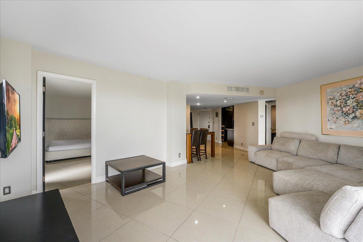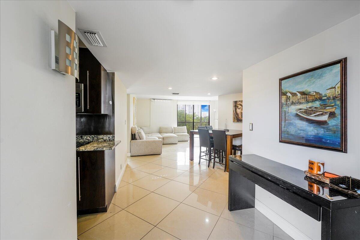 Remodeled 2-bedroom, 2-bathroom unit with a spacious wrap-around balcony, offering sweeping water and golf course views. The modern kitchen features high-end stainless steel appliances and sleek countertops. Enjoy elegant finishes throughout, an open-concept layout, and abundant natural light.