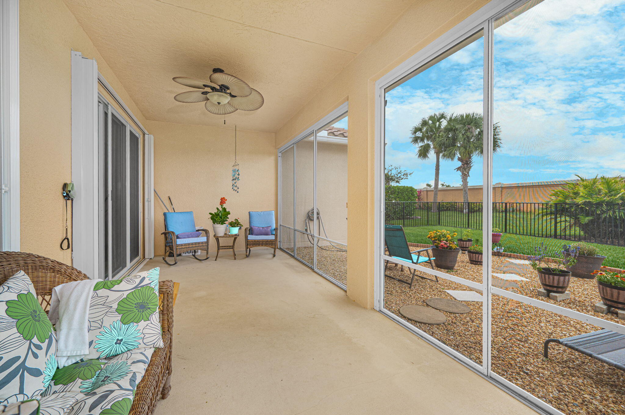 MOTIVATED SELLERS!!! $5,000 SELLER CONCESSION FOR BUYER'S CLOSING COSTS. Beautiful upgraded home in the heart of VITALIA at Tradition, one of Port St. Lucie's premier 55+ gated communities. Designed with comfort including 2 bedrooms, 2 bathrooms plus spacious den. The recently renovated chef-inspired kitchen is a standout featuring elegant quartz countertops, a granite sink, touchless faucet, and cabinetry with crown molding, under-cabinet lighting, and oversized pantry. Enjoy upgraded kitchen appliances, including a refrigerator, microwave, and a new 2025 gas stove with a 5-year extended warranty. The recently painted home boasts an open-concept layout with ceramic tile throughout, perfect for effortless living and entertaining.Retreat to the generous primary suite with two walk-in closets, dual vanities, and a large walk-in shower. Recent improvements include a 2023 A/C unit with Remy Halo for superior air quality, a 40-gallon Rheem water heater. A dryer and extra-large new washer with a 5-year extended warranty. Impact windows and door and complete accordion hurricane shutters. Step outside to your own slice of paradise with a screened lanai, covered patio, fenced, lighting, and a tranquil pebble garden retreat. VITALIA offers true resort-style living, with an amenity-rich lifestyle clubhouse Captiva Club 24,000 square-foot lakefront social clubhouse with an active lifestyle and amenities including a state-of-the-art fitness center, personal trainer, group fitness classes, ballroom with stage, computer room, library, social rooms, multi-purpose rooms, banquet and meeting room, Cyber Café, billiards and darts room, card room, five Har-Tru tennis courts, eight pickleball courts, two bocce courts, lakeside pavilion, two outdoor resort-style lap pool and outdoor terrace, grand event lawn, fire pit gathering area, golf putting green, full-time activities director, extensive list of resident clubs and community events. Wi-Fi throughout the Captiva Club and the pool area. Vitalia HOA (Monthly) includes amenities, fitness classes, full-time lifestyle director, 8 pickleball courts, 5 tennis courts, 2 community pools, 2 bocce courts, putting green, certified instructors lead fitness classes, billiards room, ballroom, manned gated community, lawn care, sprinkler repair, mulching and (annual) tree trimming 16+ feet tall, Vitalia community outside vendor events could incurred an additional fee. Tradition Master Association (Monthly) includes internet, cable, home security monitoring, dog park.