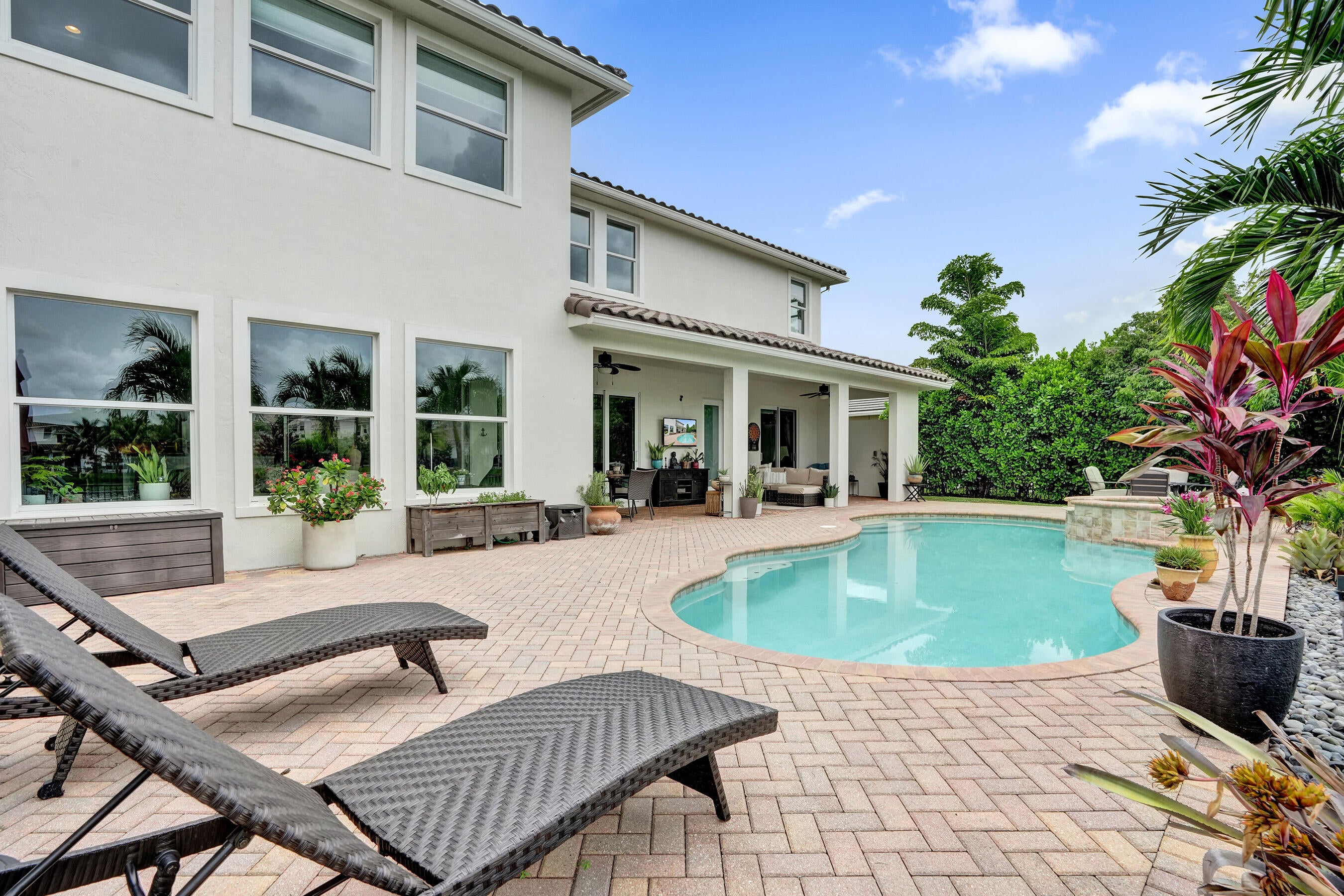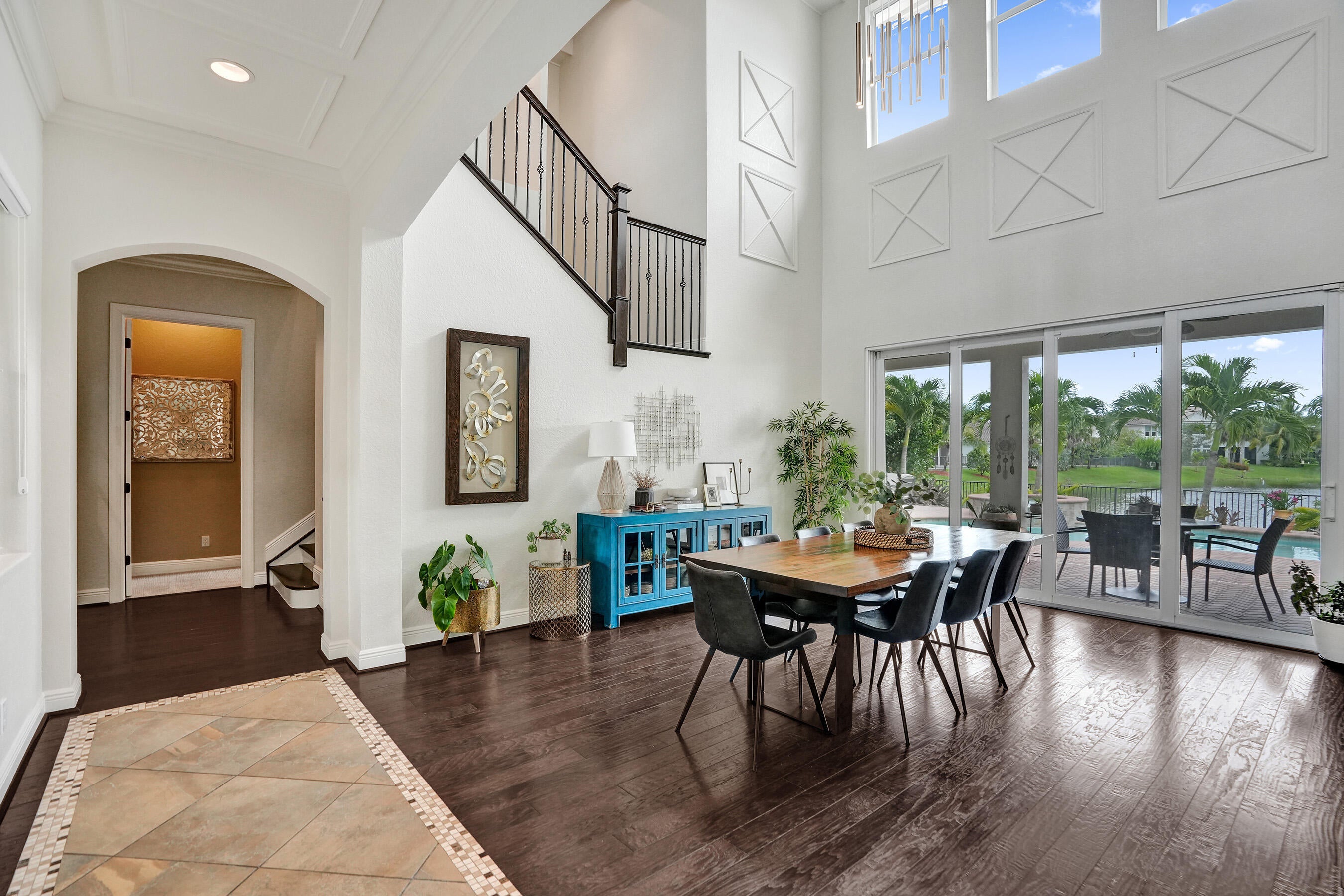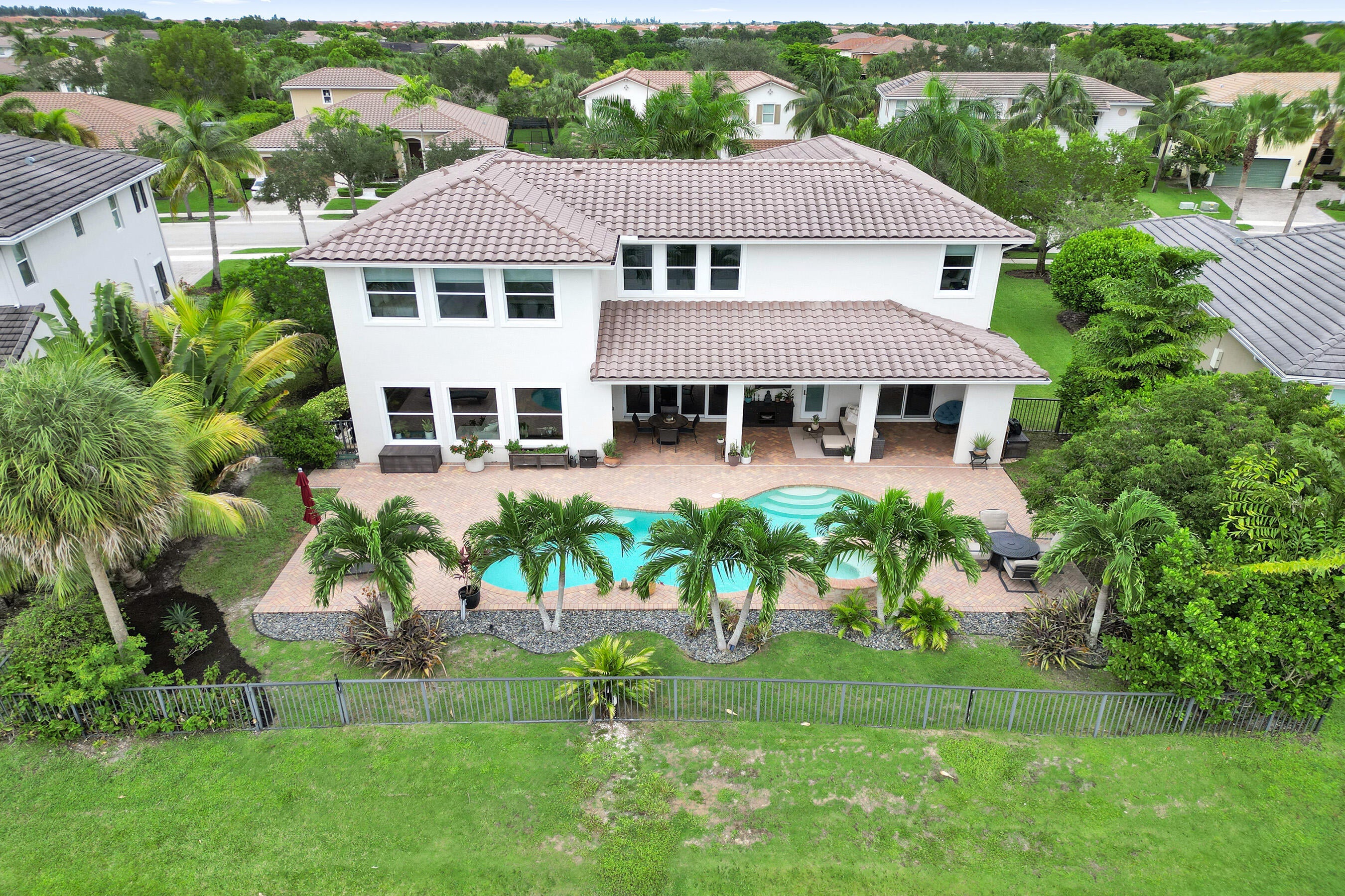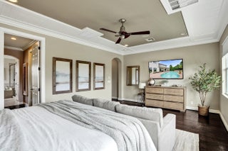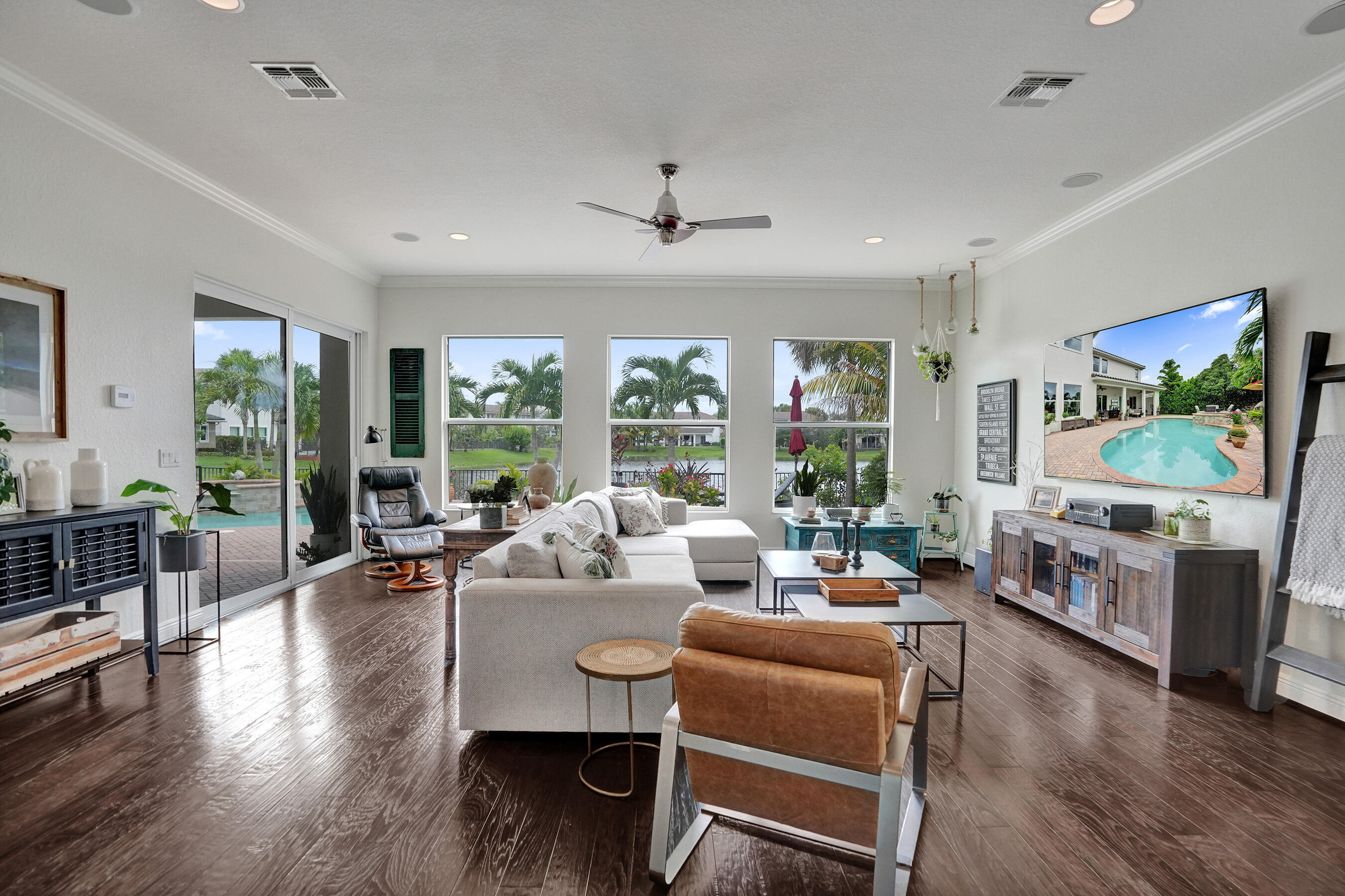 Step into elegance with this 5BR, 4.5BA former model home in the sought-after gated community of Heron Bay, offering 4,124 sq ft of bright, open living. A soaring 22-ft ceiling, wood floors, and lake views from most spaces set the tone. Entertain in the chef's kitchen with a natural gas stove, stainless appliances, and butler's pantry, or enjoy movie nights in the family room with built-in speakers. Outside, relax in the remodeled backyard with a heated saltwater pool/spa. The master retreat features lake views, double shower, and soaking tub. Enjoy peace of mind with impact windows/doors, smart home systems, 2 recently replaced ACs, fresh exterior paint and new garage door openers. With A+ schools and resort-style amenities, this home is move-in ready and ideal for family living.