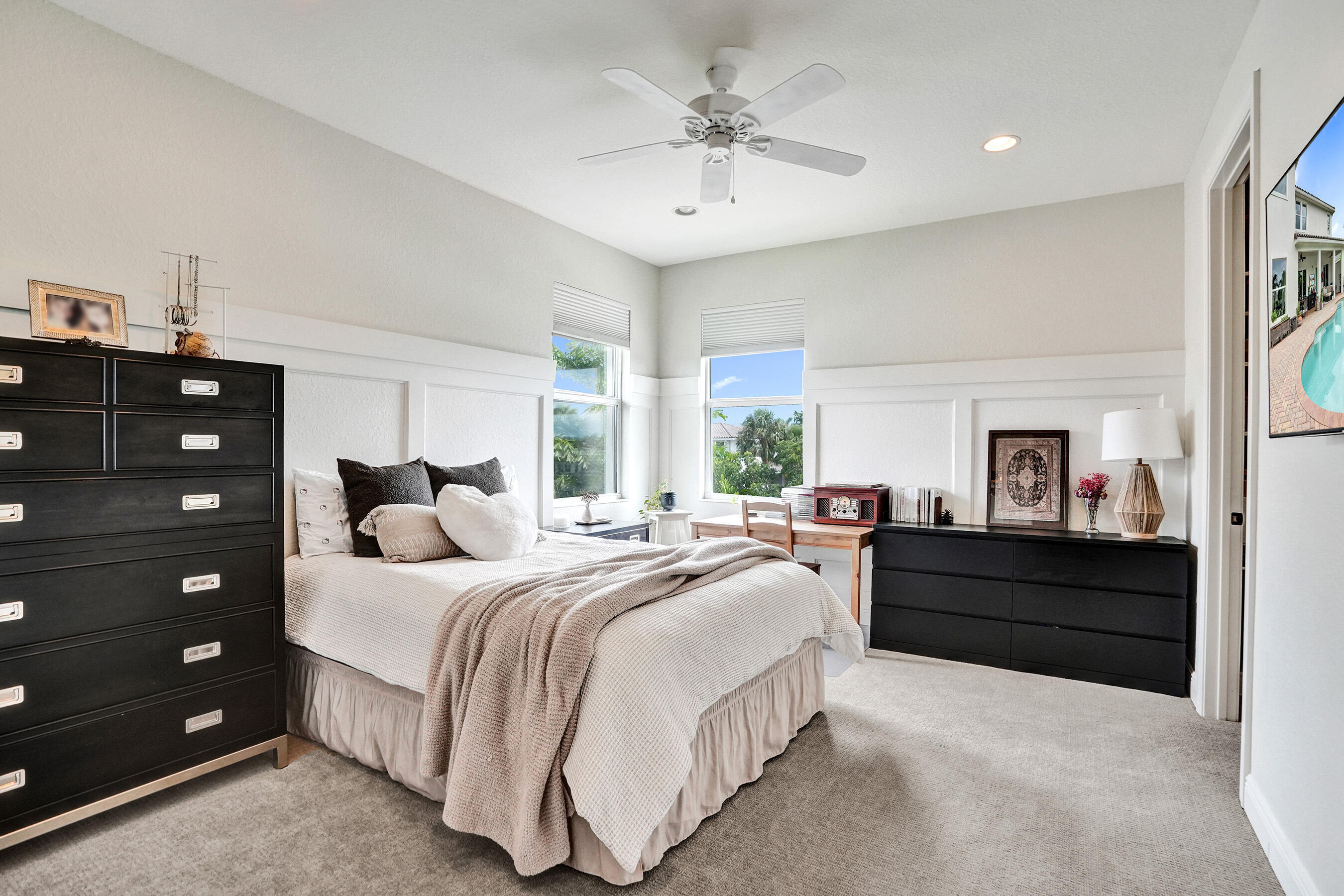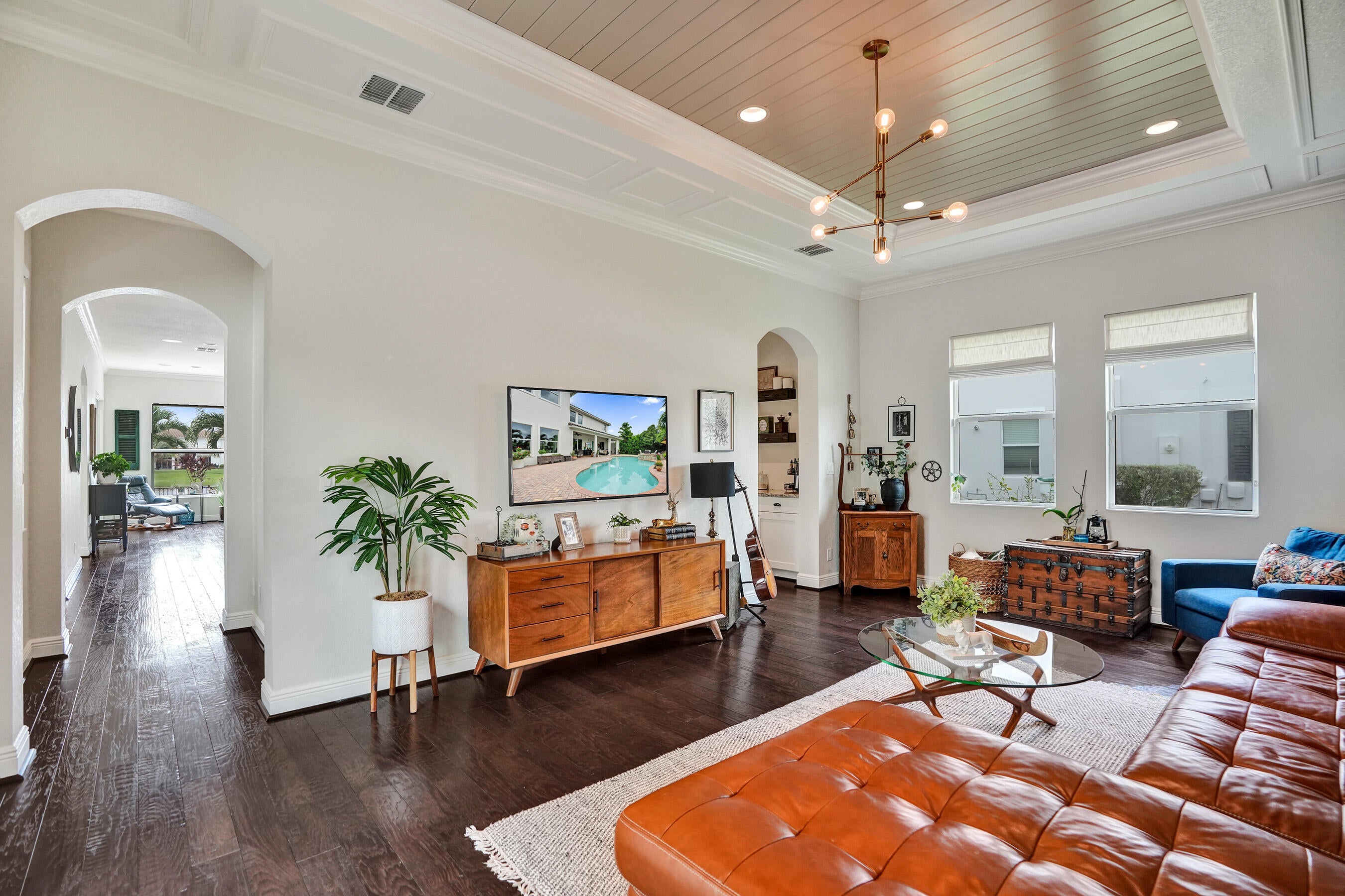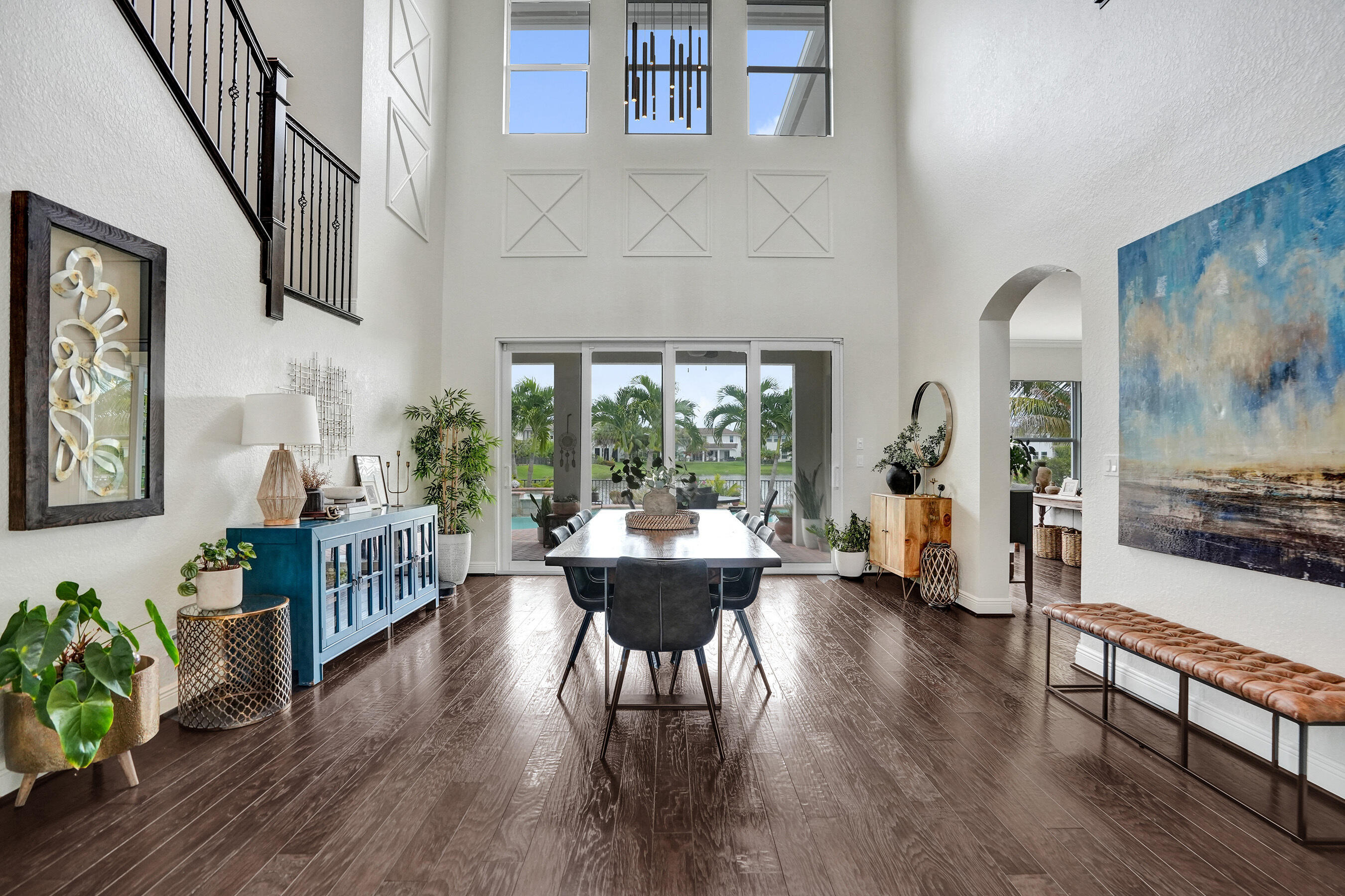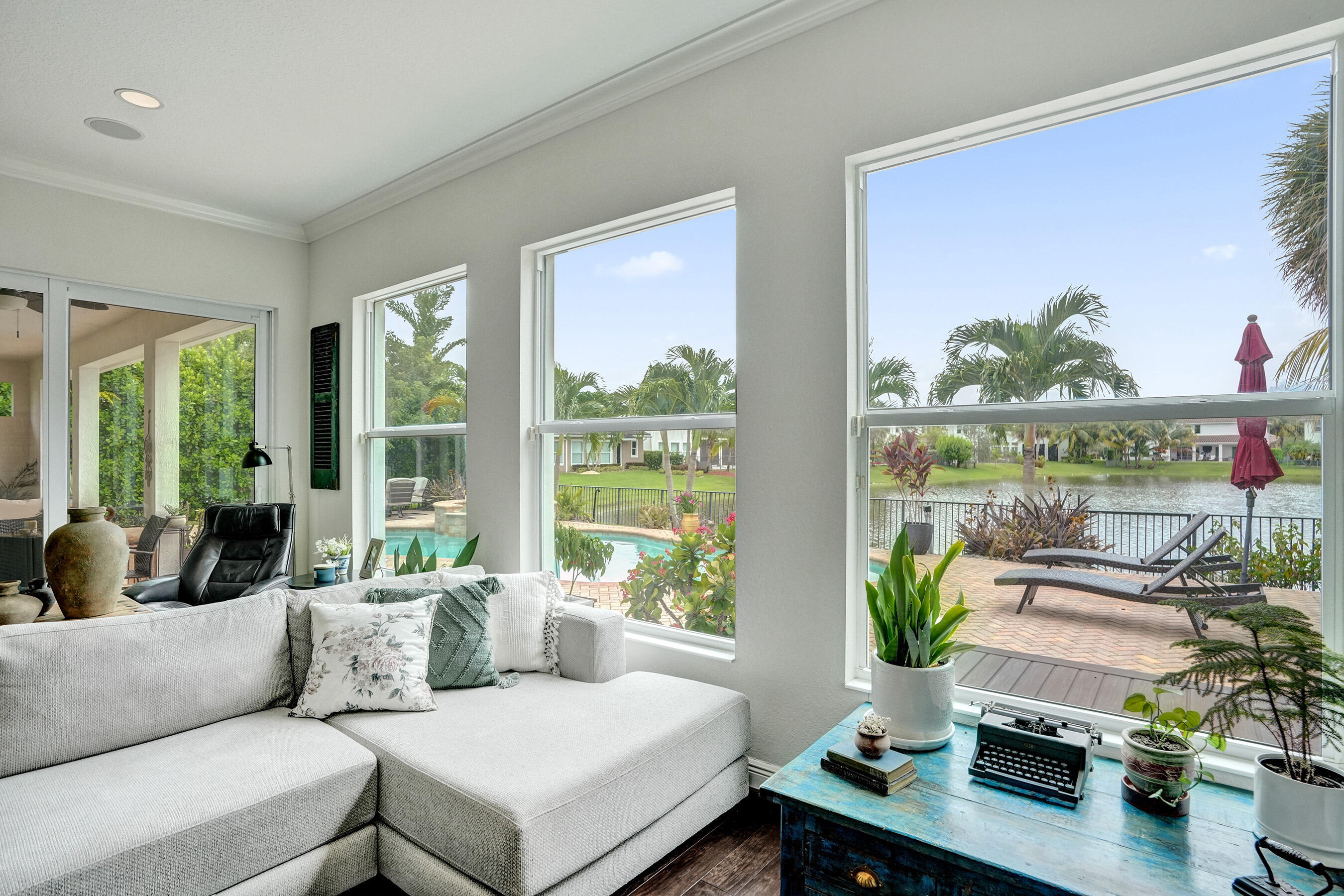 Step into elegance with this 5BR, 4.5BA former model home in the sought-after gated community of Heron Bay, offering 4,124 sq ft of bright, open living. A soaring 22-ft ceiling, wood floors, and lake views from most spaces set the tone. Entertain in the chef's kitchen with a natural gas stove, stainless appliances, and butler's pantry, or enjoy movie nights in the family room with built-in speakers. Outside, relax in the remodeled backyard with a heated saltwater pool/spa. The master retreat features lake views, double shower, and soaking tub. Enjoy peace of mind with impact windows/doors, smart home systems, 2 recently replaced ACs, fresh exterior paint and new garage door openers. With A+ schools and resort-style amenities, this home is move-in ready and ideal for family living.