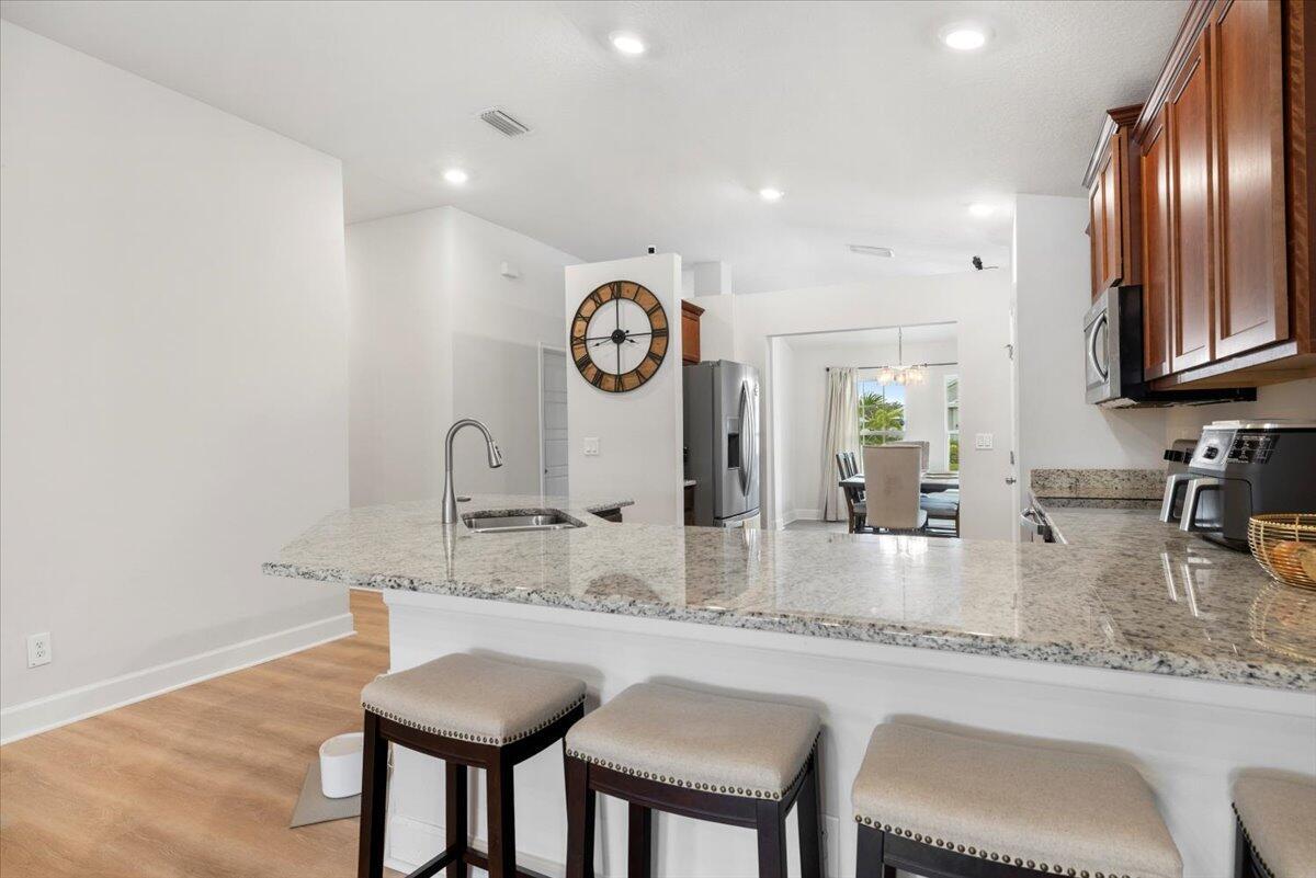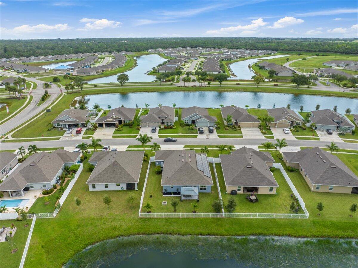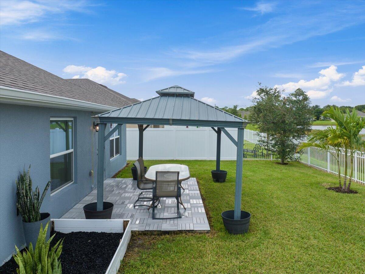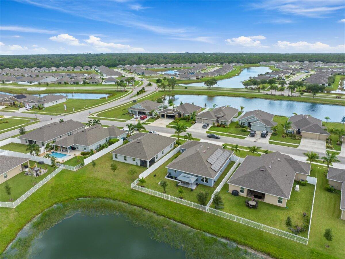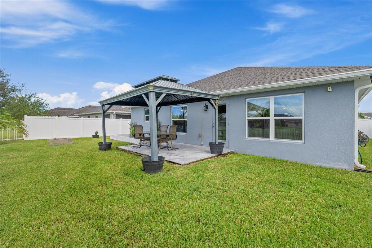 Welcome to Waterstone--a vibrant community where modern convenience meets serene waterfront living. This stunning 4-bedroom, 2-bathroom home with a massive 620sqft 3-car garage, built by Adams Homes in 2021, sits on a premium lot offering peaceful water views and thoughtful upgrades throughout. Step inside to an open floor plan adorned with LifeProof Dusk Cherry vinyl plank flooring and a gourmet kitchen featuring a peninsula-style granite countertop, ideal for casual dining or entertaining. The home's upgrades blend style and function--a hybrid heat-pump water heater (2022) for energy efficiency, solar panels by Windmar Solar financed through Sunnova, and a smart home system complete with Alexa-compatible switches, thermostat, and Blink outdoor cameras for peace of mind.The owner has added numerous touches to elevate comfort and style: a backyard pergola, Christmas palms (front and back), fresh landscaping with pavers and rock accents, and a fully fenced yard with three gated access points installed in 2022. Even the smallest details were consideredgutters, a Simplisafe alarm system, and labeled hurricane shutters for easy installation are all in place. Enjoy modern comforts like the fiberglass shower in the primary bath, garden tub in the guest bath, and top-tier appliances including a Whirlpool French door refrigerator and Samsung washer/dryer set (all 2021). Additional features include an Acura EV charger (2025), trimmed oak trees, and low HOA fees of only $12/month under Atmos Living Management Group. Every inch of this home was designed for comfort, style, and practicalityoffering a turnkey lifestyle in one of the area's most desirable communities. Perfectly situated between Vero Beach and downtown Fort Pierce, you'll enjoy quick access to beautiful beaches and the fun-fishing inlet/jetty! Plus, you're just minutes from both I-95 and US-1, making commuting a breezewhether it's for work or a weekend getaway.