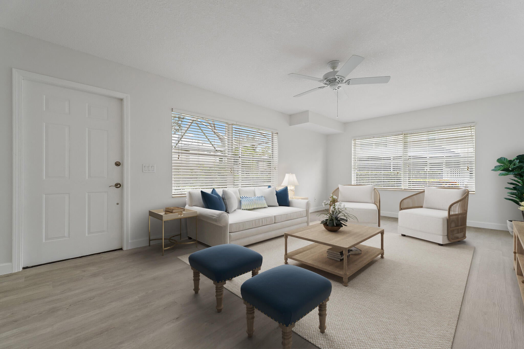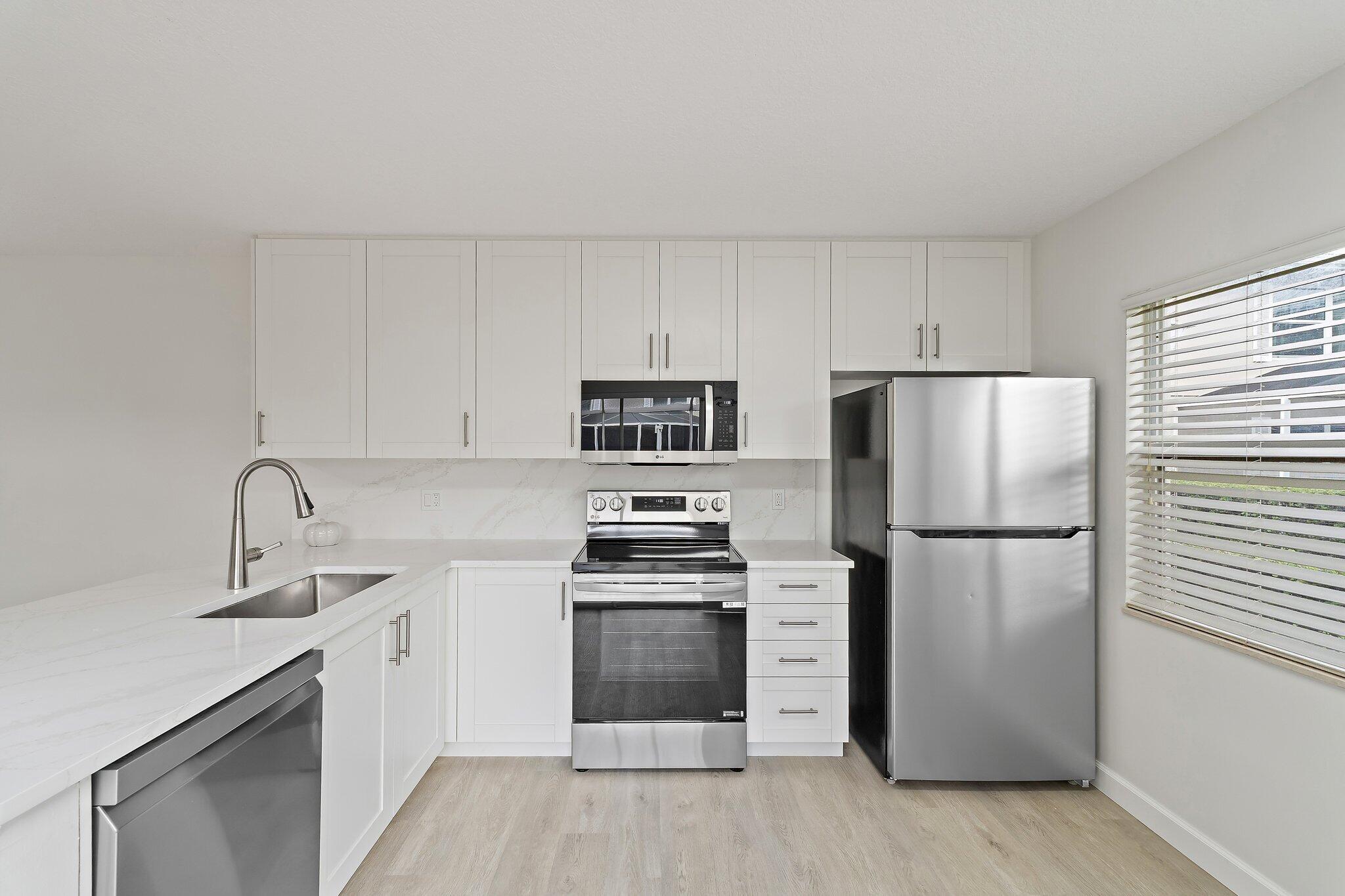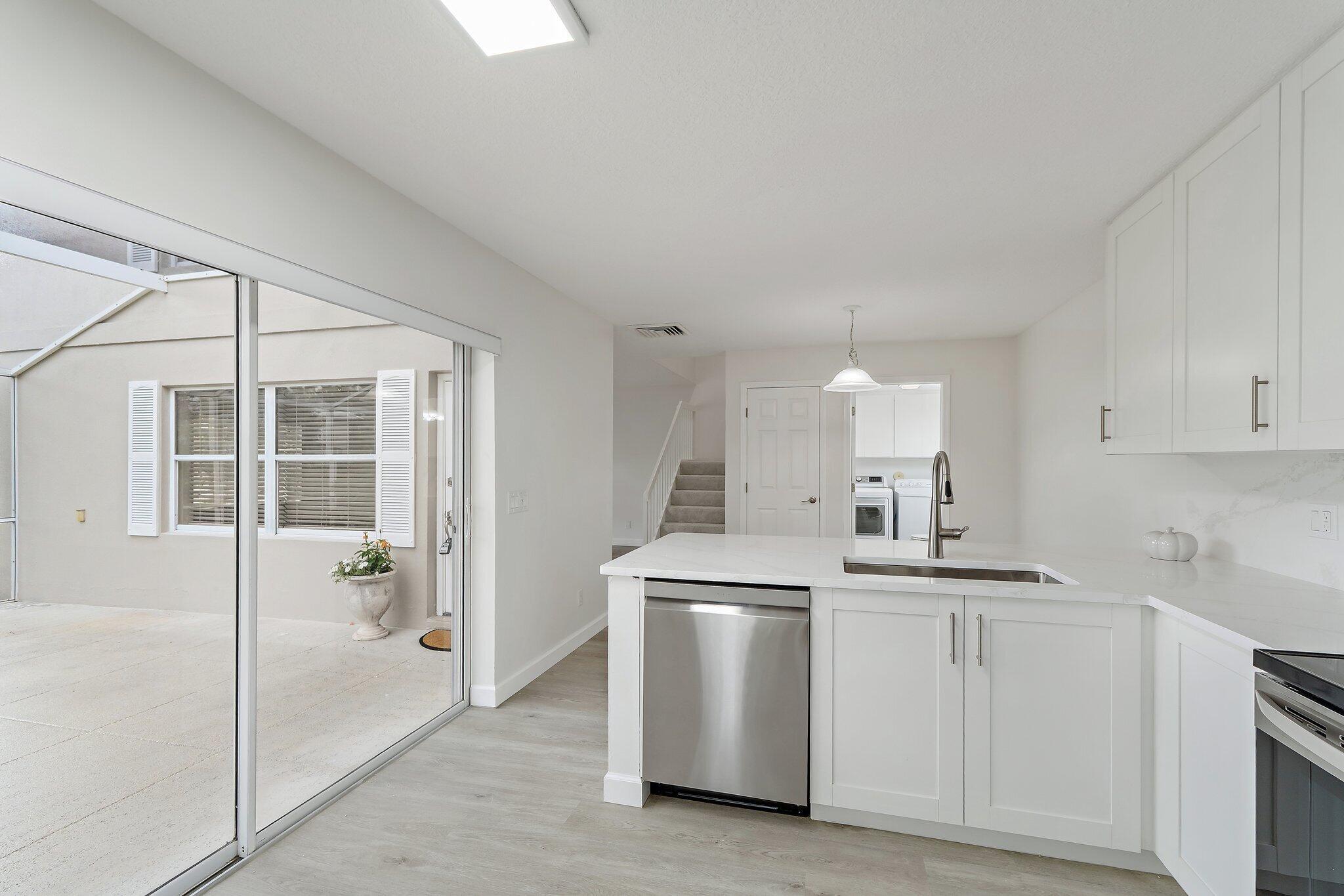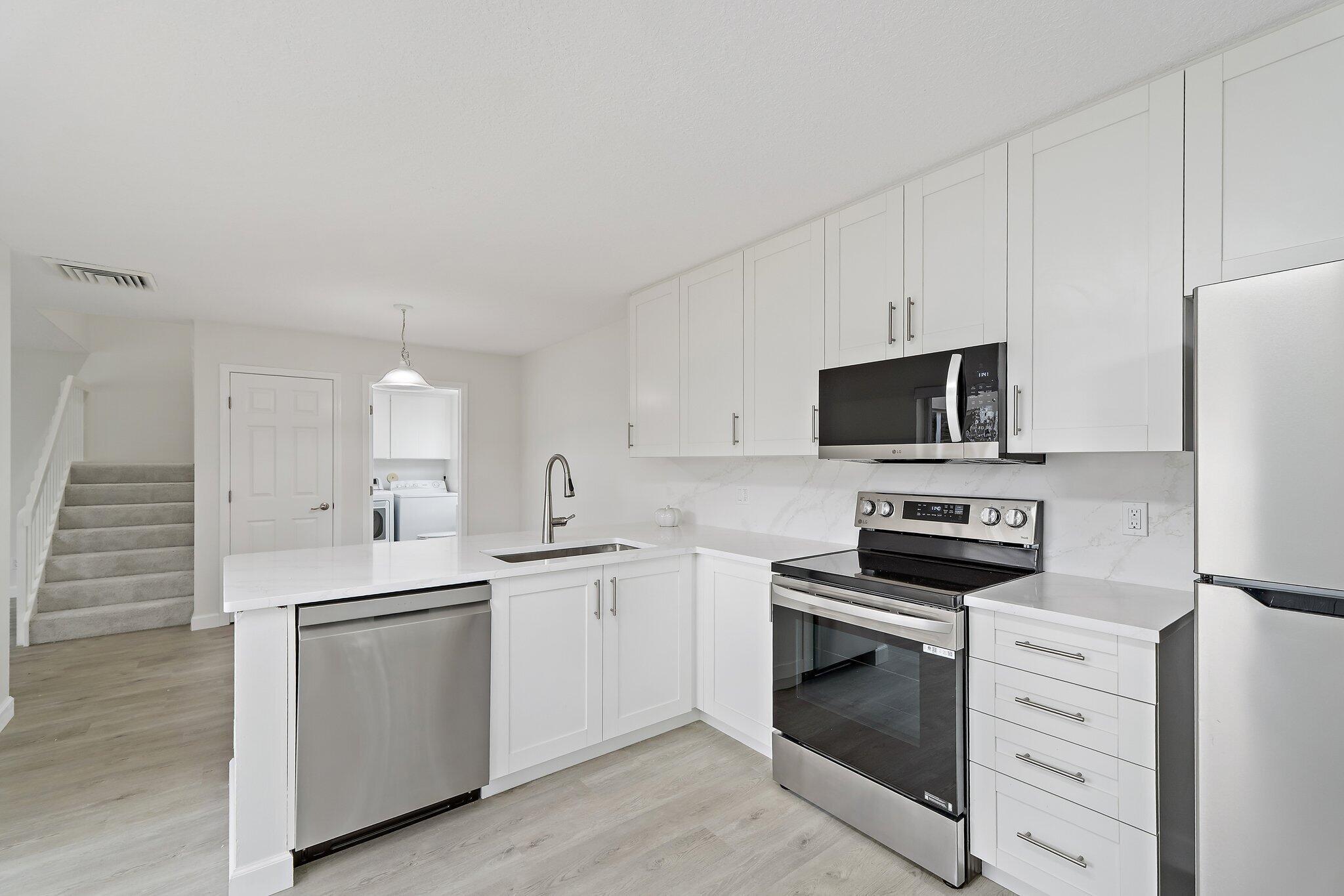 ACCEPTING BACKUP OFFERS. Beautifully renovated 2-bed, 2.5-bath townhome in The Meadows! This light & bright residence has been completely renovated with a modern, neutral color palette. The kitchen shines with quartz countertops, upgraded cabinetry, and new stainless steel appliances. The open living & dining area flows effortlessly, featuring luxury vinyl floors downstairs and brand-new carpet upstairs. Each bedroom offers a private ensuite designed for comfort and functionality, with both bathrooms newly tiled. Enjoy the screened lanai courtyard, which faces a green space instead of the parking lot. It's perfect for relaxing or entertaining. Freshly painted inside & out, this home also features a significant upgrade: all polybutylene plumbing has been replaced to current code.Conveniently located near shopping, dining, top-rated schools, and highways. With its modern finishes and move-in-ready condition, this home is ideal for year-round living or a seasonal getaway.