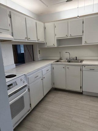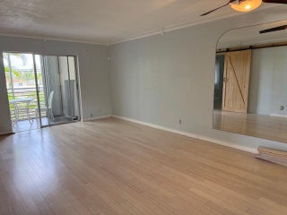 Vacant, beautiful end unit with very private screened balcony, hurricane shutters and tiled! Bamboo hardwood floors throughout the unit. This unit has barn doors to close the 2nd bedroom, which comes with own half bath and walk in closet. This unit has extra windows, even both bathrooms have windows. Building has elevator, this unit has also easy access with stairs to use. This is well maintained 55+ community. This building 25 is located close to satellite pool, but can use the larger pool area located next to amenities and management office.