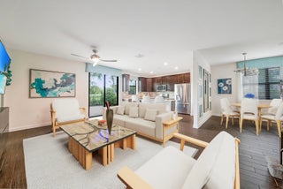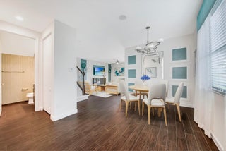 Experience modern luxury and effortless style in this 4-bedroom, 3.5-bath end-unit townhouse--a former builder's model loaded with designer upgrades. From impact windows and wood-look tile to elegant iron railings and custom finishes, every detail has been elevated. Entertain with ease in the chef-inspired kitchen featuring granite countertops, full backsplash, rich wood cabinetry, stainless steel appliances, and a convenient breakfast bar. Upstairs, unwind in the primary suite retreat with a tray ceiling, spacious walk-in closet, and spa-style bath with dual vanities, soaking tub, and walk-in shower. Step outside to your private fenced yard with tranquil canal views--the perfect backdrop for al fresco dining or evening cocktails.Enjoy year-round comfort with a new 2023 A/C system with UV air purification. Located in the sought-after Cambria Parc, residents enjoy resort-style amenities, including a sparkling pool and children's play area. Just minutes from top-rated schools, shopping, dining, entertainment, major highways, and vibrant Atlantic Avenue, this home truly has it all.