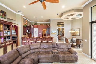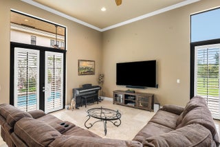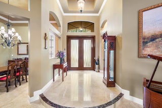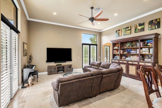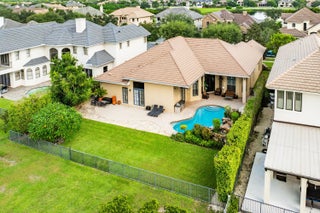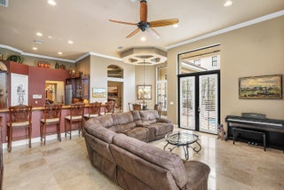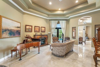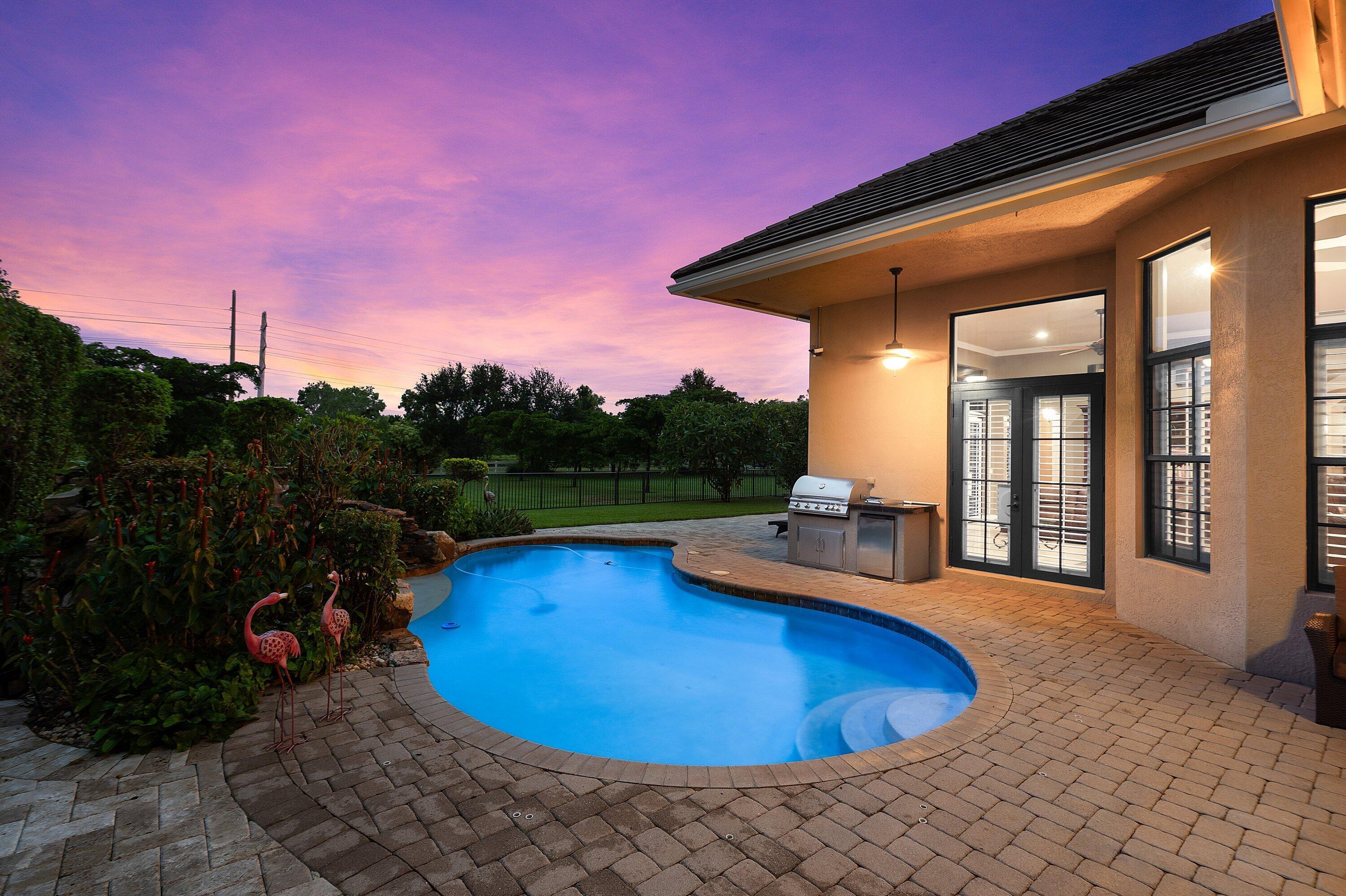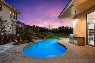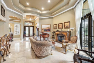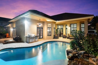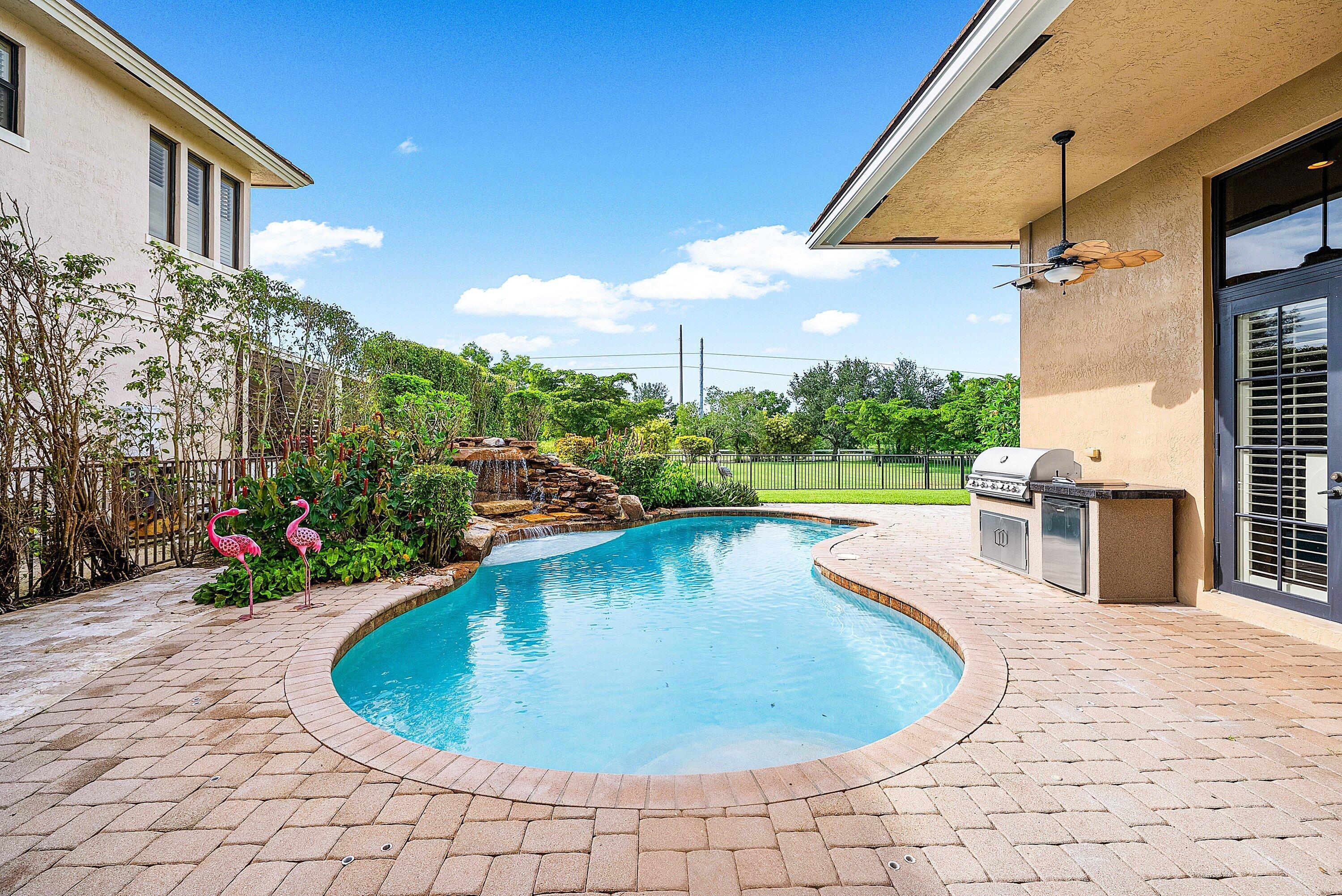 Step into elegance with soaring coffered ceilings and travertine marble floors that flow throughout the main living areas. French double doors open to a private outdoor oasis featuring a custom pool, tranquil waterfall framed by lush landscaping, and a spacious patio with a full summer kitchen--perfect for entertaining or unwinding in peace. Set on a generous half-acre in the Prestigious Community of Equus, this home offers both privacy and an incredible backyard!.Inside, you'll find 5 bedrooms (one currently designed as a media room) and a large office. The owner's suite overlooks the pool and waterfall, with two walk-in closets and a spa-inspired bath complete with dual vanities, jetted tub, bidet, and an expansive travertine shower.The gourmet kitchen includes stainless steel natural gas appliances, a walk-in pantry, butler's pantry with wine refrigerator, and a custom walnut bar. Additional features include, Impact Windows, 48kW Natural Gas Generator, plantation shutters, two AC units, a 2015 roof, updated pool equipment, tankless and traditional water heaters, stainless steel microwave along with LG washer and dryer. Equus has a 7,000 Clubhouse with Athletic Center, 2 Har-Tru Tennis Courts, Pickleball (Coming Soon), Tot Lot, Billiard Room, Party Room, Swimming Pool, Hot Tub, Fire Pit & BBQ Grill. The HOA provides premium Comcast services with internet, cable, phone, HBO, HBOMax, and Showtime, along with ADT security, clubhouse amenities, and 24-hour gated securityall in a community of just 280 homes. A Must See!!!!