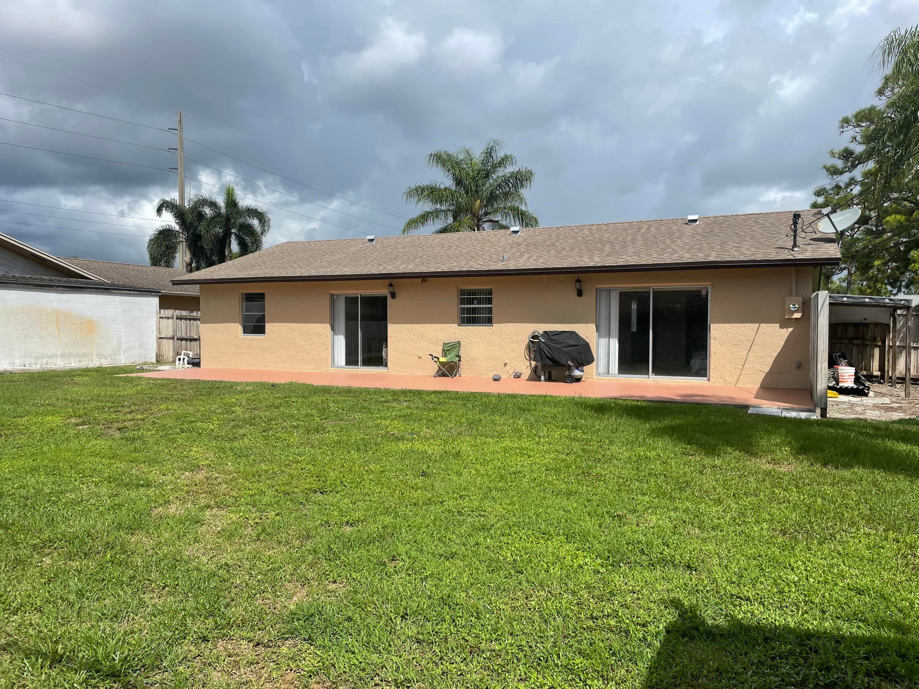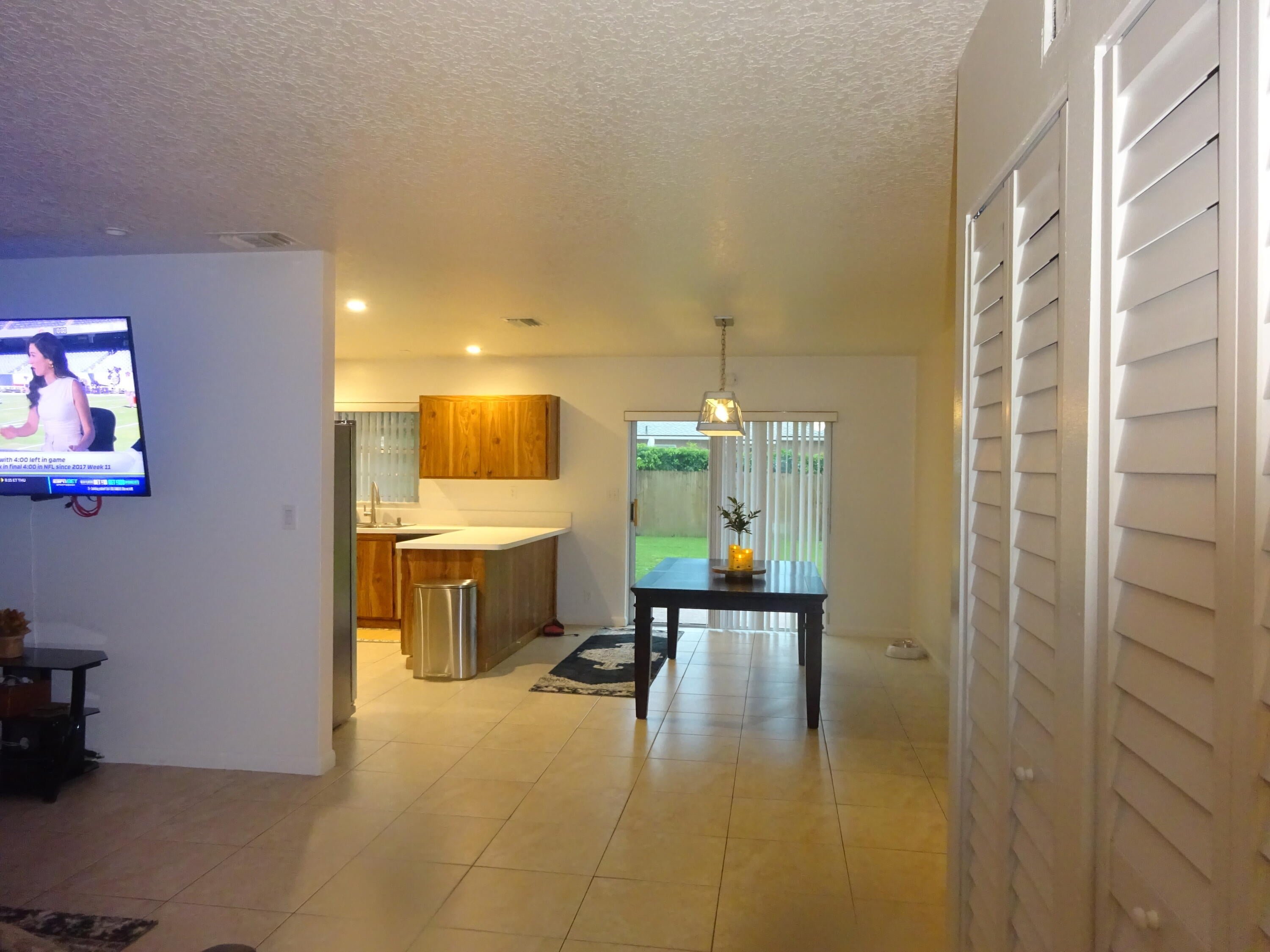 Check out This 3 bedroom 2 bath, single family home with a large, fenced in backyard with room for an oasis. CBS construction on almost a quarter acre and fully fenced for your fur babies. Very large primary bedroom with a private bath, sliding doors to the large backyard and a great split floor plan. Open kitchen and tile in main areas of home. freshly painted interior and new vinyl flooring in primary bedroom and additional bedroom. New lighting in both bathrooms. New ceiling fans in bedrooms and new chandelier in dining area. Back patio freshly painted and ready for your patio furniture. Awesome, quiet street with very light traffic close to everything. . make it your piece of paradise. AC replaced in September 2022 and roof re done in 2020.