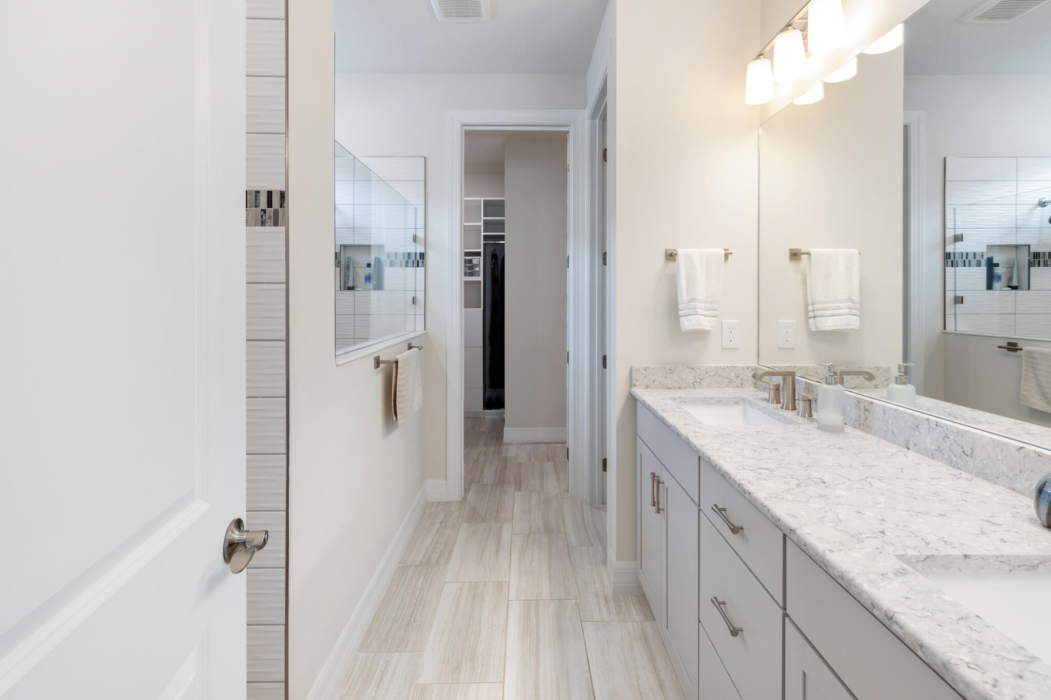 NEW TO MARKET! Stunning 3 bedroom + den, 3 bath home with 3-car garage in the sought-after gated community of Heron Preserve at Tradition. Enjoy serene lake views from the full-view screened lanai. This home features stylish wood look tile flooring throughout, impact windows & doors, pocketing sliders that disappear when opened and a gourmet kitchen with high end KitchenAid appliances, oversized walk-in pantry, and elegant design elements. Neutral tones and high-end finishes. The primary suite offers custom closet systems for exceptional storage and style. The versatile den has double doors for privacy, while the custom built drop zone by the laundry adds excellent storage. The upscale window treatments complete the polished look.Heron Preserve offers resort-style living with a pool, clubhouse, and green spaces in a beautiful lakefront setting. Conveniently located in the heart of Tradition, where you will find walking and biking trails connecting you to parks and lakes. Enjoy year-round events, shops, and dining just minutes away in Tradition Square. There is a Cleveland Clinic Tradition Hospital nearby for peace of mind and easy access to I-95 and the Turnpike for travel north or south. Living here means being part of a vibrant community where neighbors gather for concerts on the green, farmers' markets, and holiday parades. Whether you're looking for a full-time residence or seasonal getaway, this home offers the best of Tradition's lifestyle with the privacy of Heron Preserve. Don't miss your chance to own in the heart of Tradition, where convenience meets community and every day feels like a resort vacation.