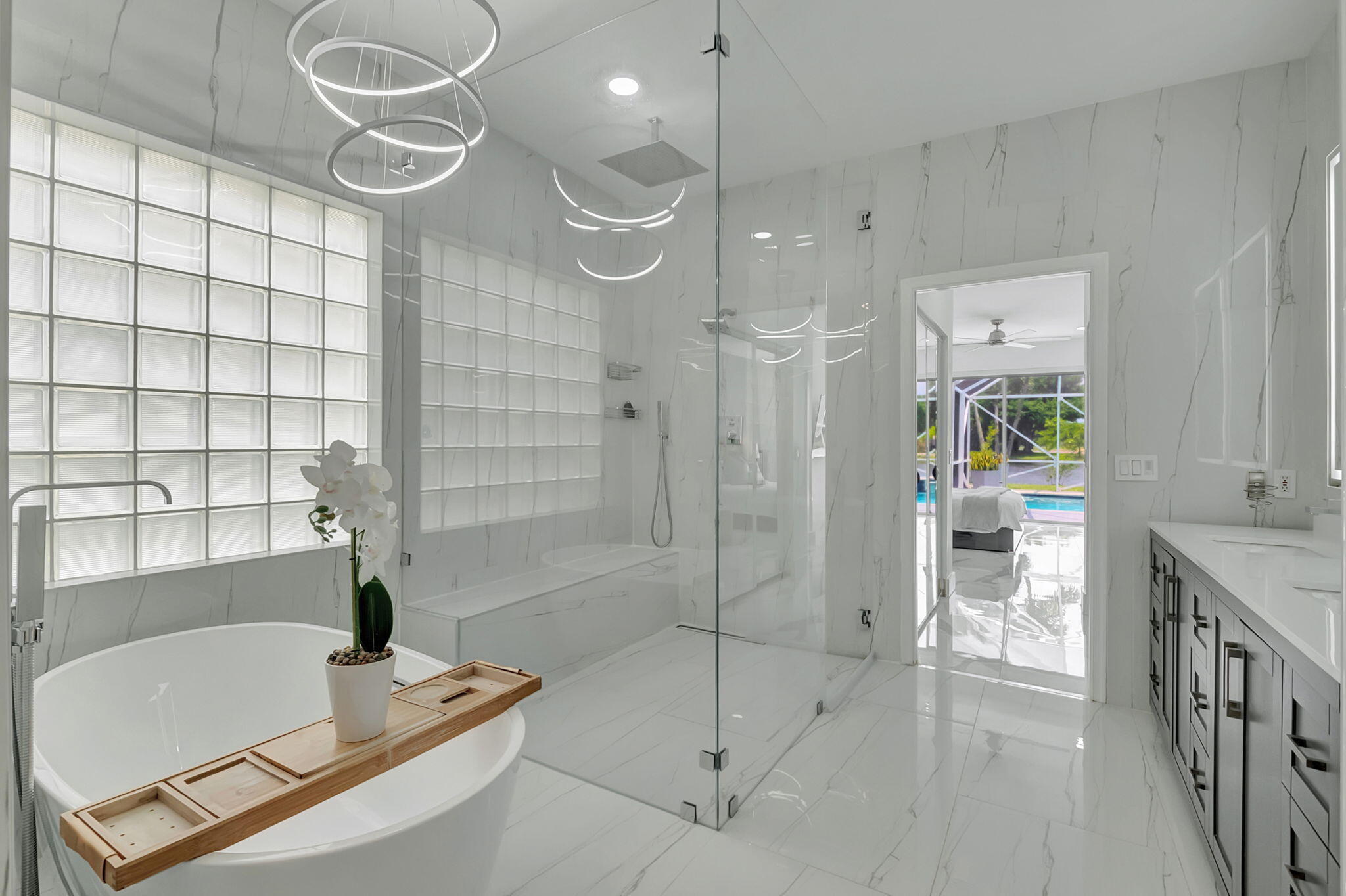 Absolutely stunning pool home on a lake with a OVERSIZED PIE LOT! Welcome to your private resort style home in one of South Florida's most sought-after, A-rated school zones! From the moment you enter, soaring ceilings, stunning water and pool views. This fully renovated home features a designer kitchen with floor-to-ceiling cabinetry, spa-inspired baths, oversized porcelain tile. With proven rental income of over $6,700/month, it offers exceptional flexibility for owners or investors! The house is currently tenant occupied. The community amenities are unmatched: fitness center, resort-style pool, kids' pool, BBQ pavilion, playground, turfed soccer field, tennis, pickleball, and basketball courts. A lifestyle of luxury, convenience, and opportunity awaits!
