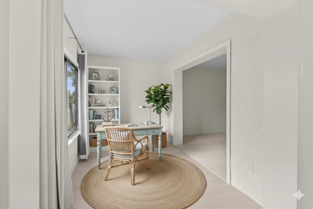 Enjoy peaceful views of the 14th fairway at Miles Grant Golf Course right from your living room or sun-filled bonus room. This home has been thoughtfully updated where it matters most: beautiful new tile flooring in the living areas and kitchen, brand-new appliances (including washer and dryer), and fresh cabinetry with quartz countertops in both kitchen and baths. The air conditioner was replaced in 2017, and you'll appreciate the ample storage with multiple closets throughout. A bonus room off the primary bedroom makes an ideal study, hobby space, or quiet reading nook.For peace of mind, every window has hurricane protection with impact glass, many also have accordion shutters in addition.Living at Miles Grant Country Club means more than just a home--it's a lifestyle. See More.A required social membership ensures access to an active community offering golf, pickleball, tennis, swimming, monthly social activities and more. You'll also enjoy the club's dining room and tavern, known for excellent means, with only a modest $350 annual dining minimum. This is an ideal opportunity to embrace a worry-free, active, and welcoming community