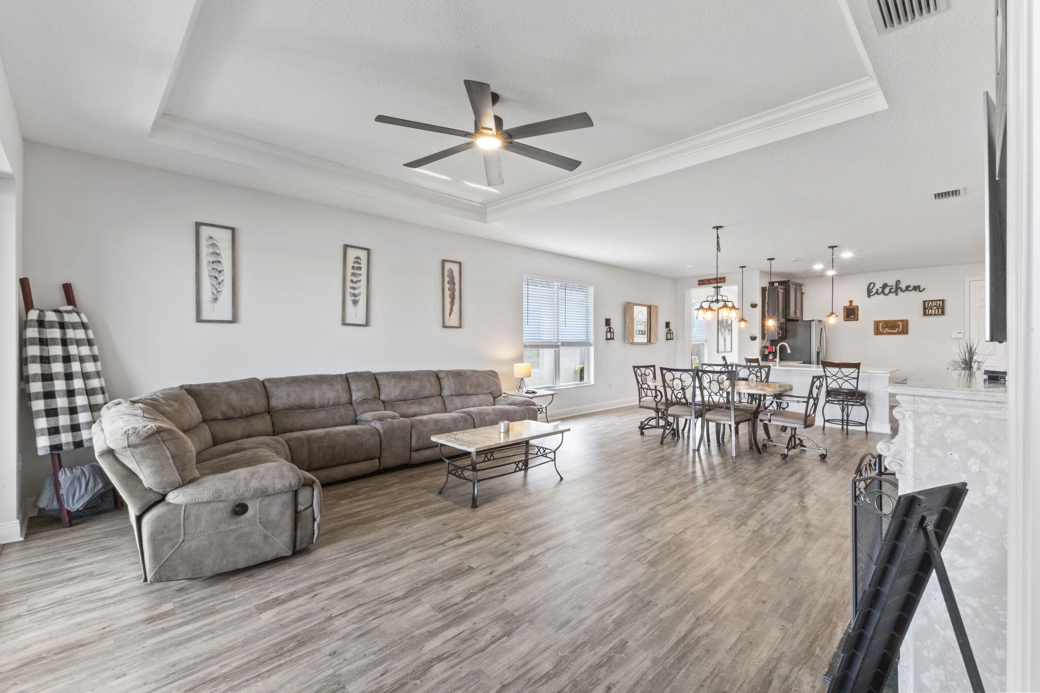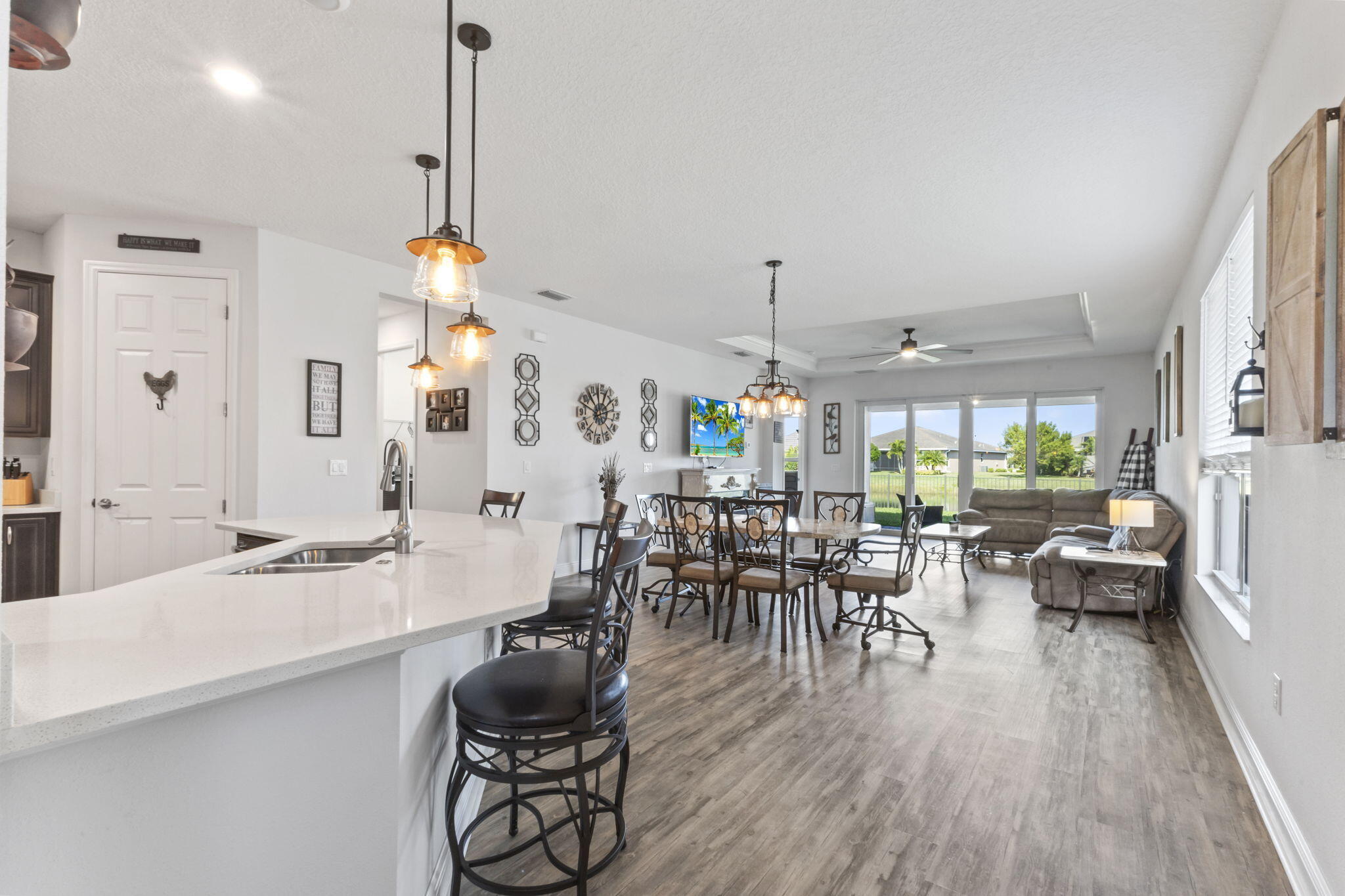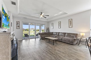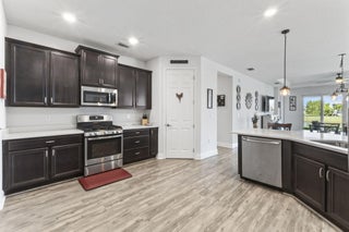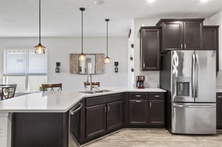 Discover the perfect 55+ retreat in this stunning Caladesi model, offering 2 bedrooms + den and an inviting open-concept design. The spacious kitchen features a large island, upgraded appliances, a gas stove, granite countertops, and elegant pendant lighting. Relax on your private patio with breathtaking lake views, perfect for enjoying your morning coffee as the sun rises. The primary suite offers serene lake views, an upgraded ensuite with upgraded glass shower, and a spacious walk-in closet. Located near top shopping, dining, healthcare, and outdoor recreation, Vitalia provides easy access to everything you need. Enjoy resort-style amenities, including a luxurious pool, pickleball & tennis courts, and a stunning clubhouse with fitness facilities and more.