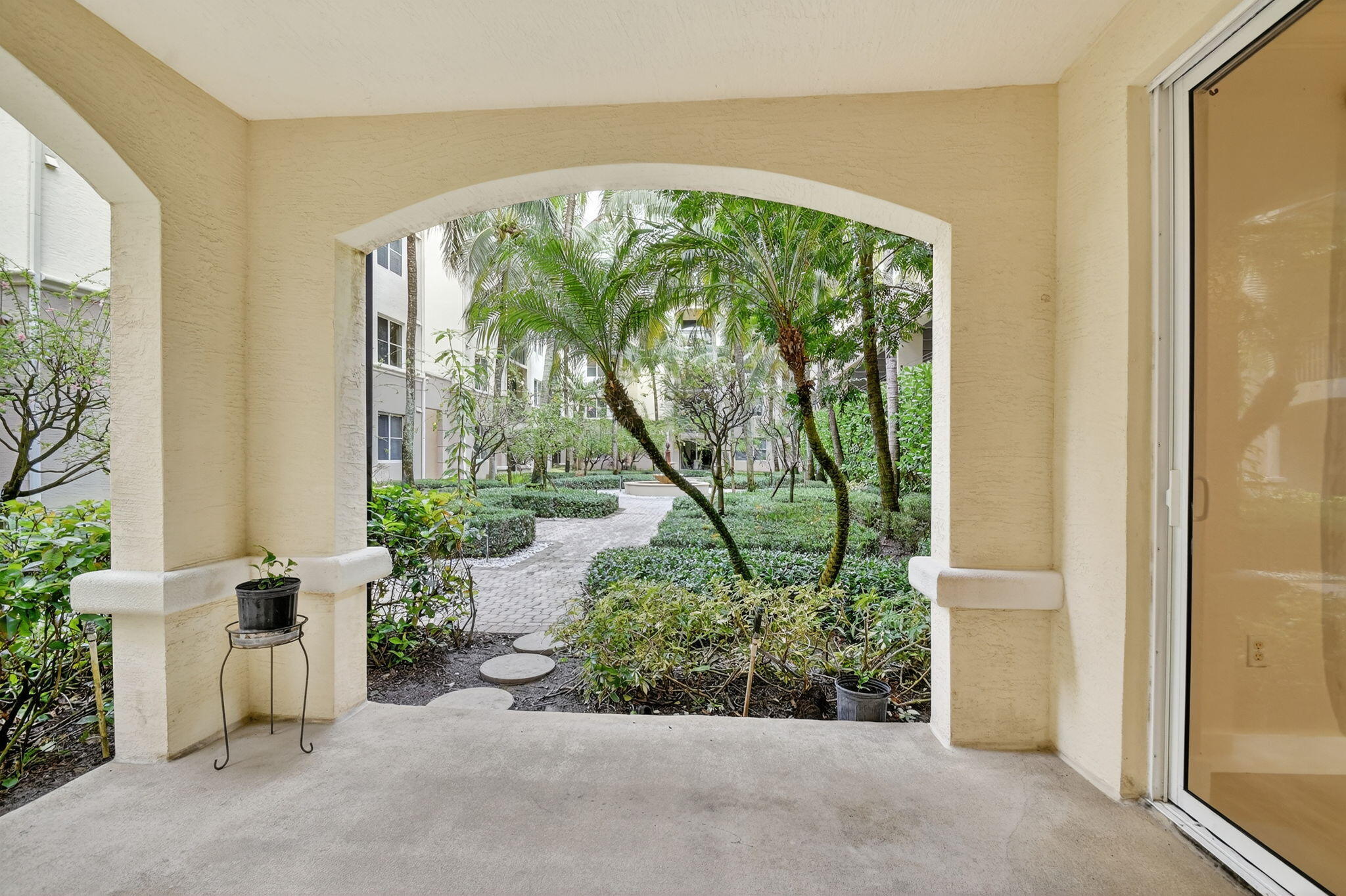 Welcome to this beautifully updated first-floor 1 bedroom, 1 bathroom condo in San Raphael Condominium, featuring brand-new flooring, fresh paint, and a new refrigerator, oven, and microwave. The unit offers the convenience of ground-floor living with an open porch overlooking the garden and fountain, plus one assigned parking space and secure access through a pedestrian gate. Residents enjoy great amenities including a pool, fitness center, and clubhouse, and the monthly HOA includes water, cable, and internet. Applicants must have a minimum 725 credit score, no pickup trucks are allowed, and only one car is permitted for this unit.