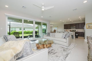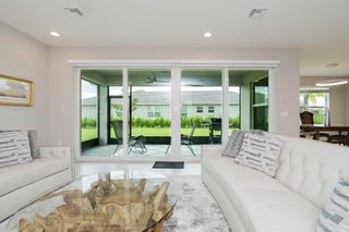 Beautiful ''Sierra'' model in Valencia Grove at Riverland! This 3 bed, 2 bath home includes a flex room perfect for a den or office. Situated on a corner lot with extra green space and a partial lake view. Located in a premier 55+ active community offering resort-style amenities: onsite cafe/bar, resort pool, card rooms, sports lounge, grand social hall, and an incredible sports center with tennis, pickleball, bocce, and a state-of-the-art arts & culture center. Interior features include dark wood cabinets, granite countertops, 18'' tile throughout, and all impact windows and doors. The primary suite offers dual vanities, large walk-in closet, and walk-in shower. Close to dining, shopping, golf, I-95, and Cleveland Clinic.