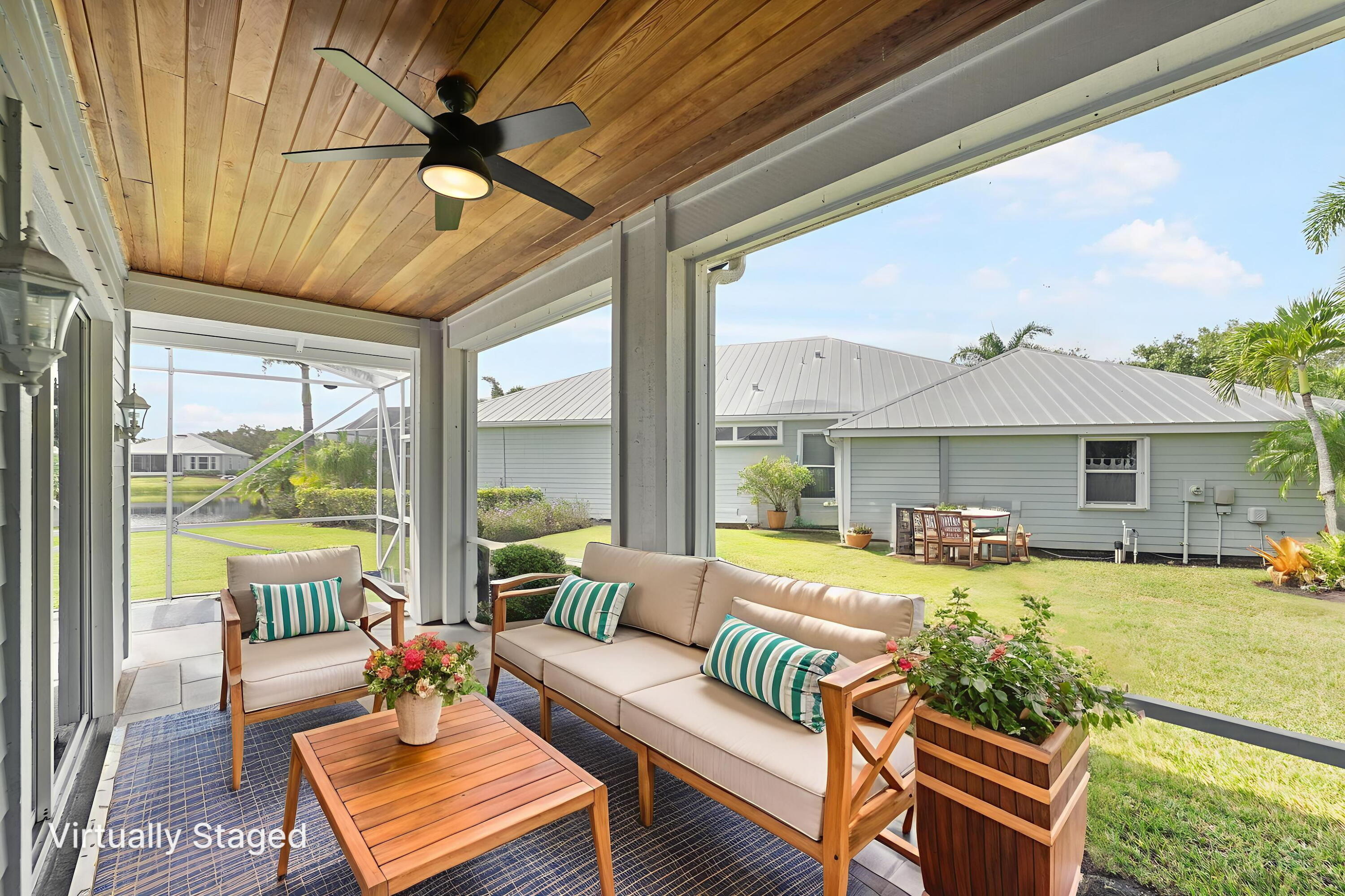 Welcome to this charming Key West-style lakefront home, where timeless design meets modern updates. Situated in the highly desirable River Place community of Port St. Lucie, this residence offers both comfort and convenience in a serene setting. Inside, the spacious open-concept kitchen flows seamlessly into the family room, ensuring you stay connected while entertaining or spending time with family. Also included in this 1499 sq ft home you will find an open concept separate living room and dining room as you enter the home from the front entryway. The back wrap-around screened porch with plank wood ceilings provides a peaceful spot to enjoy lake views and fresh breezes year-round. The flexible third bedroom, enhanced by glass French doors, can serve as a guest room, home office,or creative space. The primary suite retreat features sliding glass doors that open directly to the screened porch, framing tranquil water views. Durable tile flooring throughout adds to the home's low-maintenance appeal. Recent Updates & Features include metal Roof | 2024 AC fan motor | 2024 Washer & Dryer, Hurricane panels for storm protection, Irrigation/well system and surge protector, Paver driveway for added curb appeal, Classic fiber-cement siding with a durable metal roof. River Place is celebrated for its beautifully maintained green spaces and resort-style amenities, including Clubhouse with pool and private boat ramp to the scenic St. Lucie River, Basketball, baseball, and soccer fields plus a children's playground. Low HOA fees covering lawn care, exterior pest control, and tree trimming. Enjoy the perfect balance of privacy and accessibilityjust five minutes to Publix, shopping centers, and a wide variety of local dining options. This home is more than just a place to live, it's a lifestyle. While qualified buyers may use any lender of their choice, a qualified buyers for this property may be eligible for 0% down FHA financing when using James Cannata (NMLS#328552) at Cross Country Mortgage (NMLS#1716901). Terms and conditions apply. Buyer is not obligated to use Seller's Preferred Lender to have offer accepted, however must use the Seller's Preferred Lender to Qualify for the Credit, Inquire within."