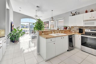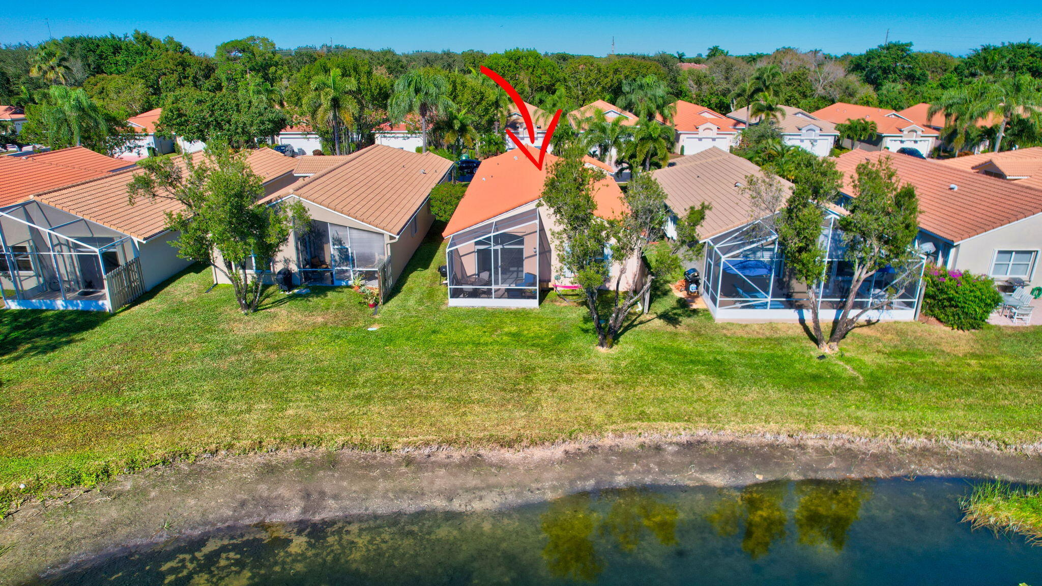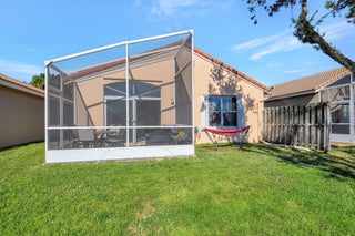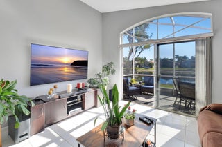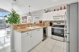 Every day feels like a vacation at The Grove, a community with a 24/7 guard gate and a stunning clubhouse. This two-bedroom home, with den/office and two-car garage, offers exceptional value. Enjoy beautiful lake views from your screened patio. The open floor plan, high ceilings, accordion hurricane shutters, new appliances, tile floors, and fresh paint create an inviting space. With low monthly maintenance fees, friendly neighbors, and a convenient location near shopping, medical facilities, and cultural venues, this home has so much to offer. Hot water heater (2021), A/C (2010), and roof (2009). This is a short sale subject to third party approval.