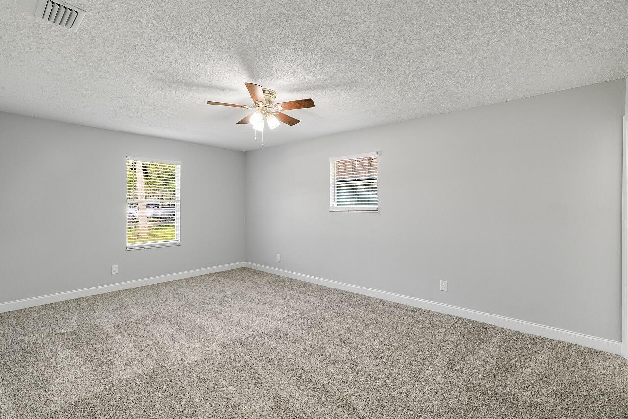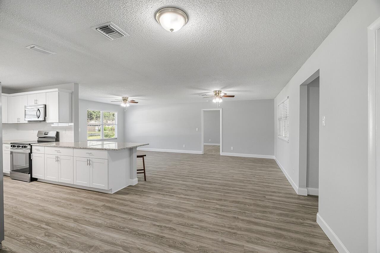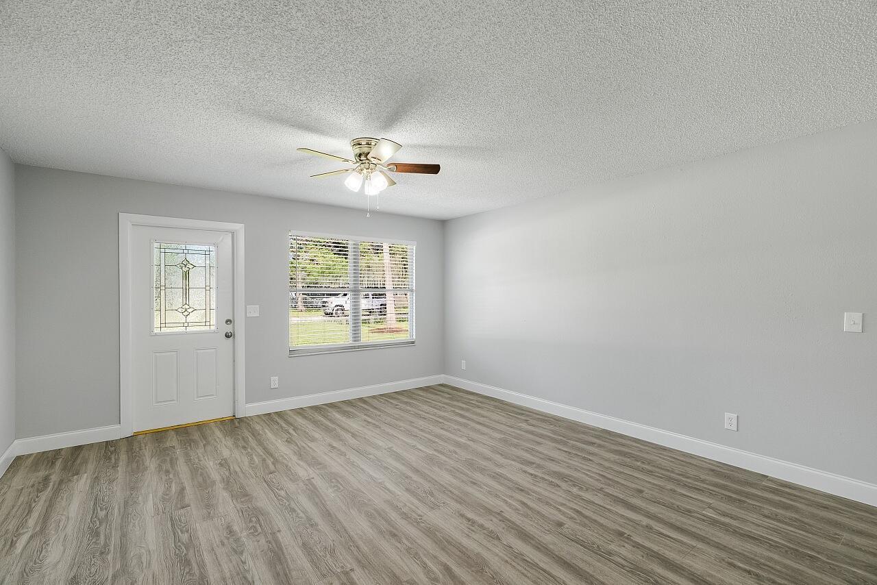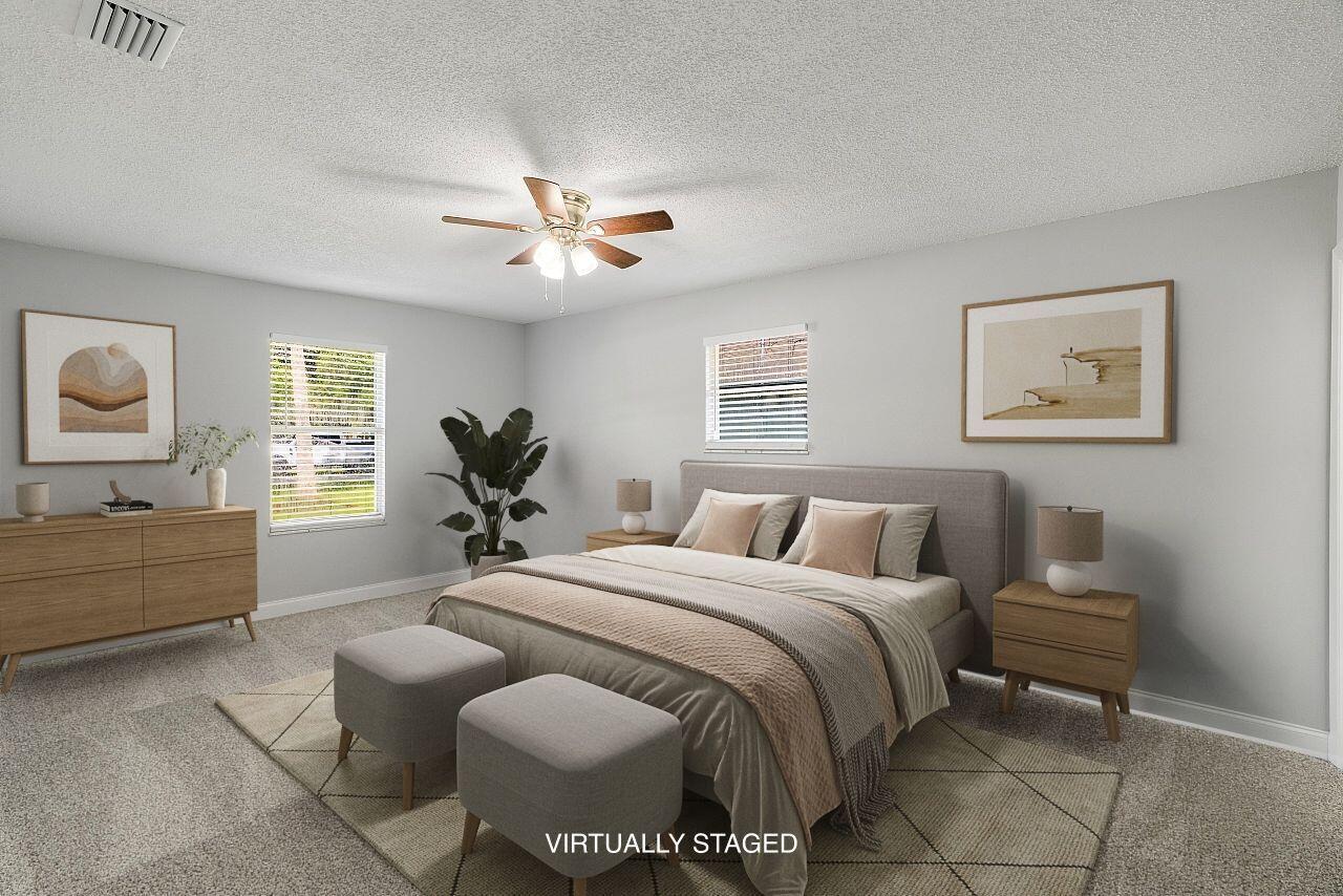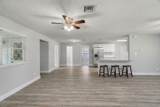 Welcome to this lovingly updated coastal home in the heart of Vero Beach. Features include new flooring +baseboards throughout, a split floorplan, updated bathrooms & kitchen, fresh interior/exterior paint, new lighting fixtures/ceiling fans/hardware/blinds & more! The kitchen is completed with shaker cabinetry, subway tile backsplash, SS appliances and granite counters. The primary bedroom has an en-suite bathroom plus walk in closet. Enjoy lounging on your lanai overlooking the fenced back yard. Roof: 2018 , AC:2017, Water Heater: 2020, shutters & immaculate garage, too! NO FHA until 10/17