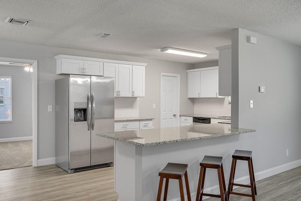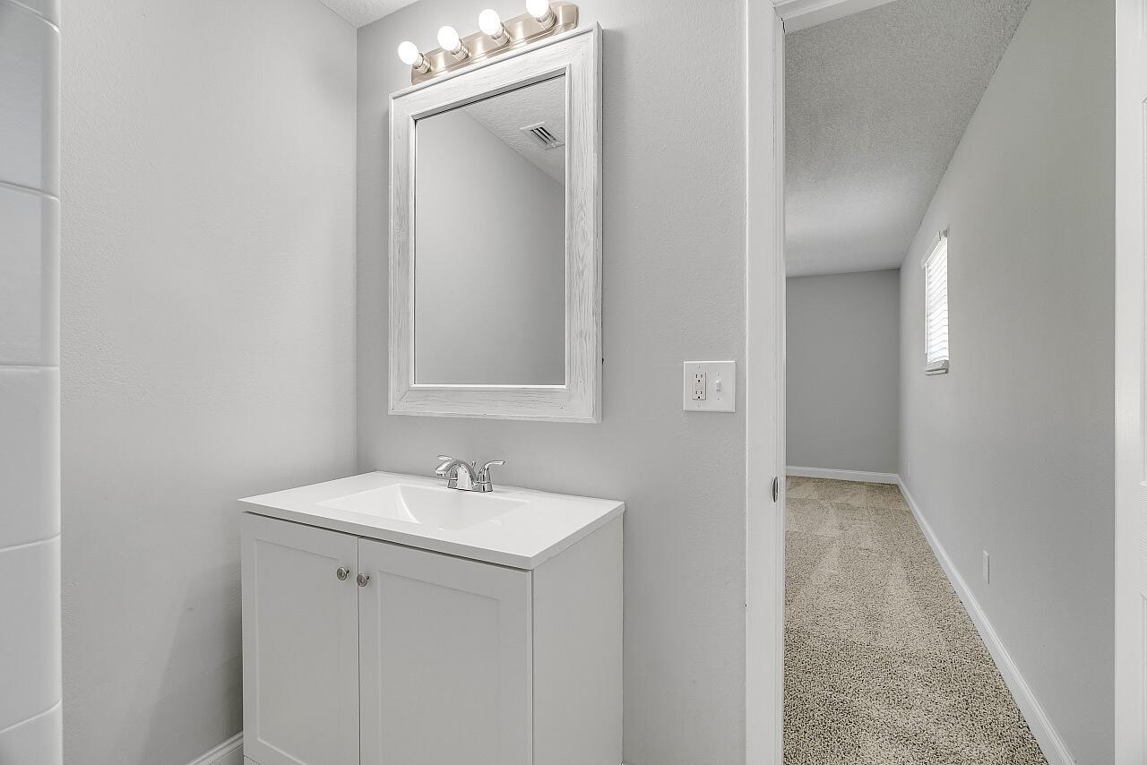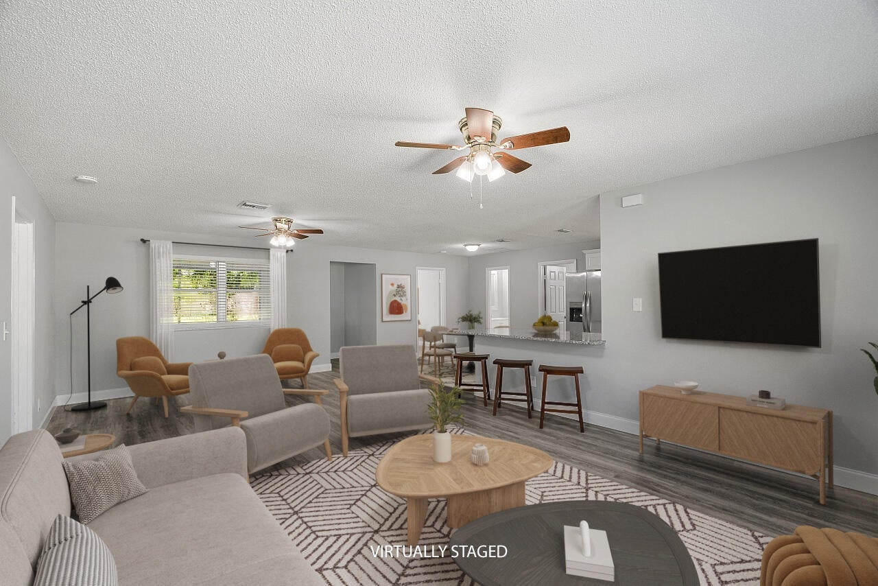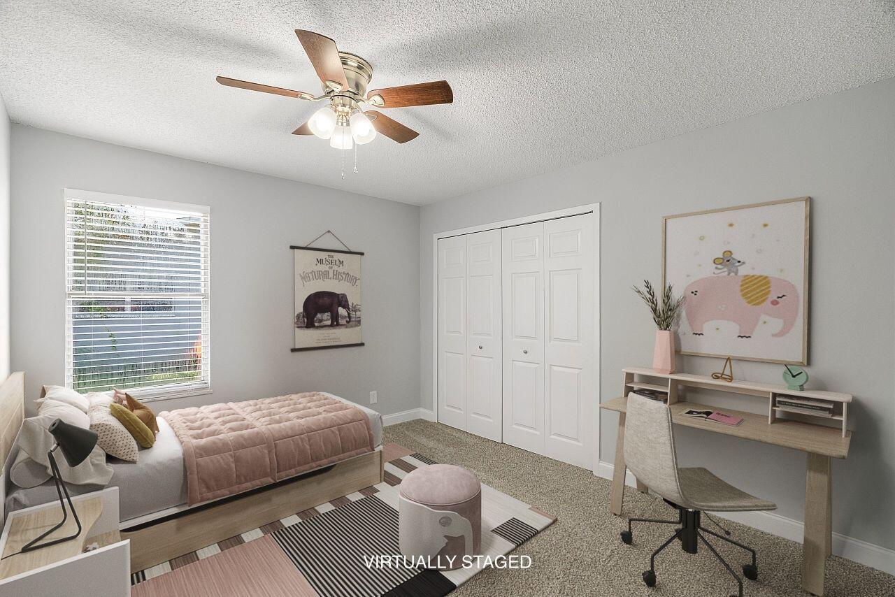 Welcome to this lovingly updated coastal home in the heart of Vero Beach. Features include new flooring +baseboards throughout, a split floorplan, updated bathrooms & kitchen, fresh interior/exterior paint, new lighting fixtures/ceiling fans/hardware/blinds & more! The kitchen is completed with shaker cabinetry, subway tile backsplash, SS appliances and granite counters. The primary bedroom has an en-suite bathroom plus walk in closet. Enjoy lounging on your lanai overlooking the fenced back yard. Roof: 2018 , AC:2017, Water Heater: 2020, shutters & immaculate garage, too! NO FHA until 10/17