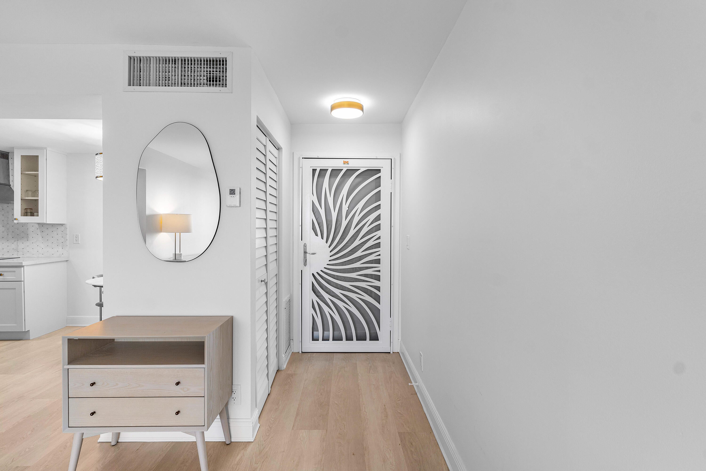 INTRACOASTAL VIEWS FULLY RENOVATED! Experience waterfront living at its finest in this beautifully renovated penthouse on the Intracoastal. Filled with natural light throughout, this bright and airy one bedroom, one bath residence features a sleek walk-in shower and a spacious bedroom with plantation shutters framing exceptional water views, plus a generous walk-in closet with custom built-ins.A coastal-inspired custom bookshelf in the hallway leads to the primary bedroom, adding both charm and functionality. The thoughtfully designed kitchen showcases quartz countertops, a wall oven, open-concept shelving, and abundant cabinetry with drawer storage, all seamlessly flowing into the inviting eat-in dining area.The open living room captures sweeping water viewswatch boats glide in or enjoy the community kayaks launching from the dock. Step onto the screened-in balcony overlooking the tranquil nature preserve, the perfect setting for morning coffee or evening sunsets. Every detail has been elevated to combine modern elegance, coastal character, and the tranquility of waterfront living. This penthouse is ideal for those seeking a low-maintenance lifestyle, unmatched views, and direct access to nature.