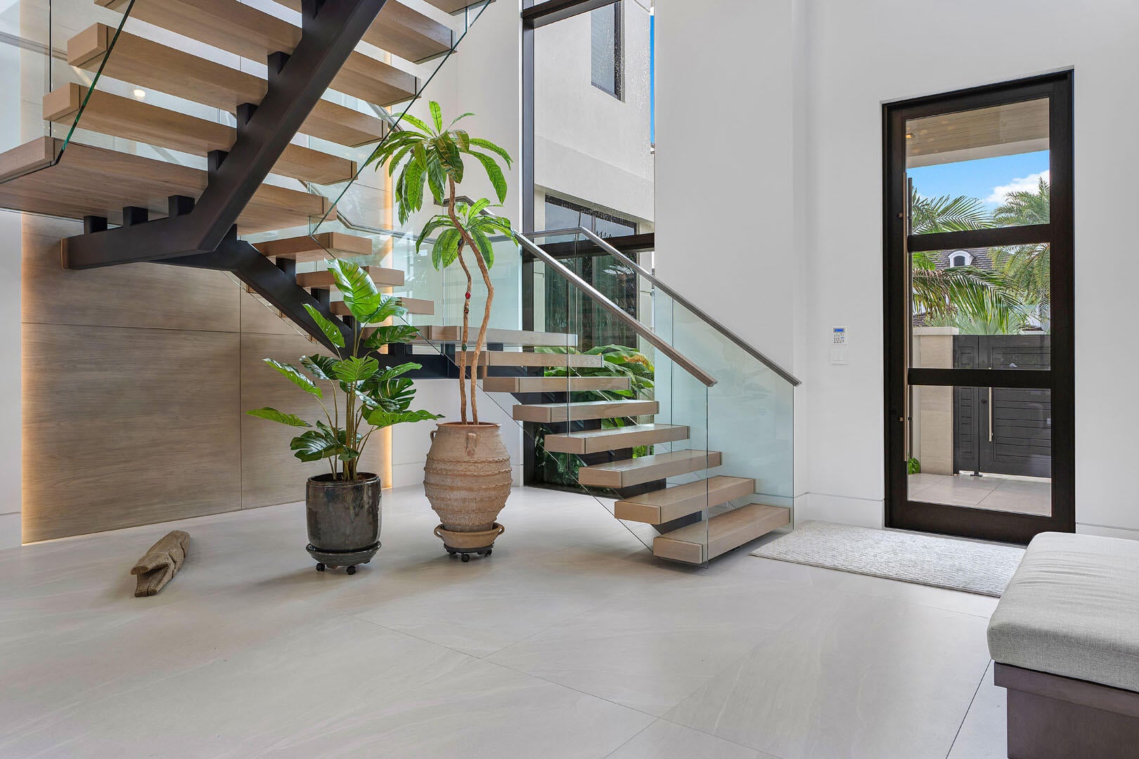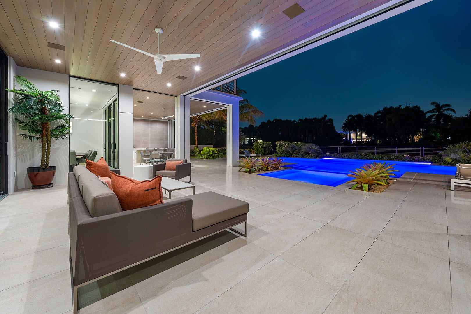 A masterpiece of modern waterfront living, this nearly new 2024 estate by SRD Building Corp., with interiors by award-winning P&H Interiors, commands a premier position on the coveted Buccaneer Palm Waterway. With 100 feet of yacht-ready frontage and a private dock, every element of this residence is curated for elegance and ease of life on the water.Spanning more than 7,500 a/c square feet, the home reveals an atmosphere of refined grandeur the moment you enter its secure, gated courtyard. Beyond lies a world of resort-style luxury, where a sunlit pool and spa, expansive covered terrace, and a fully appointed outdoor bar create the ultimate setting for waterfront entertaining.Inside, the state-of-the-art kitchen with eat-in dining flows seamlessly into the living spaces, whilea club room, private study, and dedicated gym with sauna offer destinations for every pursuit. Two extraordinary master suites elevate the living experience, each with dual baths, custom closets, and private balconies that frame sweeping views of the waterway. The residence balances grand scale with intimate comforts with five bedrooms, six full and two half baths, an elevator, and a 3-car plus golf cart garage. Smart-home technology with Crestron controls ensures modern convenience throughout. More than a home, it's a statement of lifestyle, craftsmanship, and waterfront prestige in Royal Palm Yacht & Country Club.