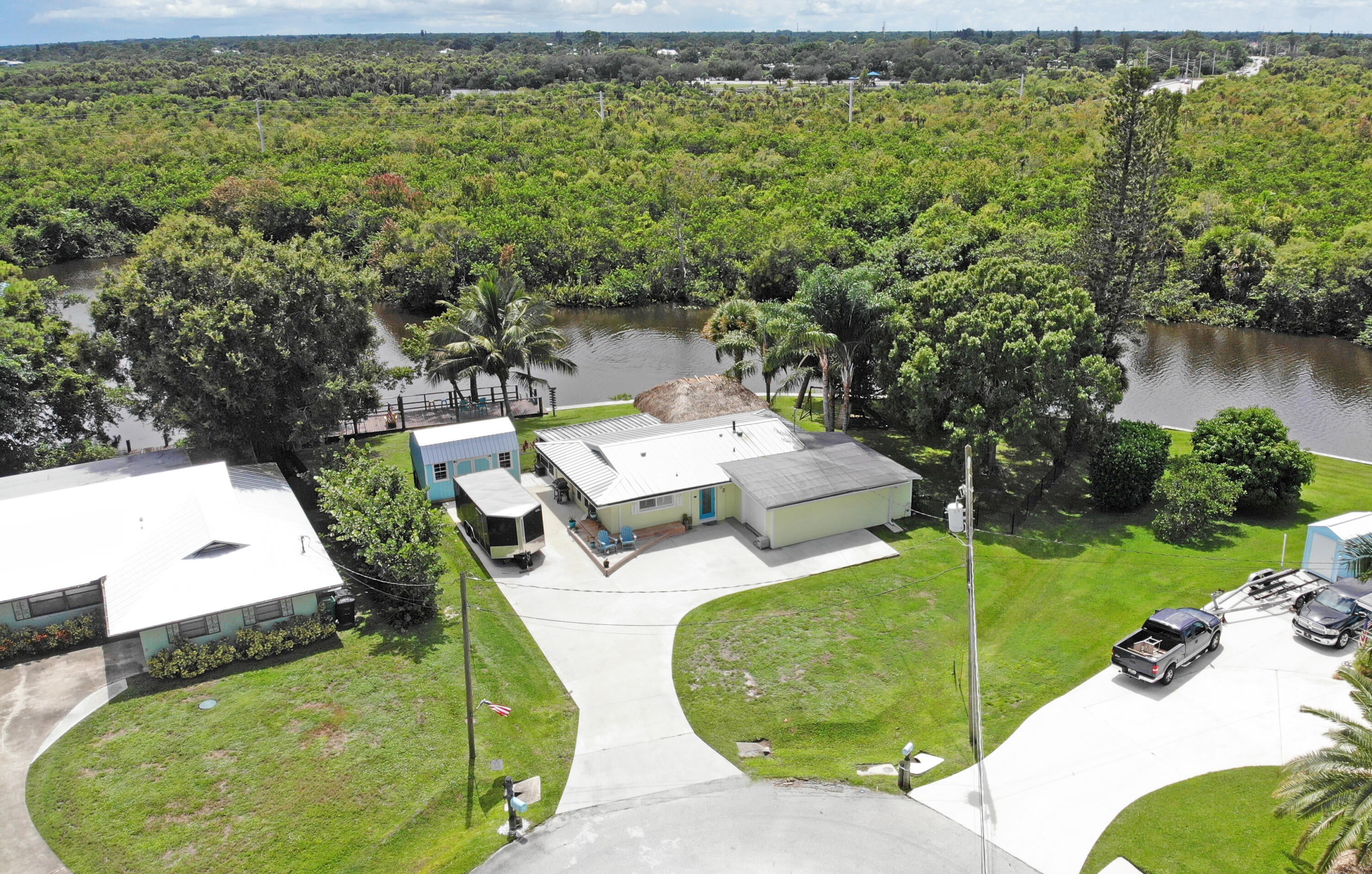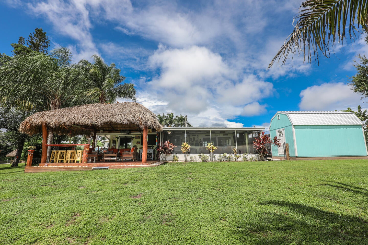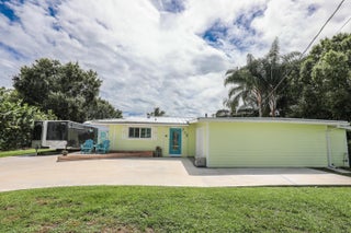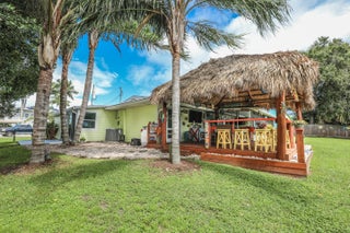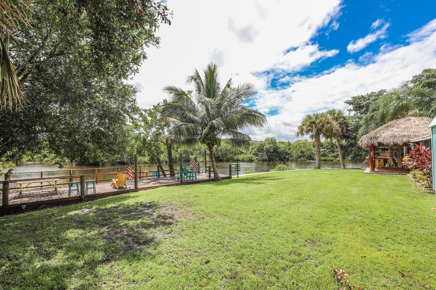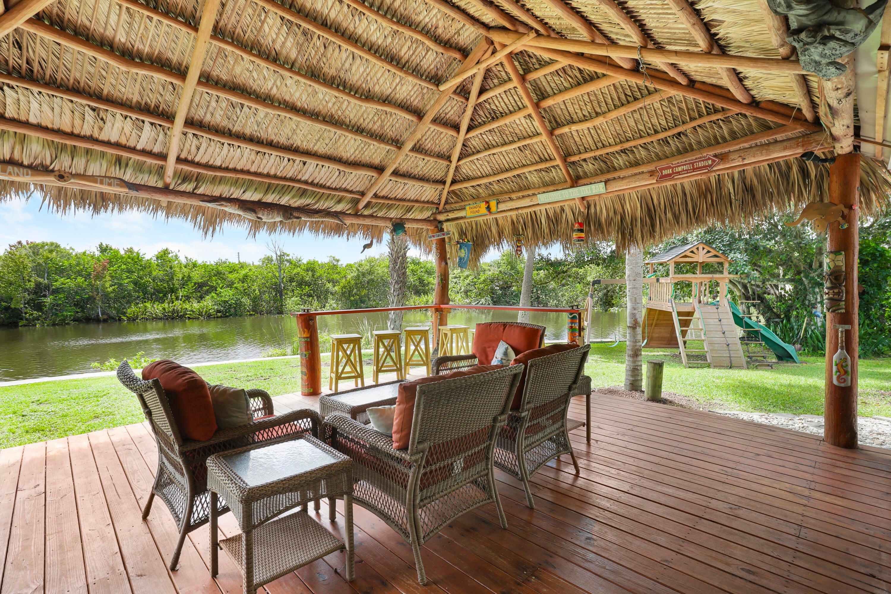 OCEAN ACCESS WATERFRONT PARADISE! With water views from every room you won't want to leave! Features include: No HOA, concrete block home with hardy plank exterior, extra thick 24 gauge standing seam metal roof, all impact windows & doors, 18'' cement cap sea wall and 60ft dock, ample room to park an RV or boat in the extended driveway with 100 amp svc with 50 amp for RV, freshly thatched Tiki hut with mature trees giving it a real Floridian charm. Ocean access via St Lucie River - also perfect for an AirBnB. The interior boasts wood plank tile flooring, granite countertops, Kitchen Aid gourmet double oven, new LG refrigerator, and beautiful plantation shutters. [2023 Standing Seam Roof | 2022 AC | 2024 Gas Tankless WH with 200 gal propane tank | 2024 shed]. Book your private tour today!