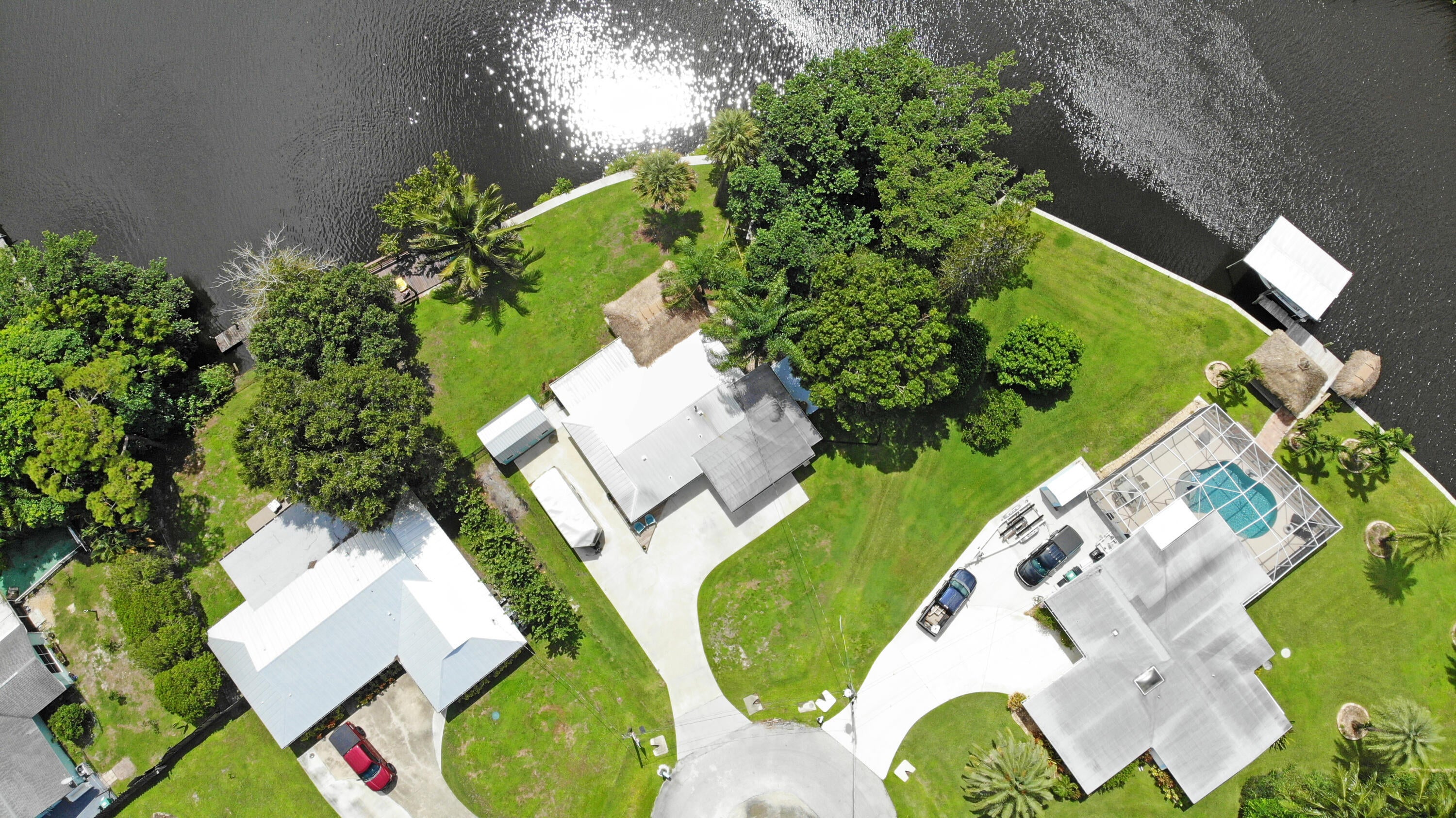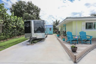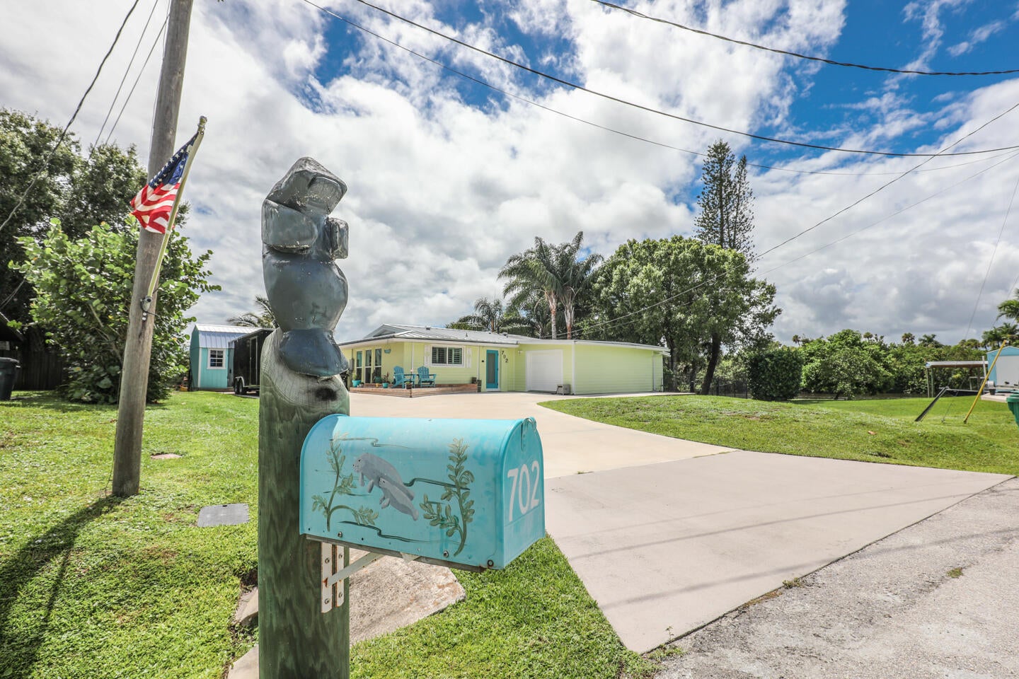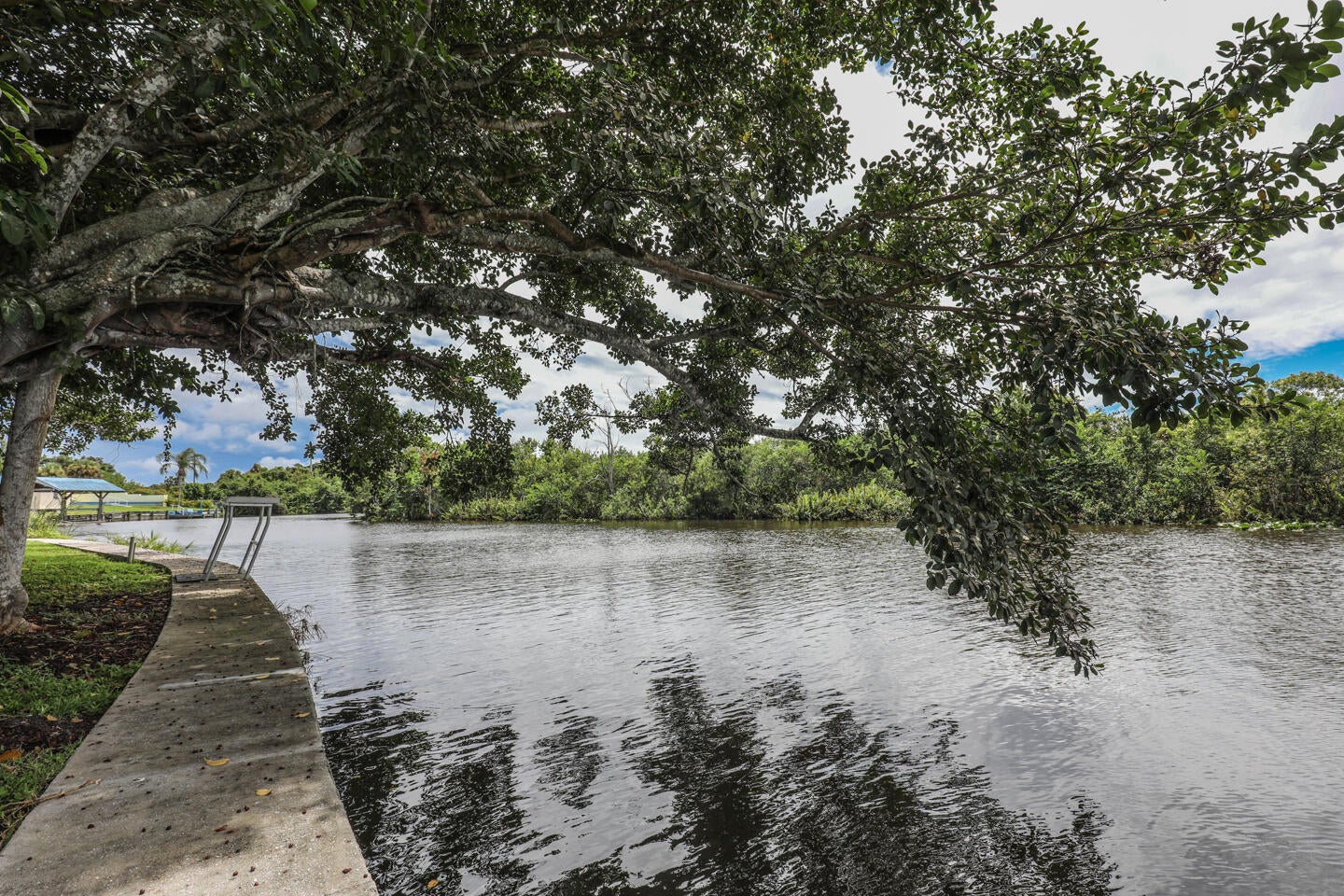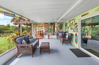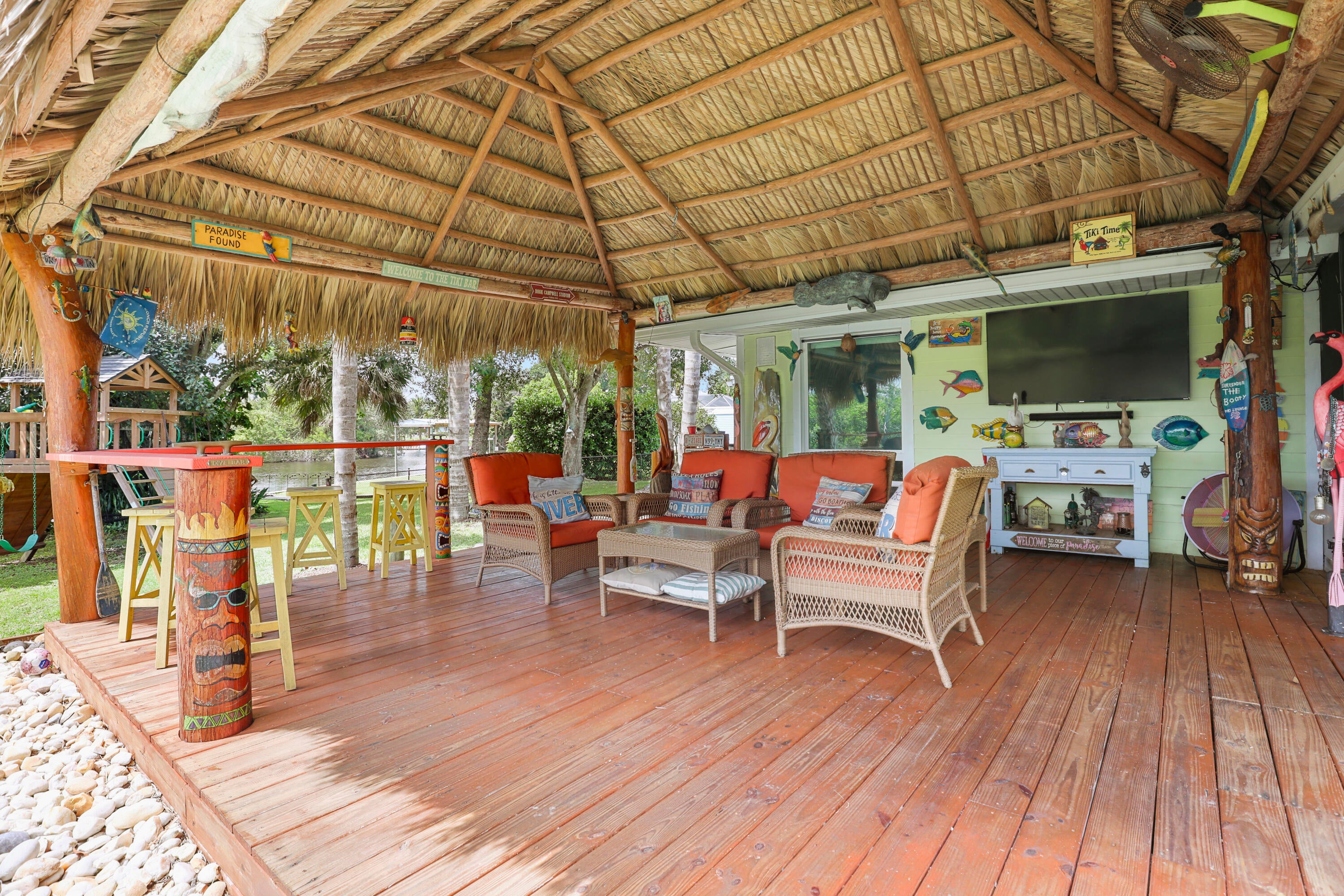 OCEAN ACCESS WATERFRONT PARADISE! With water views from every room you won't want to leave! Features include: No HOA, concrete block home with hardy plank exterior, extra thick 24 gauge standing seam metal roof, all impact windows & doors, 18'' cement cap sea wall and 60ft dock, ample room to park an RV or boat in the extended driveway with 100 amp svc with 50 amp for RV, freshly thatched Tiki hut with mature trees giving it a real Floridian charm. Ocean access via St Lucie River - also perfect for an AirBnB. The interior boasts wood plank tile flooring, granite countertops, Kitchen Aid gourmet double oven, new LG refrigerator, and beautiful plantation shutters. [2023 Standing Seam Roof | 2022 AC | 2024 Gas Tankless WH with 200 gal propane tank | 2024 shed]. Book your private tour today!