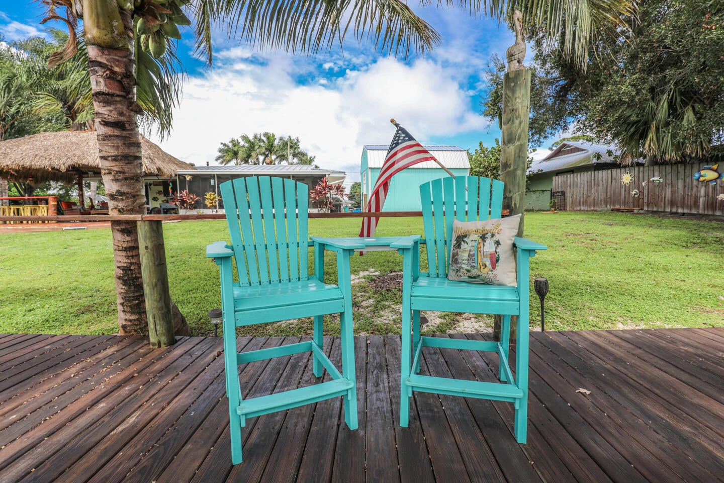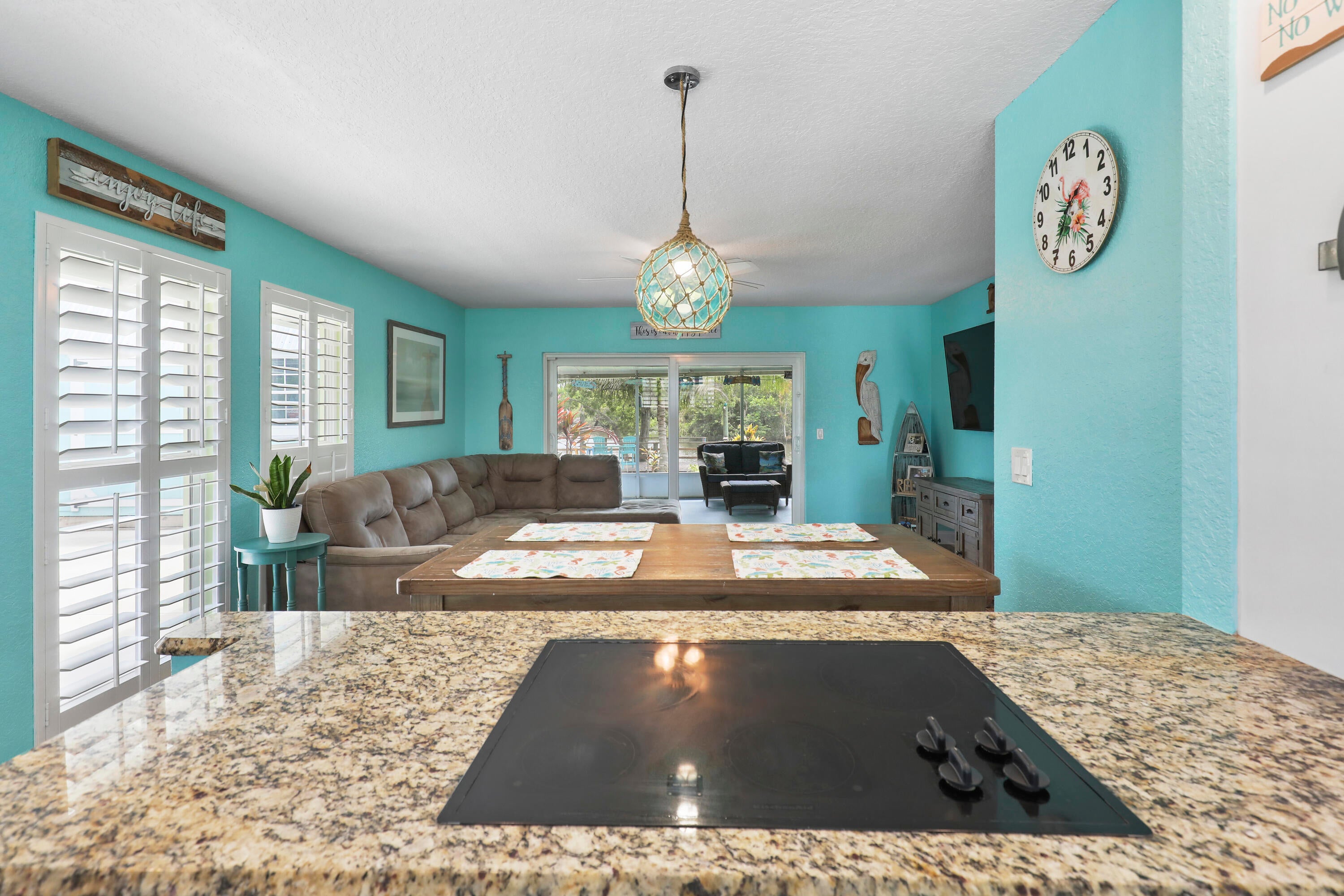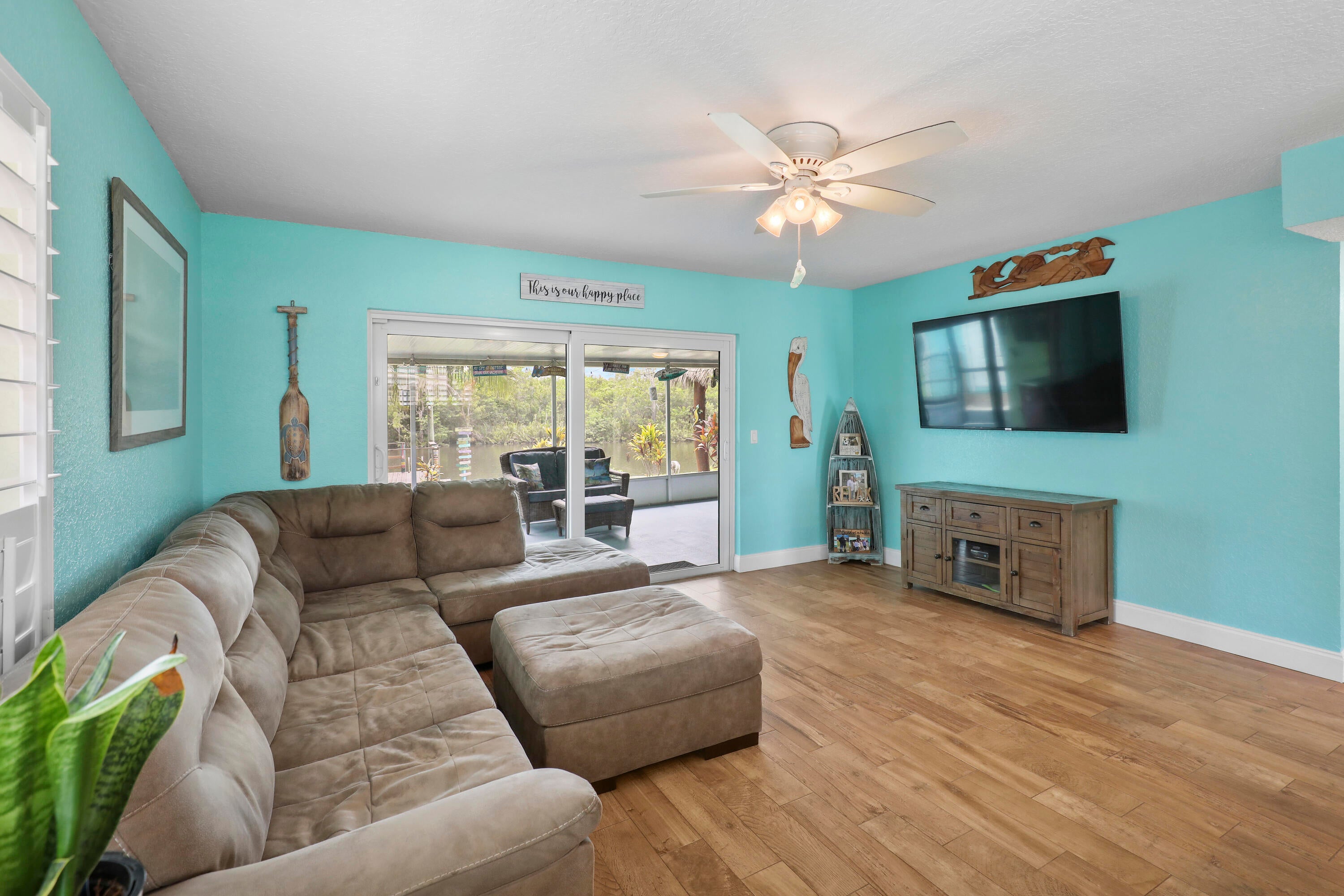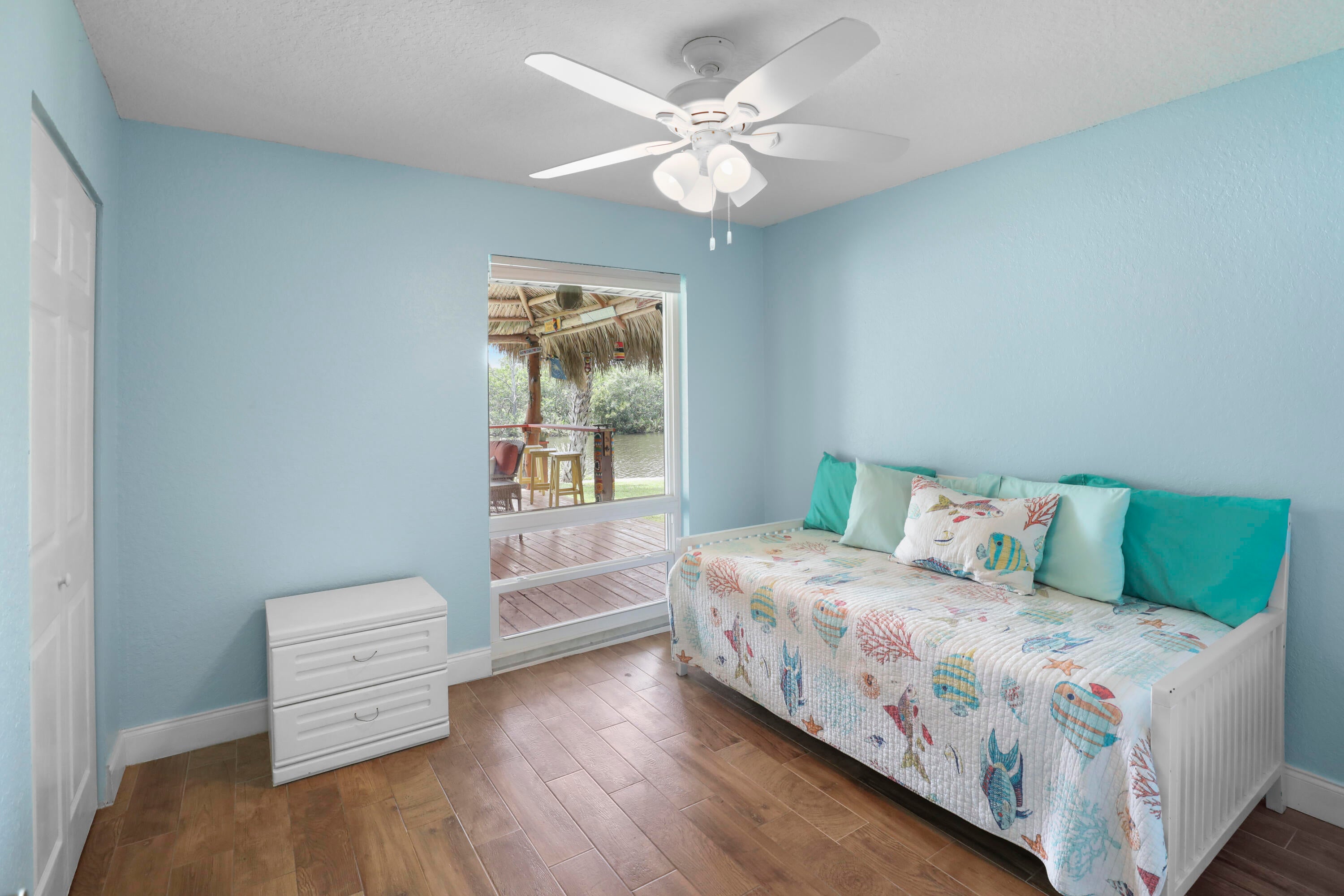 OCEAN ACCESS WATERFRONT PARADISE! With water views from every room you won't want to leave! Features include: No HOA, concrete block home with hardy plank exterior, extra thick 24 gauge standing seam metal roof, all impact windows & doors, 18'' cement cap sea wall and 60ft dock, ample room to park an RV or boat in the extended driveway with 100 amp svc with 50 amp for RV, freshly thatched Tiki hut with mature trees giving it a real Floridian charm. Ocean access via St Lucie River - also perfect for an AirBnB. The interior boasts wood plank tile flooring, granite countertops, Kitchen Aid gourmet double oven, new LG refrigerator, and beautiful plantation shutters. [2023 Standing Seam Roof | 2022 AC | 2024 Gas Tankless WH with 200 gal propane tank | 2024 shed]. Book your private tour today!