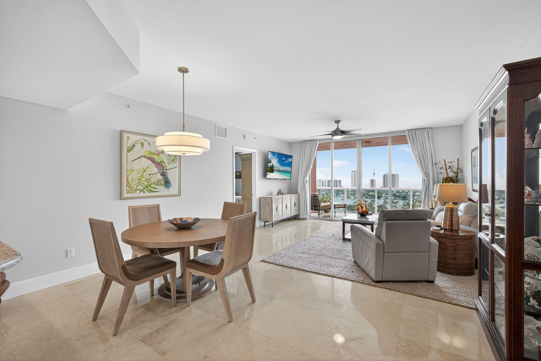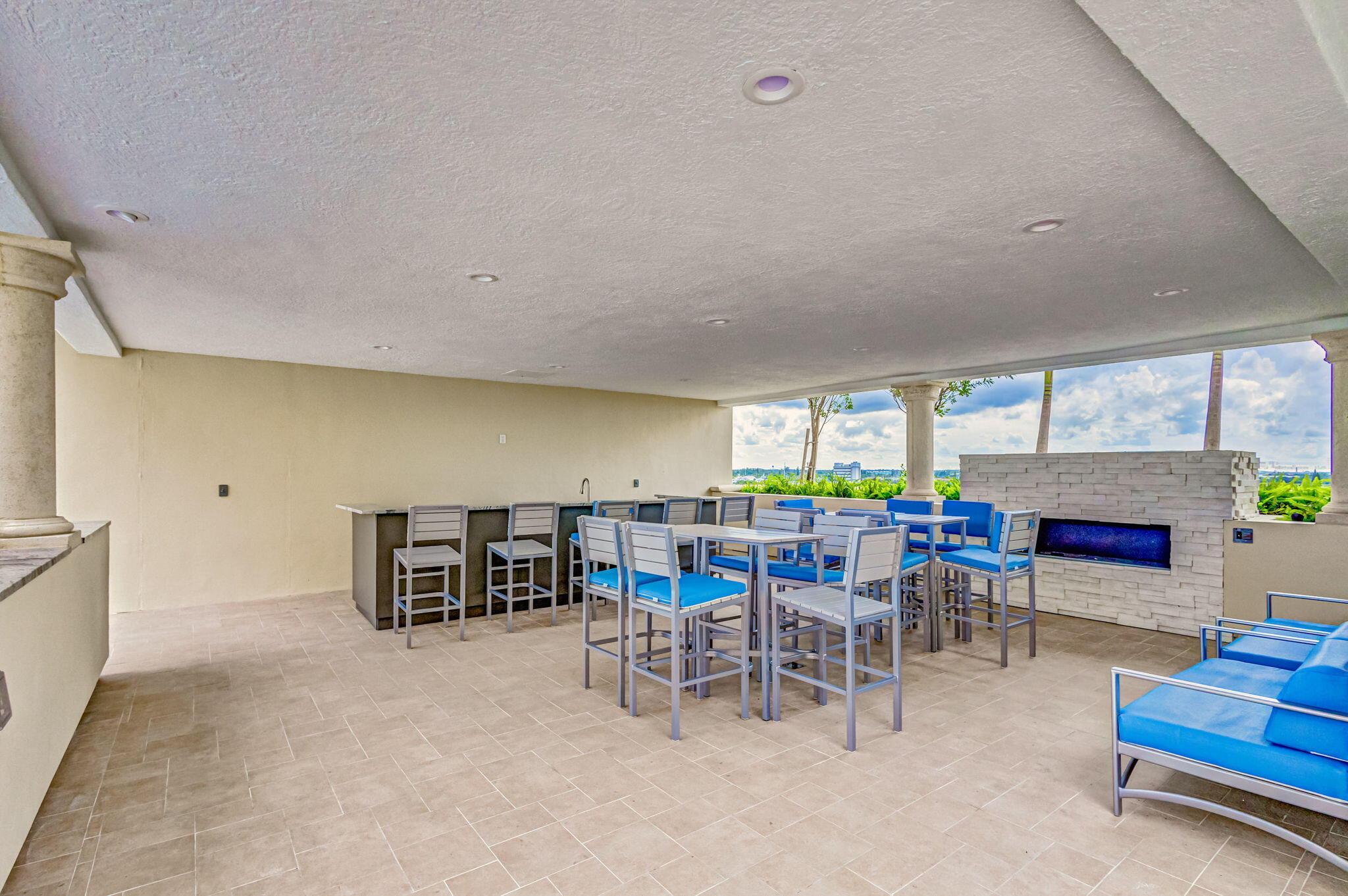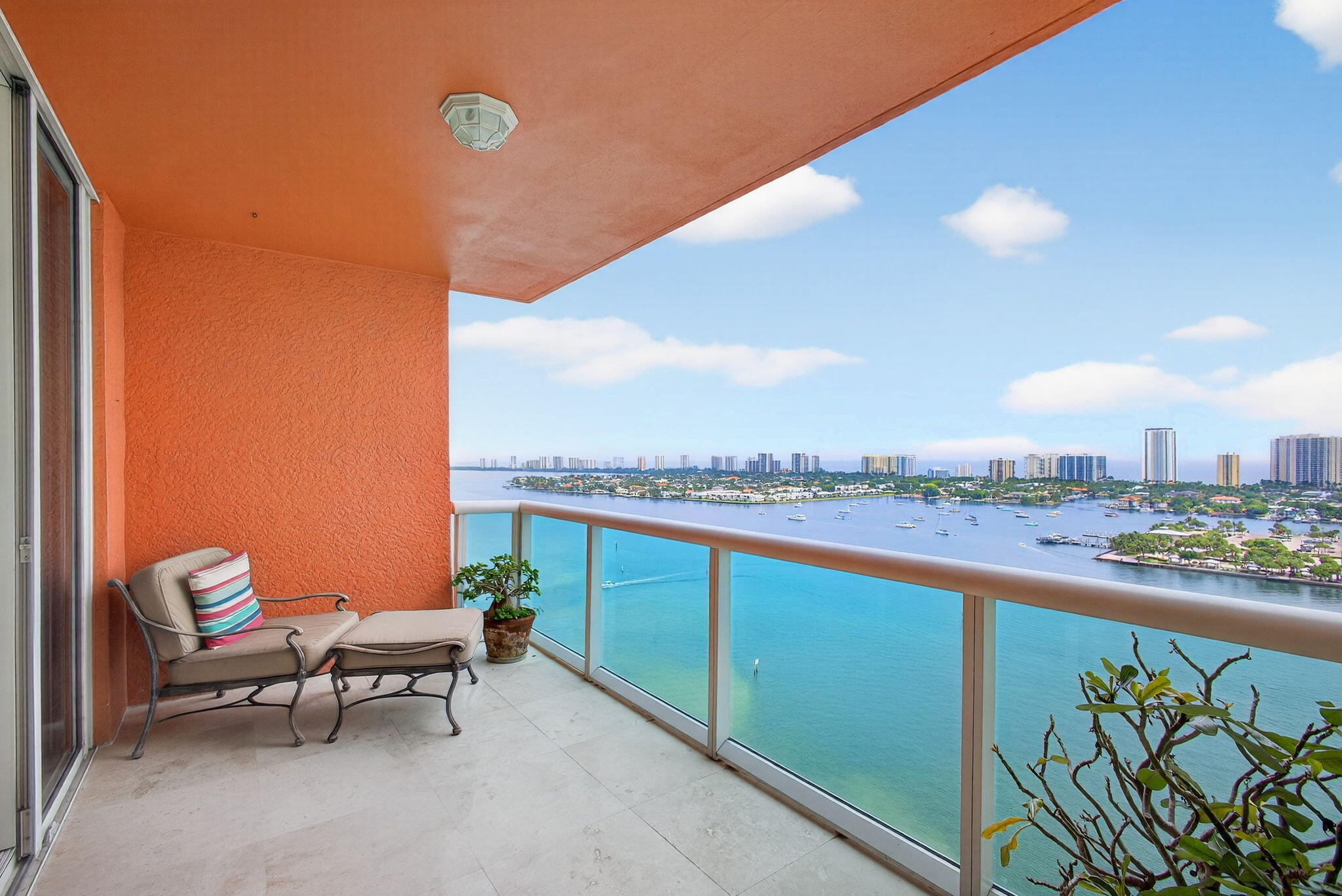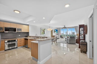 Stunning lower penthouse condo, boasting sweeping OCEAN and INTRACOASTAL views. This light-filled two-bedroom residence showcases a beautifully designed kitchen with Whirlpool & LG appliances, designer countertops, travertine floors & custom cabinetry. The expansive owner's suite features breathtaking views, dual walk-in closets, & a spa-like bath. Enjoy resort-style living in a full-amenity building offering 24-hour guard gate, valet, garage parking, pickleball, tennis, a newly renovated pool & amenity deck w/ fire pits, grills, and lounge areas. Additional perks include a club room, billiards, ping-pong, boardroom, and pet-friendly policies. Upcoming improvements include a redesigned lobby, locker rooms, and package/mail facilities. Enjoy peace of mind with 100% impact glass & 2022 AC!glass and newer AC.