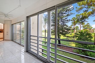 Ready to make a move? This seller is packed and ready to go! Step into this beautifully updated condo featuring gleaming white tile floors and stylish laminate in both bedrooms. Enjoy serene views of trees, golf course, and lake from your expansive 24-foot balcony, enclosed with elegant glass sliders for year-round comfort. Natural light and fresh air flow effortlessly through sliding glass doors in the kitchen, living room, and primary bedroom. The split-bedroom layout offers privacy for guests or family, while thoughtful upgrades--including a replaced electrical panel, GFI outlets in the kitchen and guest bath, and balcony outlets to ensure peace of mind. Stay cool with a newer AC unit (2022). Enjoy the convenience of a well-maintained home that's truly move-in ready. Desirable community with tons of amenities including pickleball, tennis, restaurant, pools, gym, golf and more. Close to PBIA, shopping and short drive to the beach.