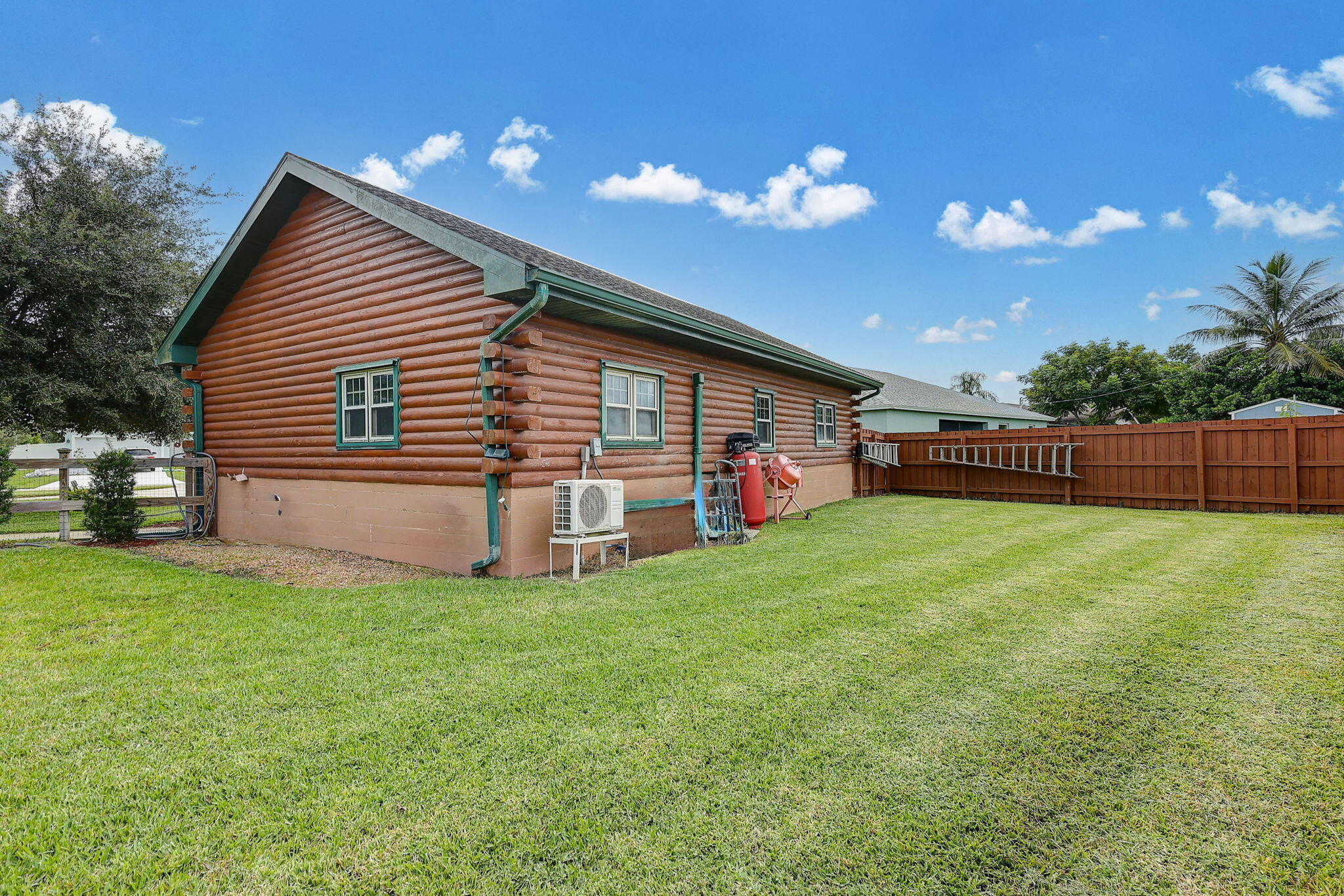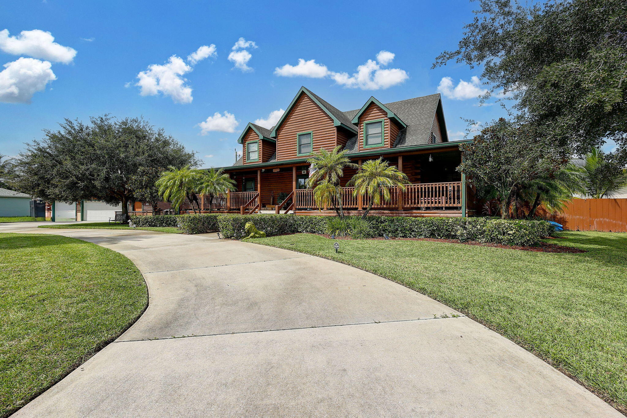 Gorgeous log home with a pool! No HOA. Fully fenced double lot. Detached 3 car garage. Custom Southland built home with borage treated Kiln dried sterilized logs. The home features an open floor plan on the first floor that offers a bonus room that could be a 4th bedroom, 2 full and 2 half baths, salt water pool (2017), hot tub, all wood and tile flooring, fireplace, stainless appliances, walk in pantry, granite counters in the kitchen and baths, real wood cabinets. Master bedroom on main level and two bedrooms upstairs with a large loft area. AC less than a year old. 3 car detached air conditioned garage. Gravel side area beside the garage is perfect for a boat or RV. Circular driveway for plenty of parking. No HOA, bring all the toys.Centrally located to shopping, dining, medical, Tradition and easy access to I-95 and FL Turnpike.