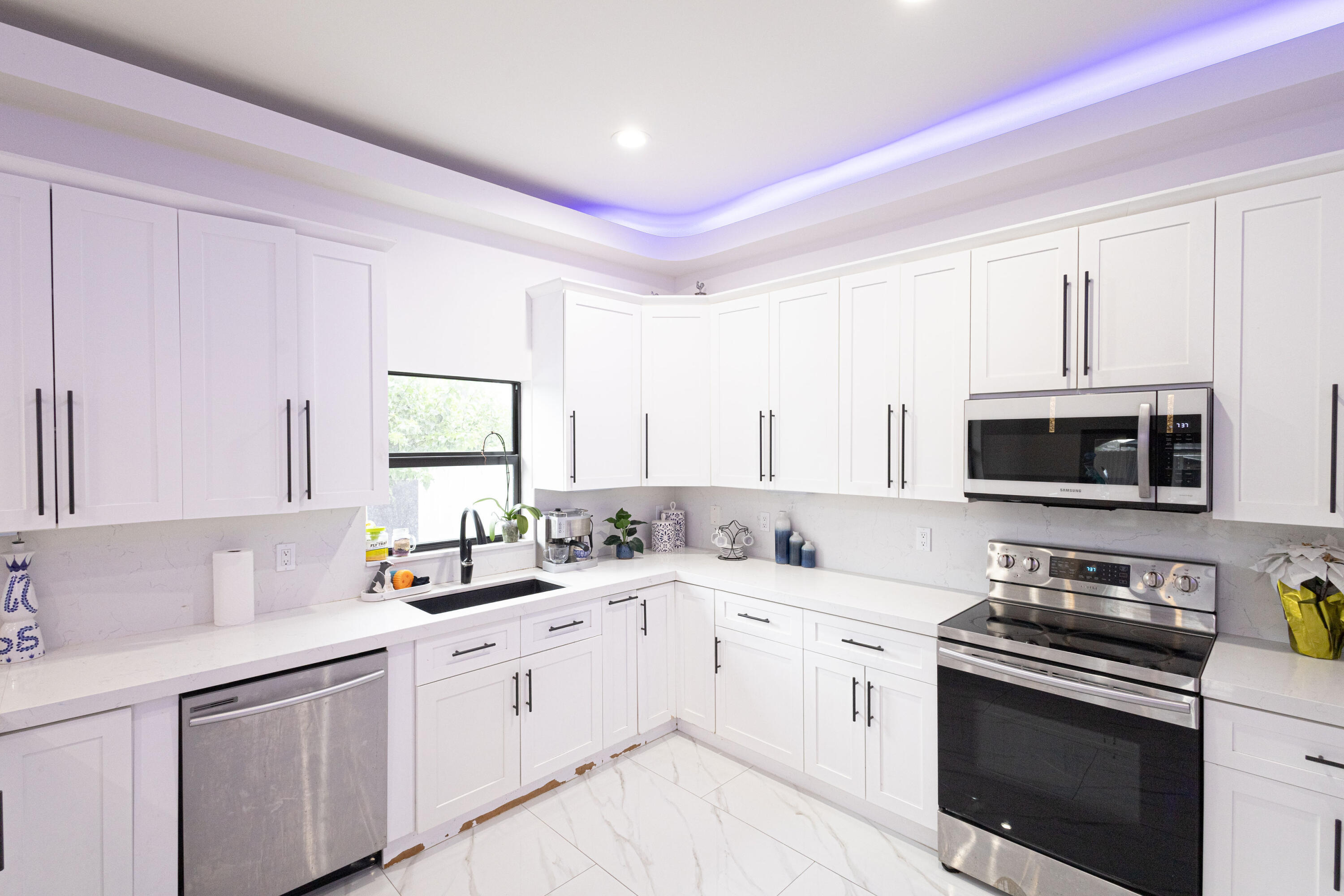 Discover this modern 2020-built home featuring 4 bedrooms and 3 bathrooms, perfectly designed for comfort and style. The main home offers 3 spacious bedrooms and 2 full baths, showcasing an open-concept layout with high ceilings, elegant finishes, and energy-efficient LED lighting throughout. Enjoy a sleek modern kitchen with stainless steel appliances, quartz countertops, and plenty of storage. The property includes a private 1-bedroom, 1-bath apartment--ideal for generating extra income, hosting guests, or as an in-law suite.everything is new and move-in ready: impact windows and doors, updated systems, and modern design. Located in a highly desired neighborhood, this home combines privacy, convenience, and long-term value.