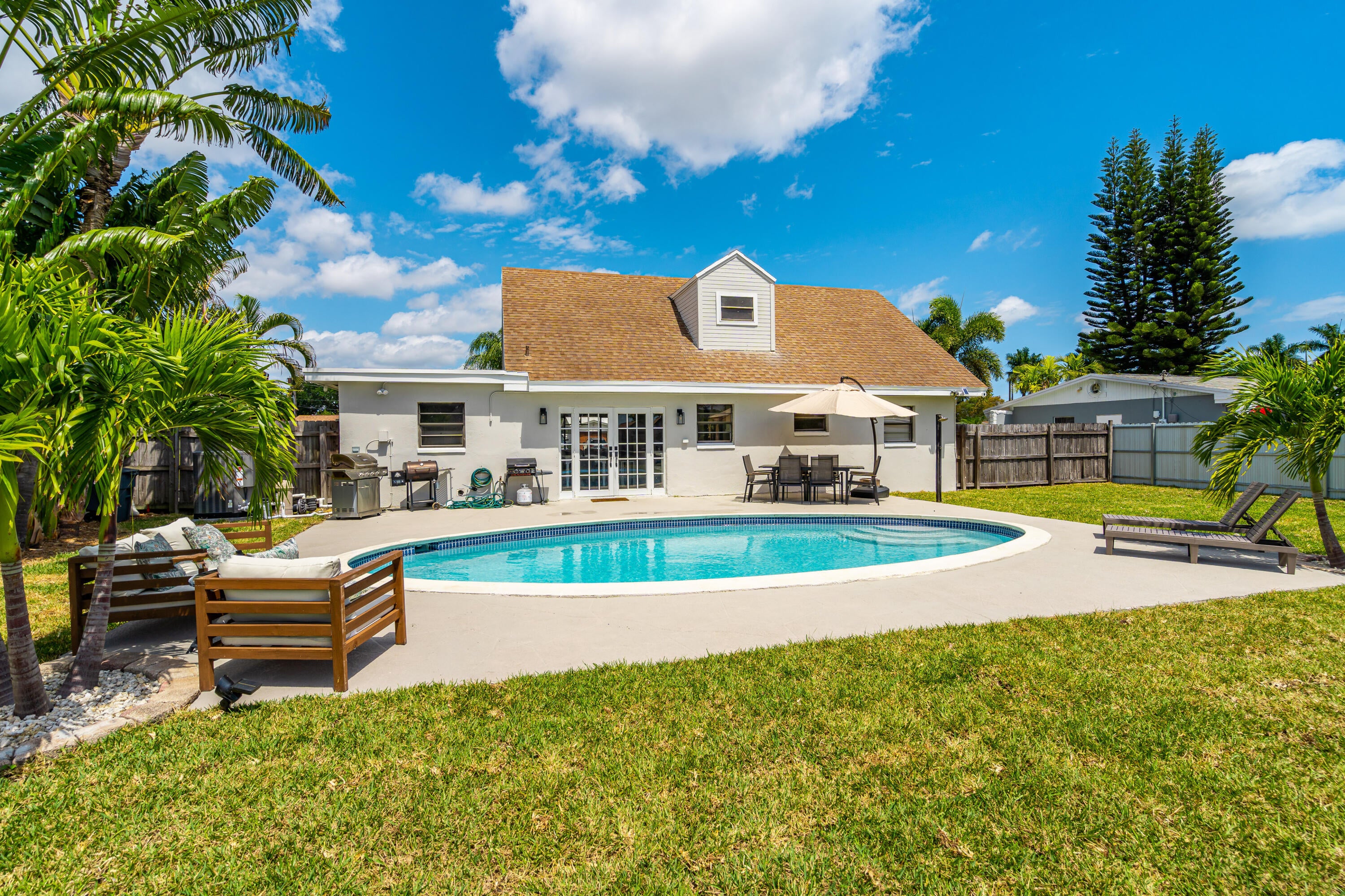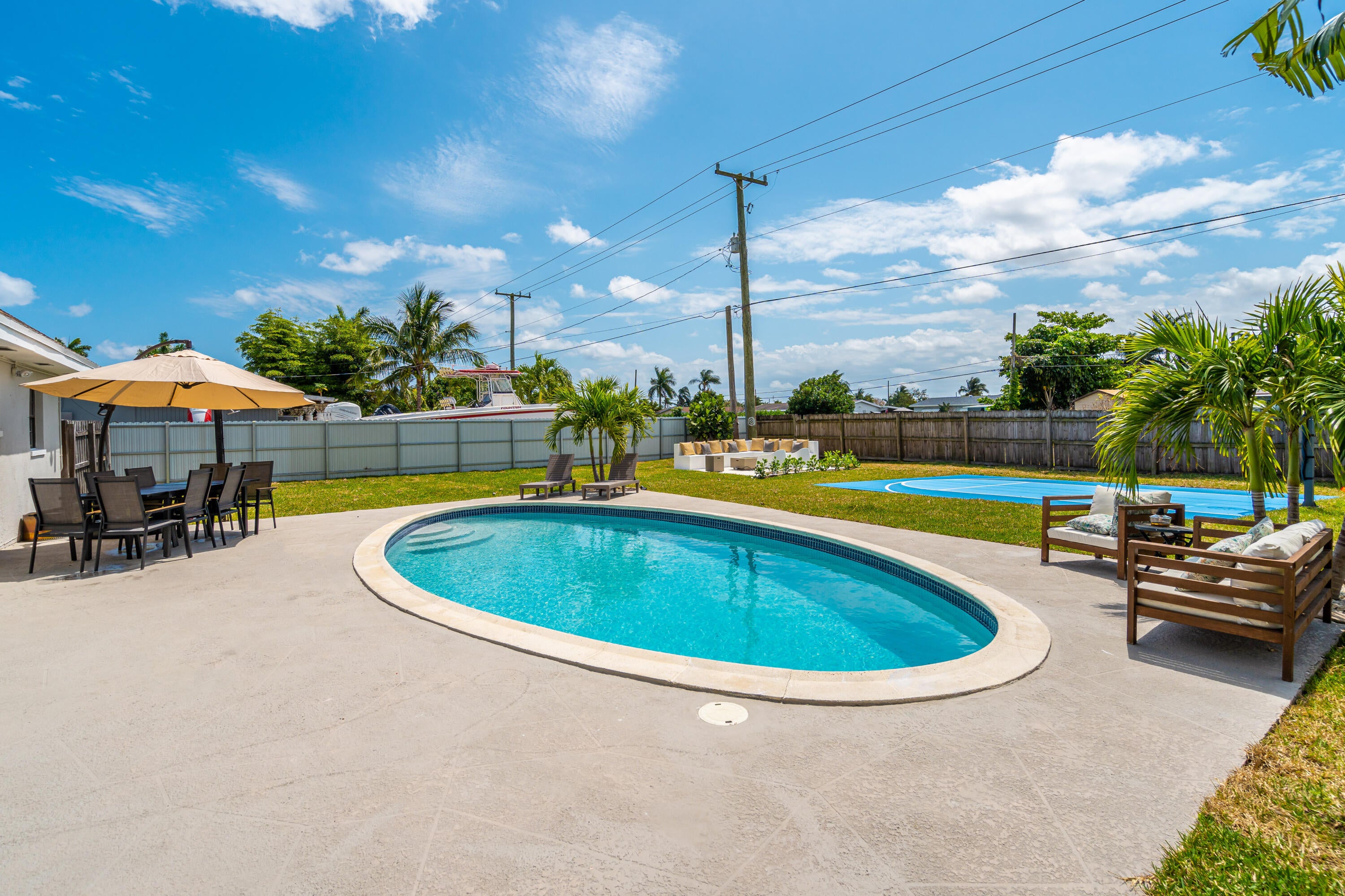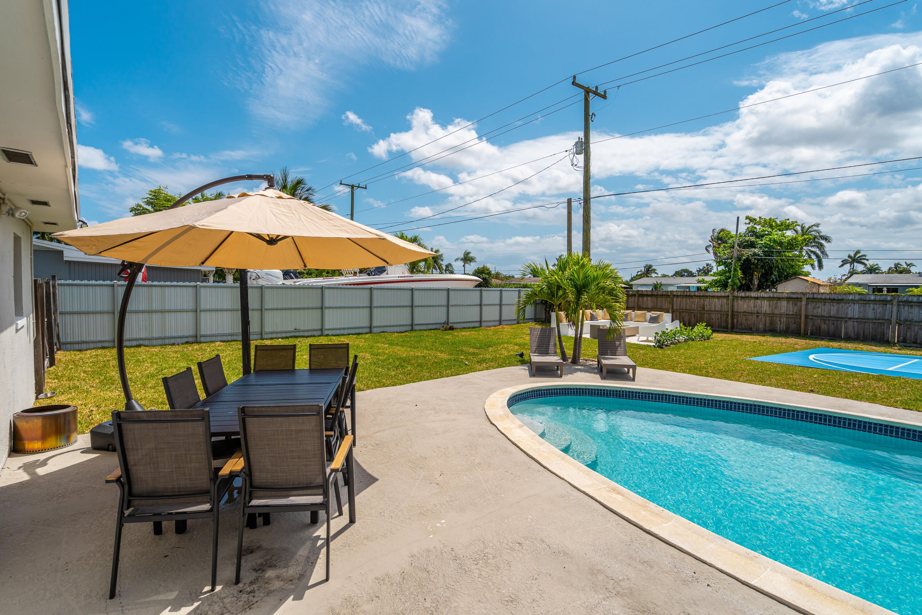 Experience the perfect blend of style, comfort, and convenience in this stunning two-story home located just minutes from West Palm Beach! This home, currently used as an Airbnb, over $10k in bookings, features a private heated pool, a luxurious fire pit, and even a private basketball court, offering endless opportunities for relaxation and recreation. The spacious layout includes 4 well-appointed bedrooms and a versatile bonus room, perfect for a playroom or guest space. The modern kitchen is designed for both everyday living and entertaining, while the outdoor grill area provides the perfect spot for barbecues. Enjoy access to nearby community amenities, including pickleball and tennis courts, basketball courts, a soccer field, and a playground! Furniture Negotiable