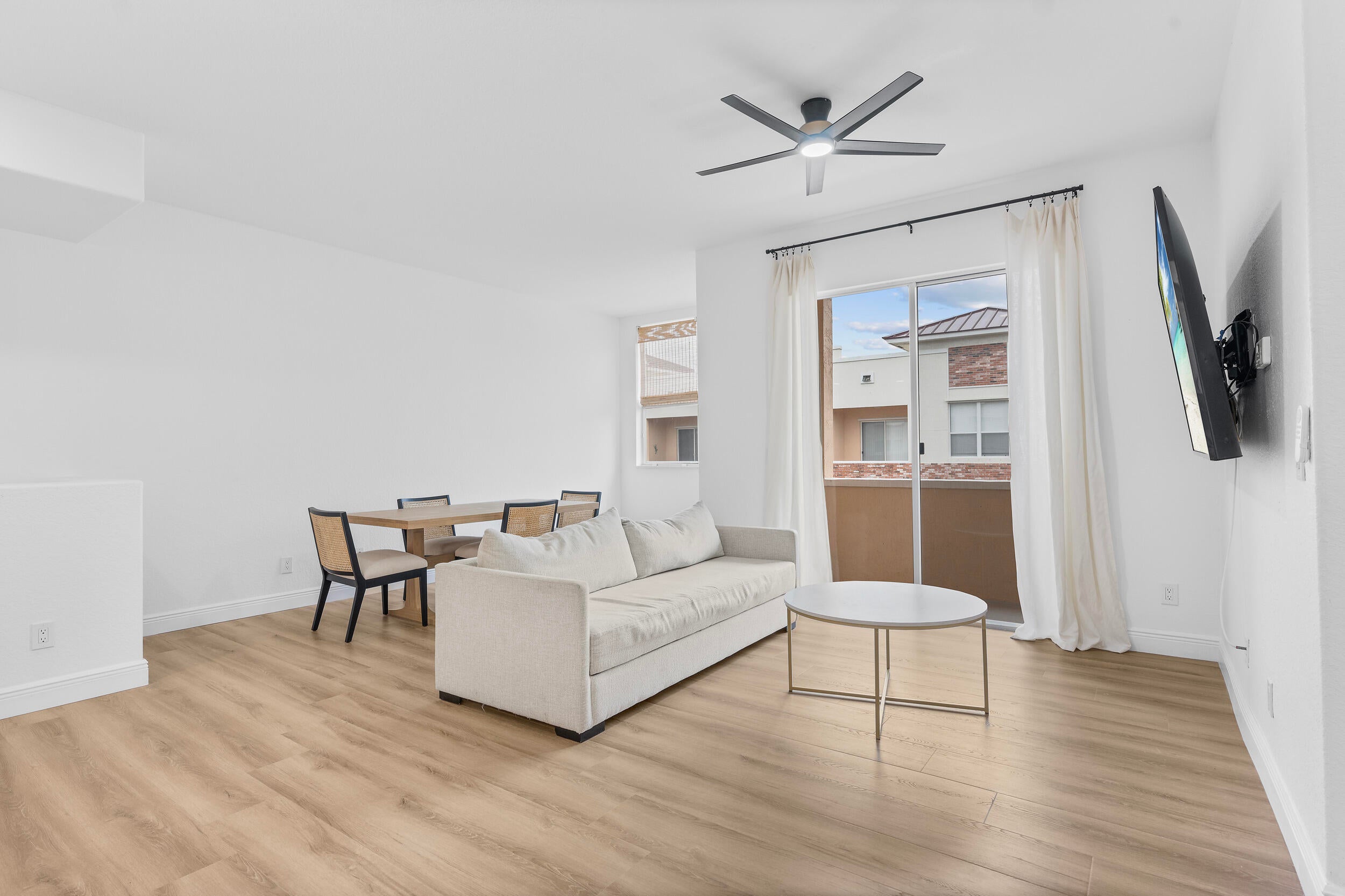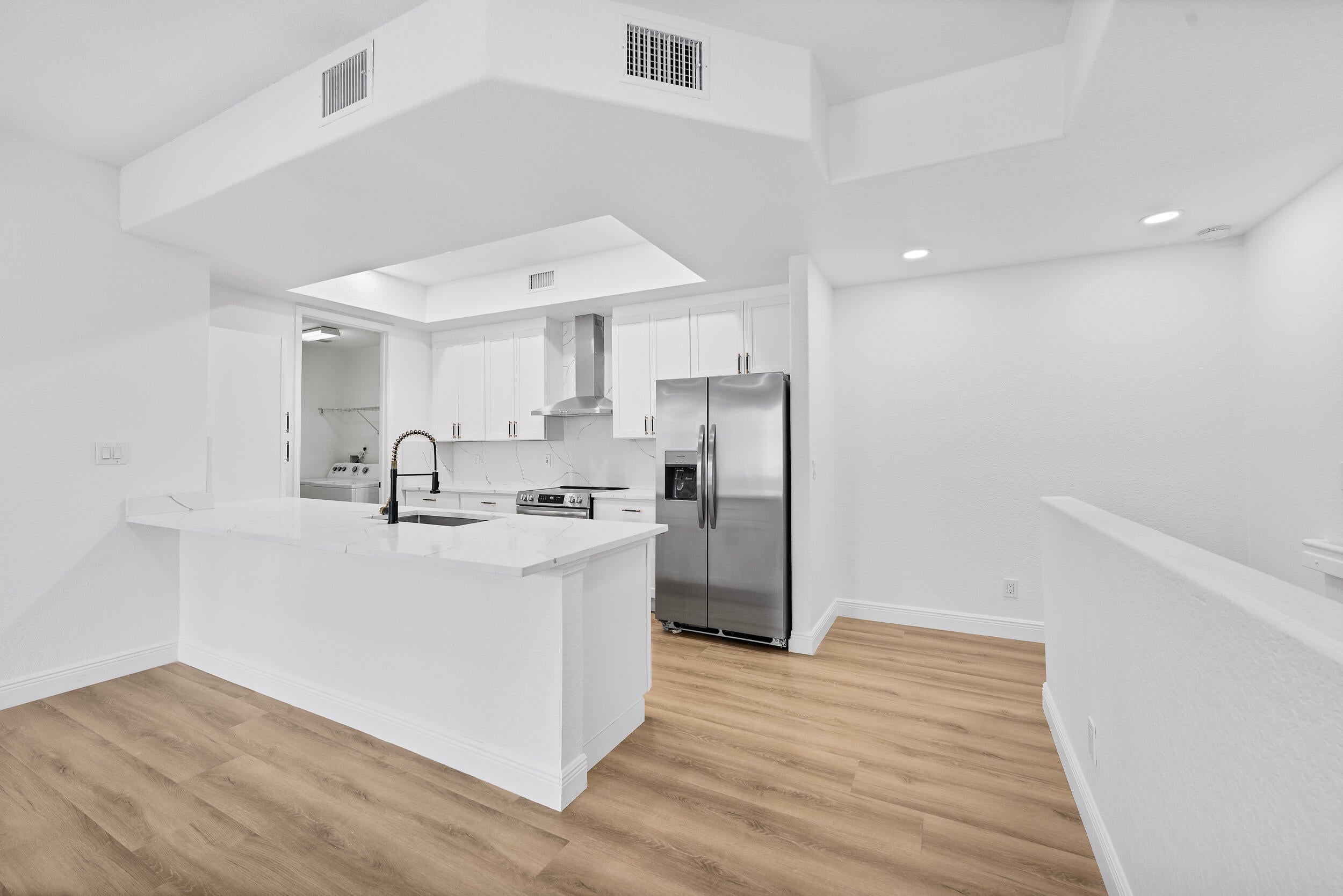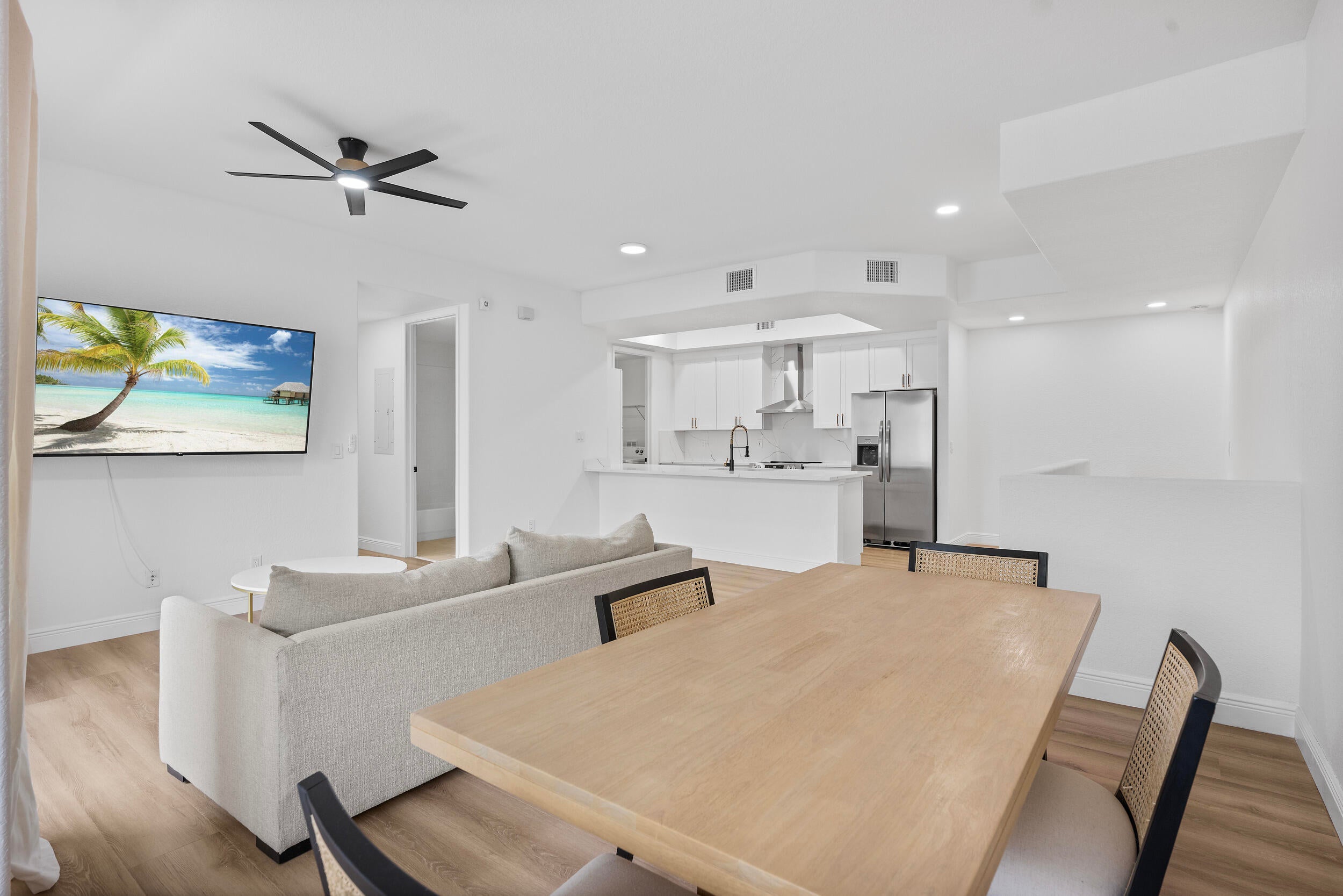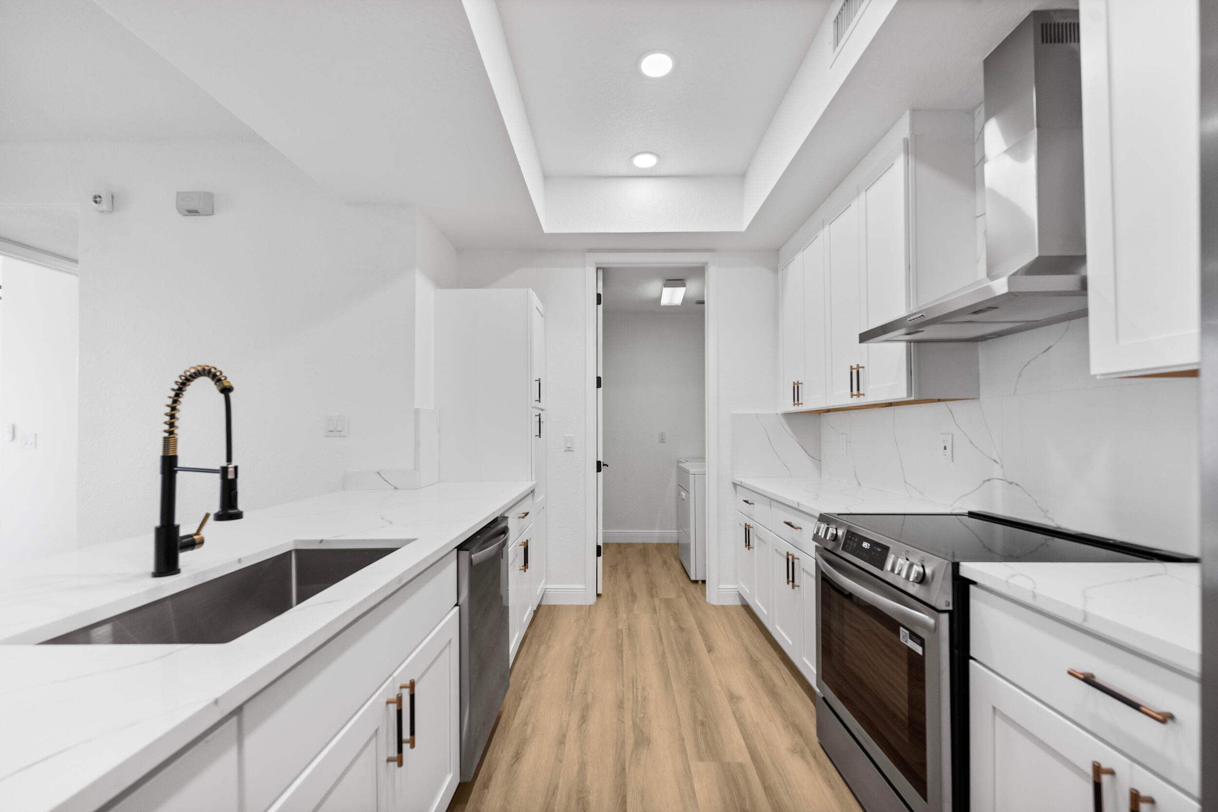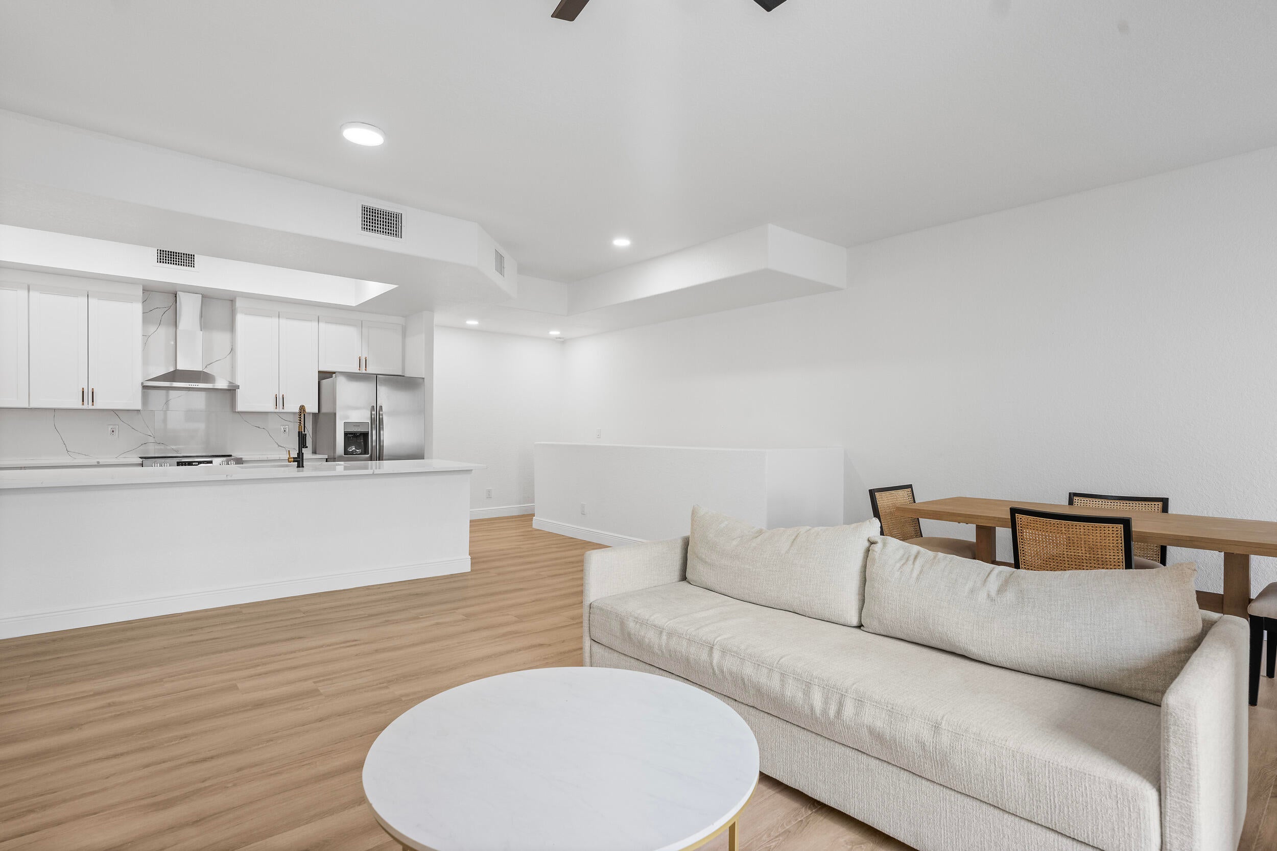 Welcome to one of very few FULLY REMODELED townhome units in the Promenade of Tradition Square! This spacious 2 bed / 2 bath townhome has been COMPLETELY renovated this year. New kitchen, flooring, doors, bathrooms, light fixtures, and more! Kitchen is equipped with 42in slow close cabinets, calacatta quartz countertops and back splash, 2025 Stainless steel appliances, hood vent range, and farmhouse stainless steel sink! Upgraded LED recessed lighting, remote operated fans, new doors and hardware, and luxury vinyl flooring. This immaculate unit is also equipped with full storm protection, 2018 AC, 2021 water heater, and 2017 metal roof. As if all that wasn't enough, this unit is located in the HEART of Tradition Square! Everything you need is within walking distance of your front door!