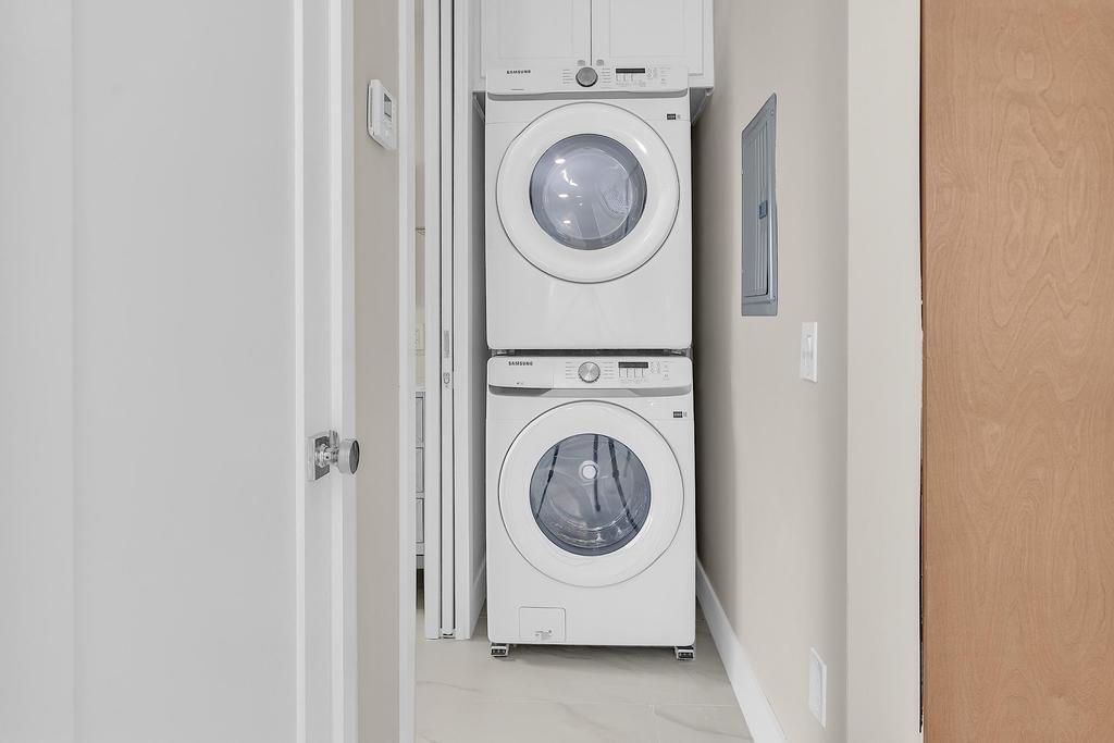 Modern elegant new construction in Lake Worth Beach. Two bedroom one bath luxury apartment available. The residence features an open layout, contemporary kitchen with quartz countertops, gas range, stainless steel appliances, modern bathroom with tile shower, ensuite washer/ dryer and private patio. Swimming pool surrounded with lush landscaping and off street parking. Blocks from downtown, just over the bridge to the beach and centrally located in Palm Beach County.