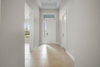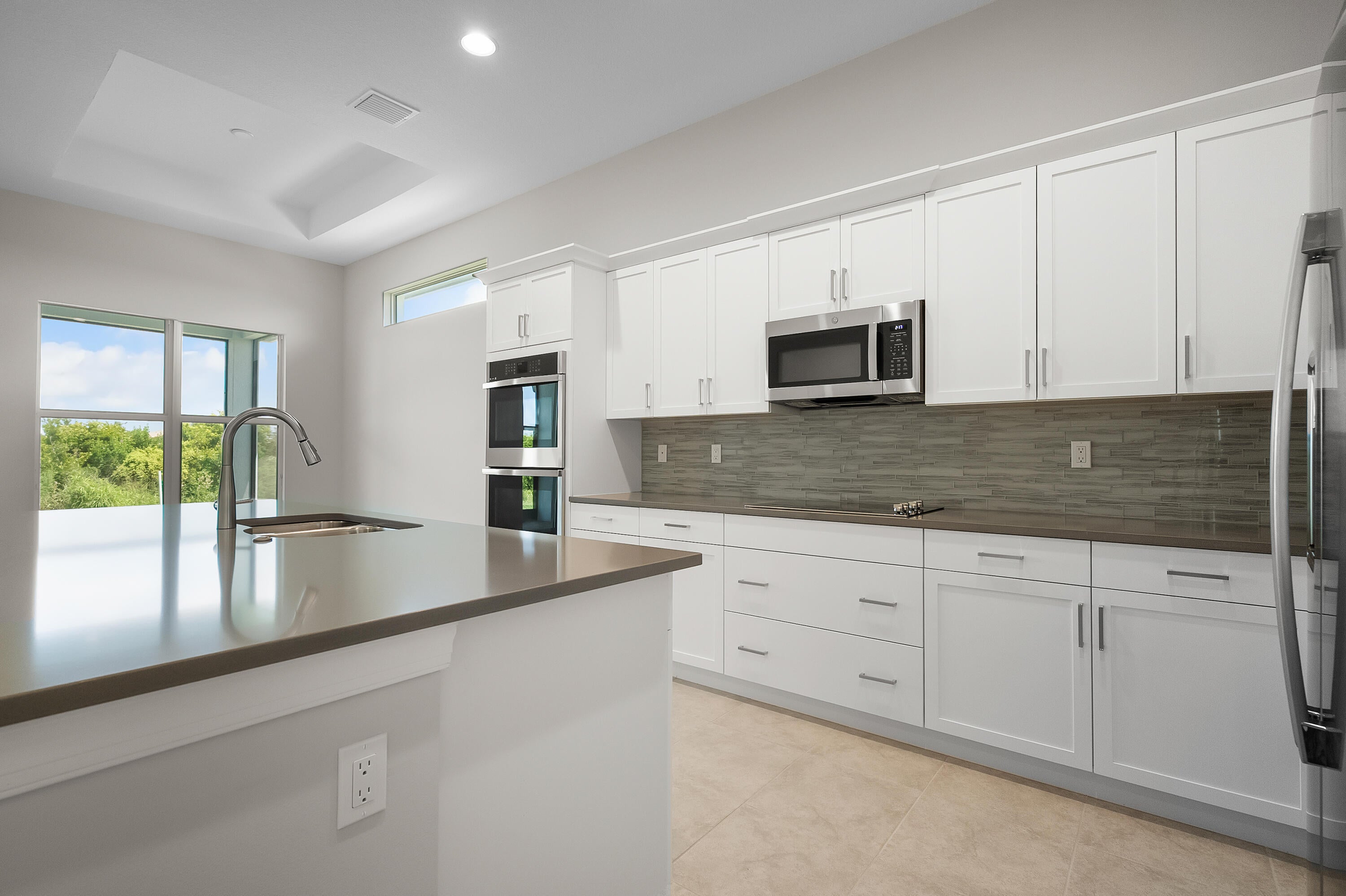 This welcoming 2 bedroom, 2 bath plus den home provides soothing colors indoors and out. The Island elevation with 4' garage extension is accented with blue and white tones. The interior is inviting with white and grey tones in the kitchen with upgraded tile backsplash, glass cooktop and double wall oven, plus 3 boxes above the kitchen island for future pendant lights. The laundry room is finished with upper and lower cabinets including a drop-in laundry tub. The office is accented with double single-lite glass French doors. Pocket door at master bath water closet. Tile flooring throughout the home plus a floor outlet and 4 hi hats in great room. The lanai is finished with an exterior wall mount TV package.