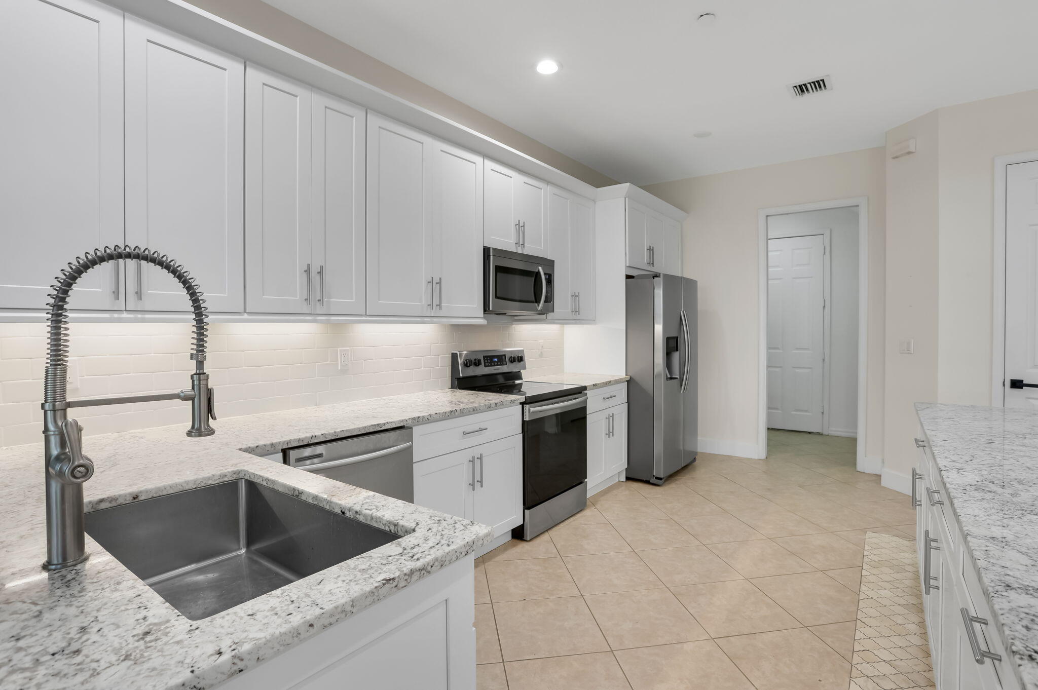 Beautiful move-in ready 3-bedroom, 2.5-bath townhome in the highly desirable Carriage Point community with modern features and an open floor plan. The gourmet kitchen offers granite countertops and an island for entertaining. High ceilings, new engineered hardwood flooring, and a new water heater add comfort and style. Low HOA payments and a prime location make this home stand out--just minutes to downtown Atlantic Avenue, the beach, highways, shops, and restaurants. Enjoy nearby Caloosa Park with tennis courts, pickleball, turf fields, and walking trails. Call today to make this house your home!
