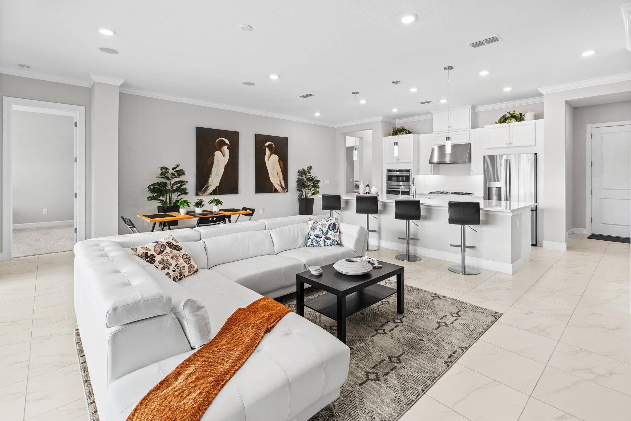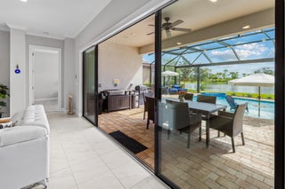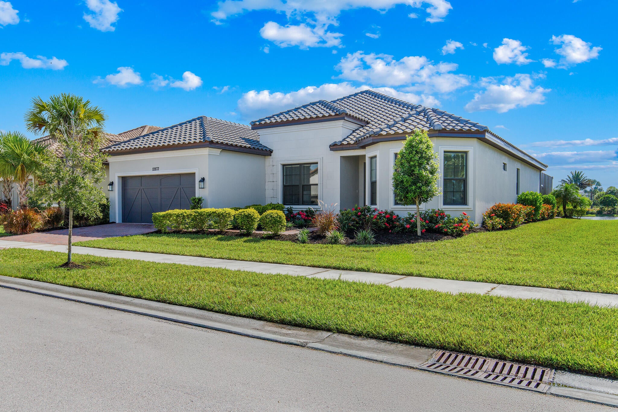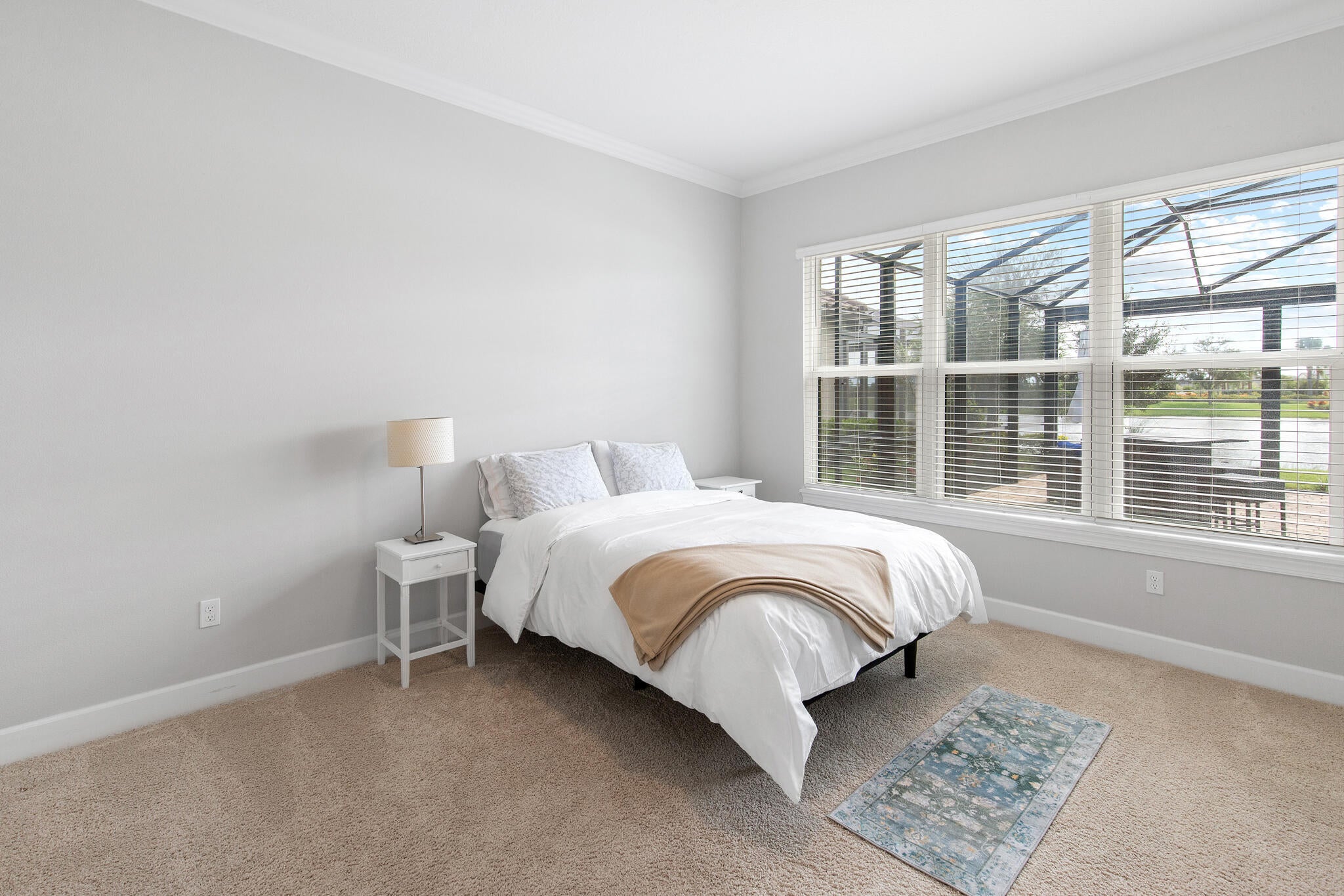 Welcome to this stunning AMBRA model in the desirable 55+ community of Esplanade at Tradition. This 3 bedroom, 3 full bath home features 2 primary suites plus a den with elegant glass French doors. The open, light-filled floor plan offers tile floors in main areas, crown molding and expansive pocketing sliding doors that open to a screened patio with pool, panoramic lake view, and a full-view screen enclosure. The gourmet kitchen boasts quartz countertops, upgraded cabinetry, a large island, stainless steel appliances, and spacious walk-in pantry Both primary suites include walk-in closets and spa like baths with quartz counters. With over $100,000+ in builder upgrades, landscaping, and so much more, this home is an incredible opportunity