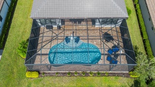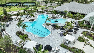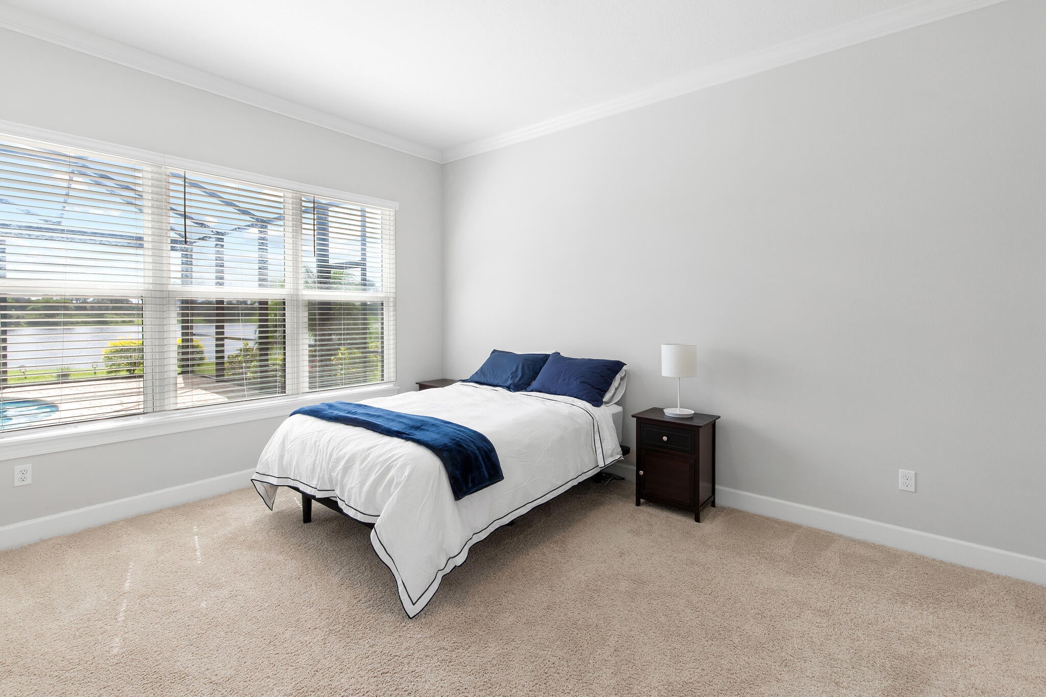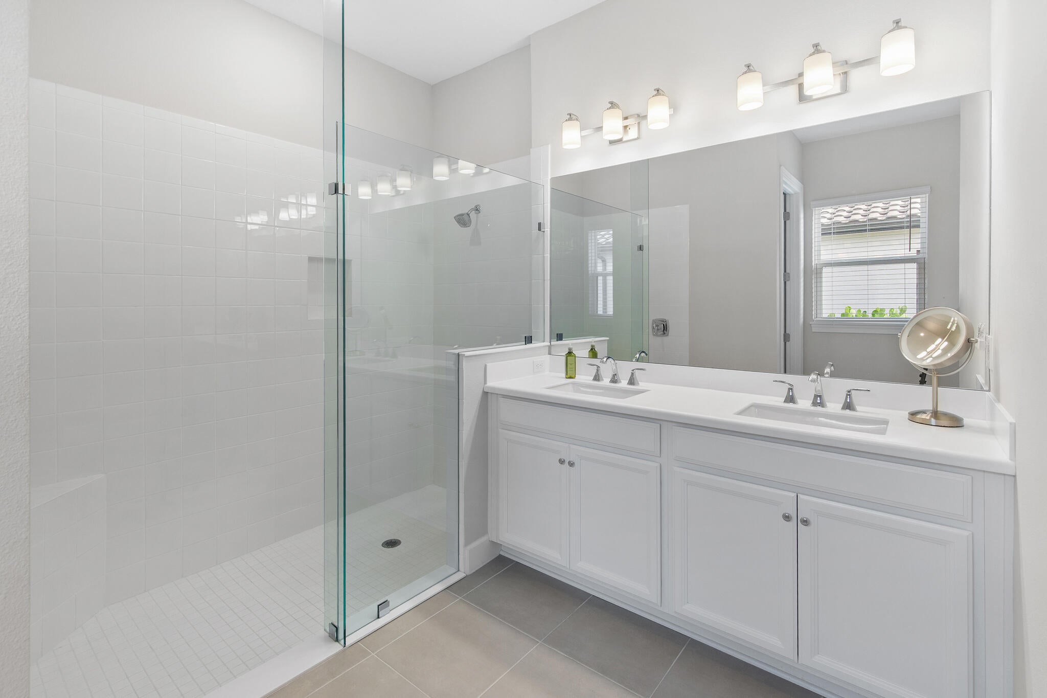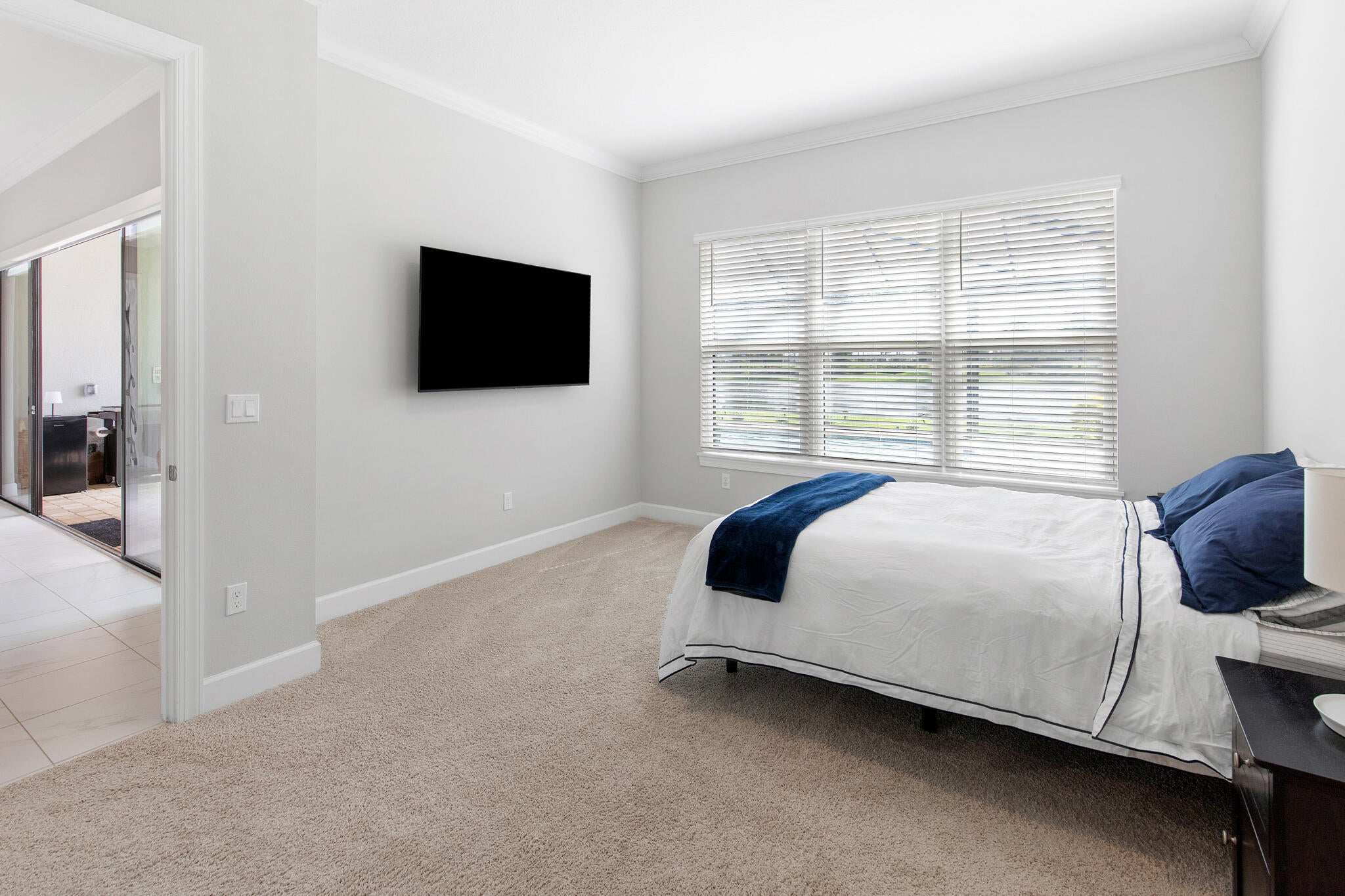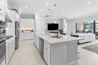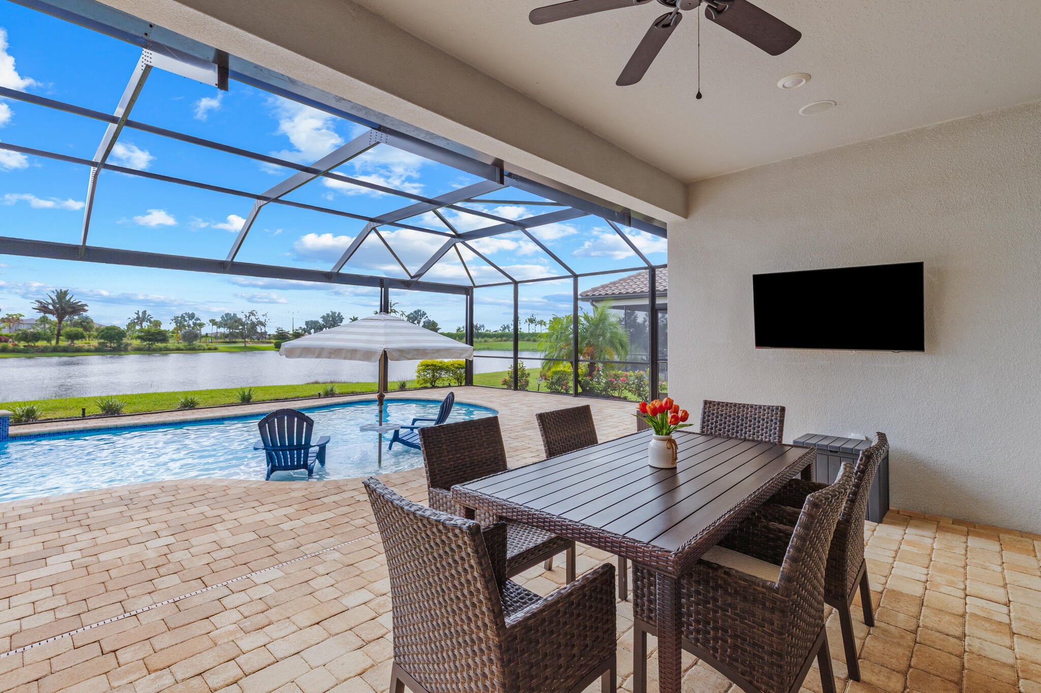 Welcome to this stunning AMBRA model in the desirable 55+ community of Esplanade at Tradition. This 3 bedroom, 3 full bath home features 2 primary suites plus a den with elegant glass French doors. The open, light-filled floor plan offers tile floors in main areas, crown molding and expansive pocketing sliding doors that open to a screened patio with pool, panoramic lake view, and a full-view screen enclosure. The gourmet kitchen boasts quartz countertops, upgraded cabinetry, a large island, stainless steel appliances, and spacious walk-in pantry Both primary suites include walk-in closets and spa like baths with quartz counters. With over $100,000+ in builder upgrades, landscaping, and so much more, this home is an incredible opportunity